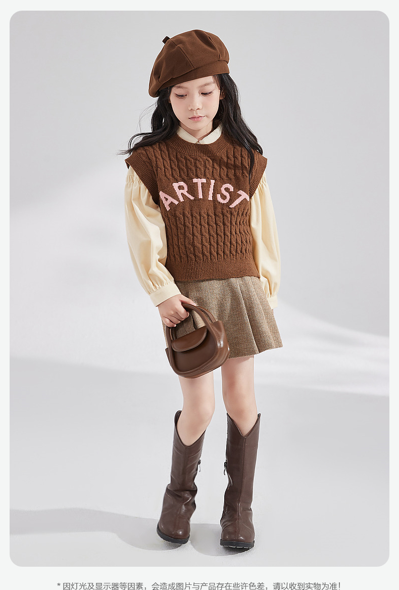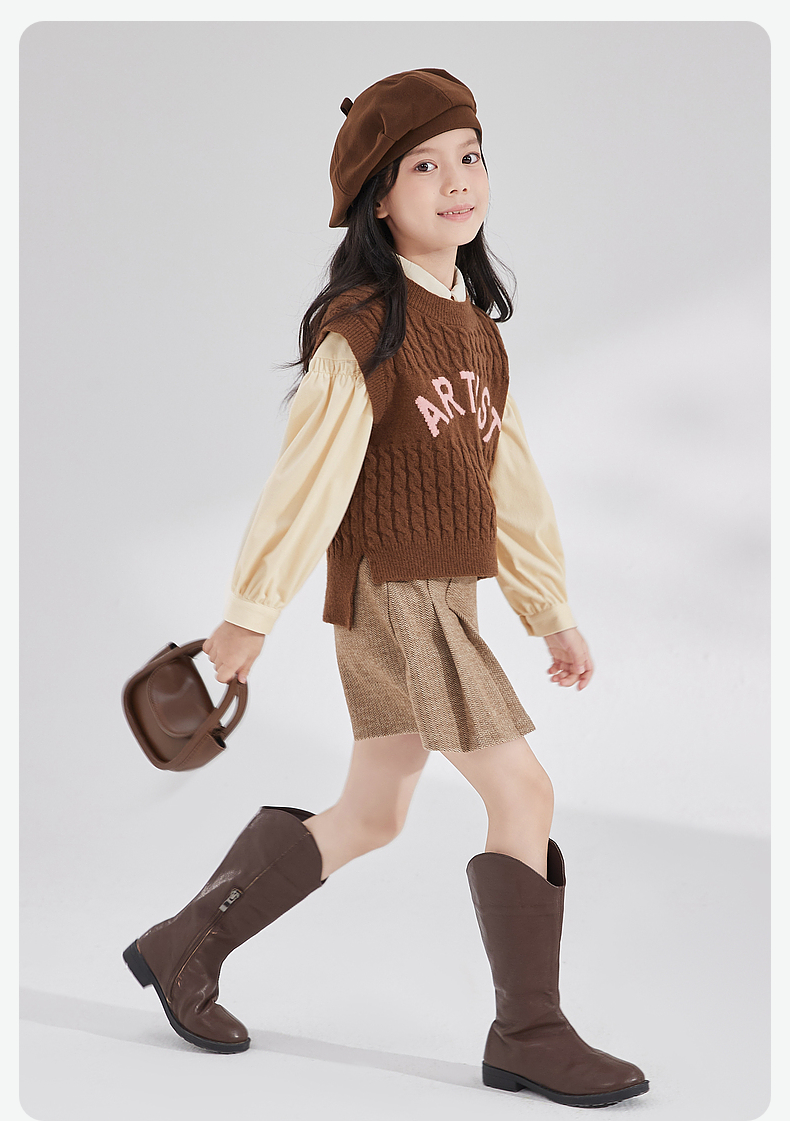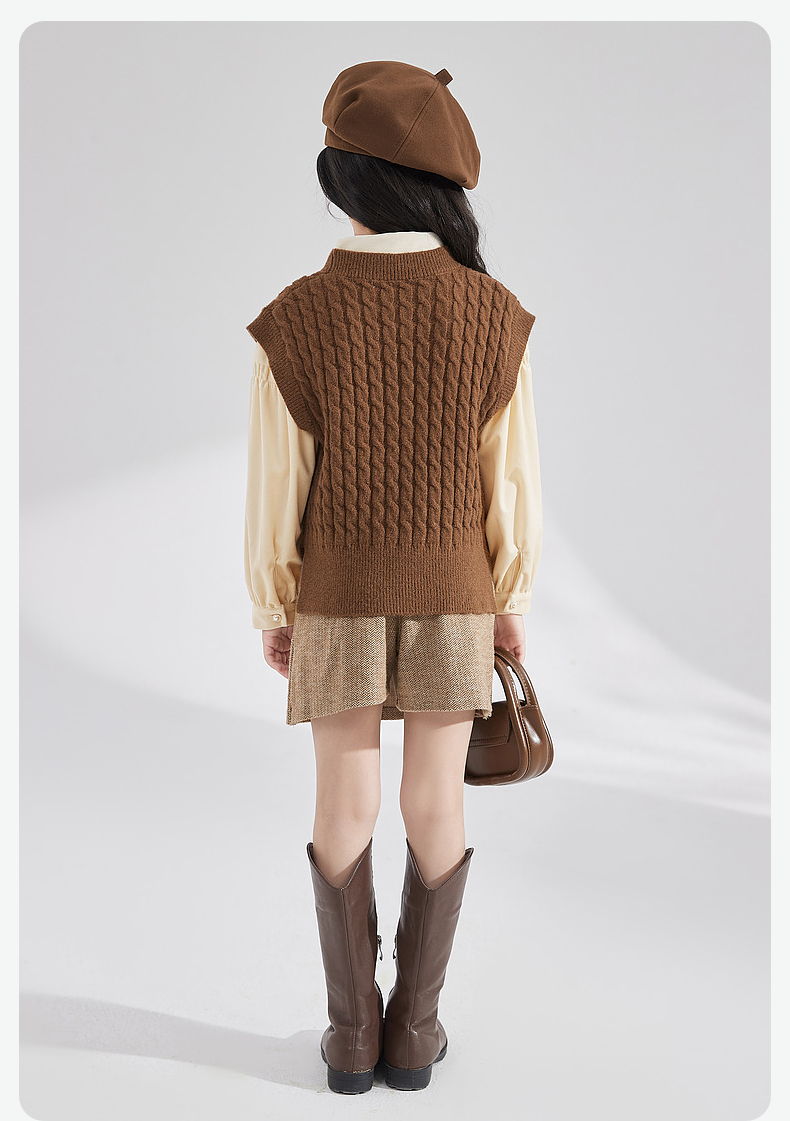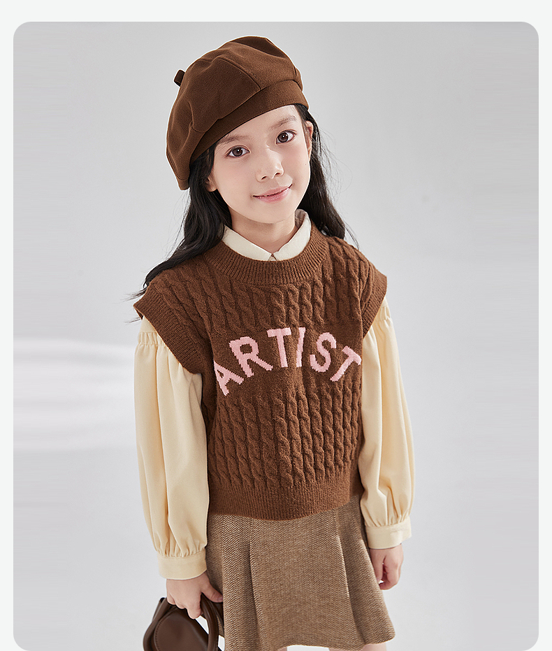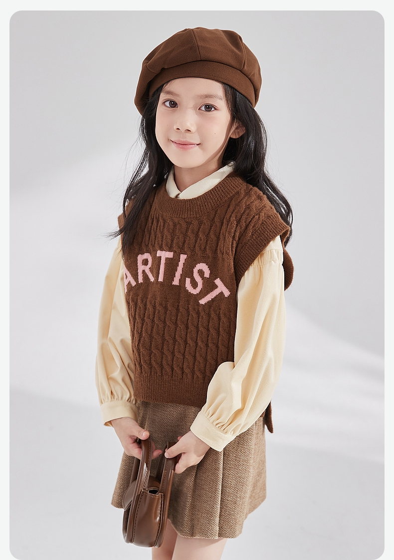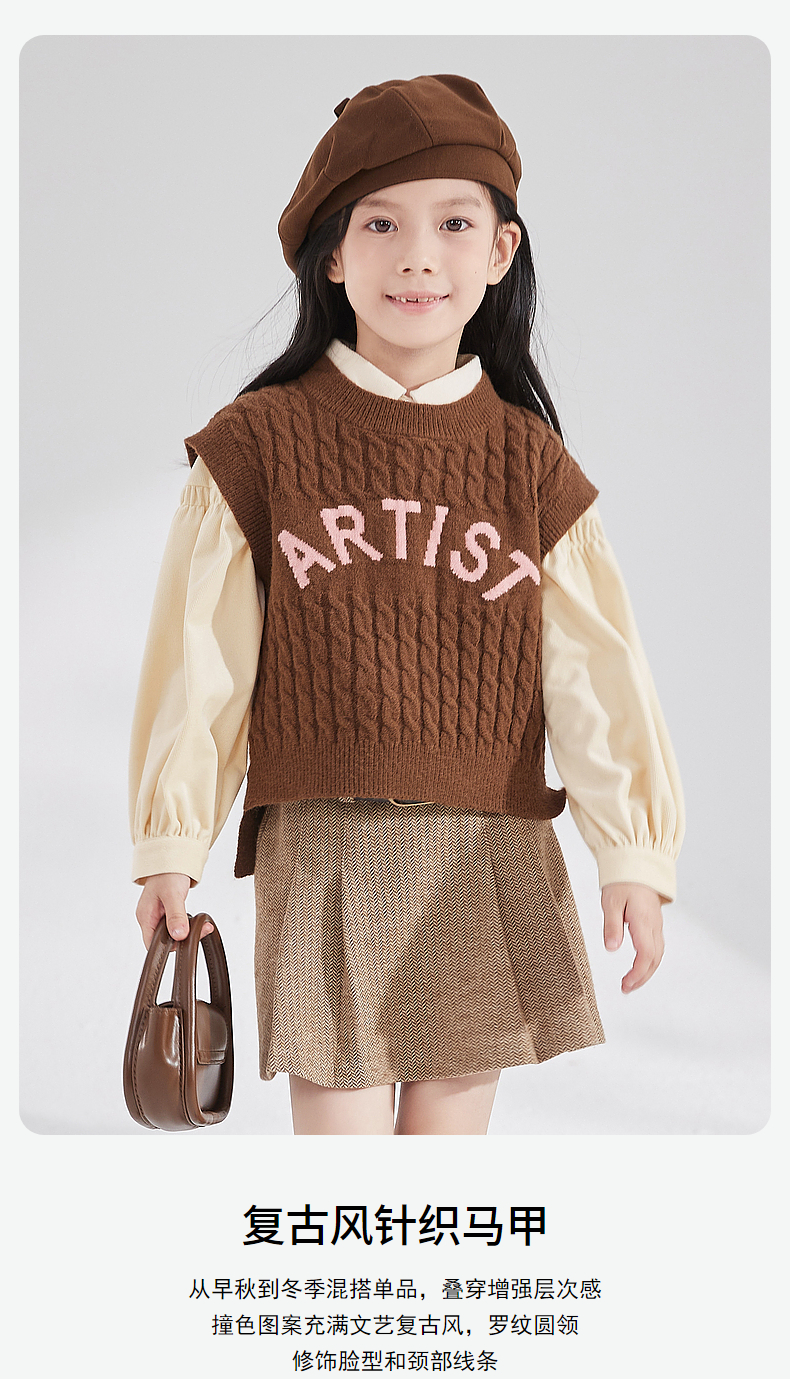 笛莎Deesha 女童2024秋季新款复古风针织马甲