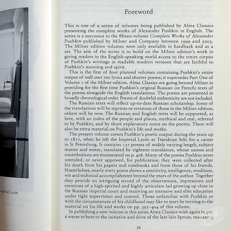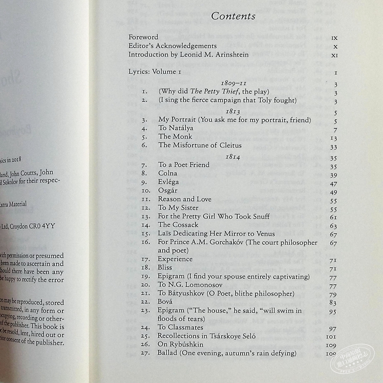 The founding father of modern Russian literature, Alexander Pushkin has exerted – through his novel in verse Eugene Onegin, his plays, his short stories and his narrative poetry – a long-lasting influence well beyond the borders of his motherland. A slightly lesser-known, but by no mean less important aspect of his writing is his vast production of shorter verse, a genre at which he excelled and arguably still remains unsurpassed.