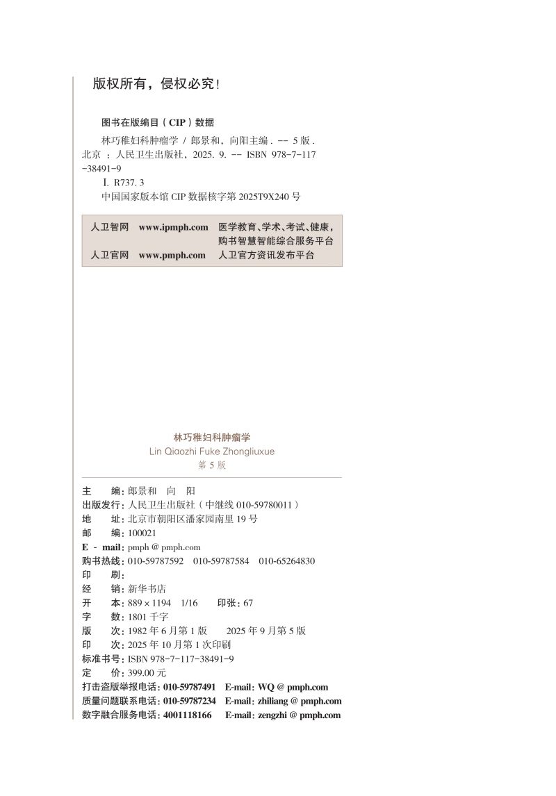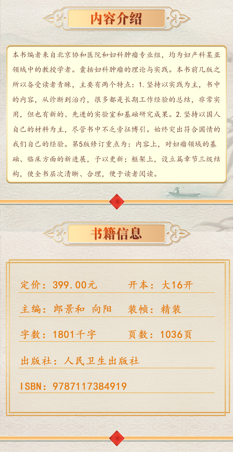 林巧稚妇科肿瘤学 第5五版 附视频 郎景和 向阳 妇科肿瘤与女性生殖内分泌等 参考书 西医 妇产科学 9787117384919 人民卫生出版社