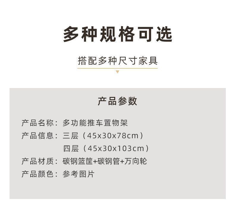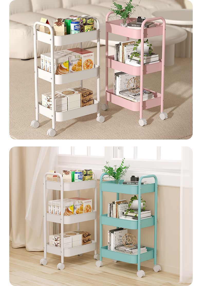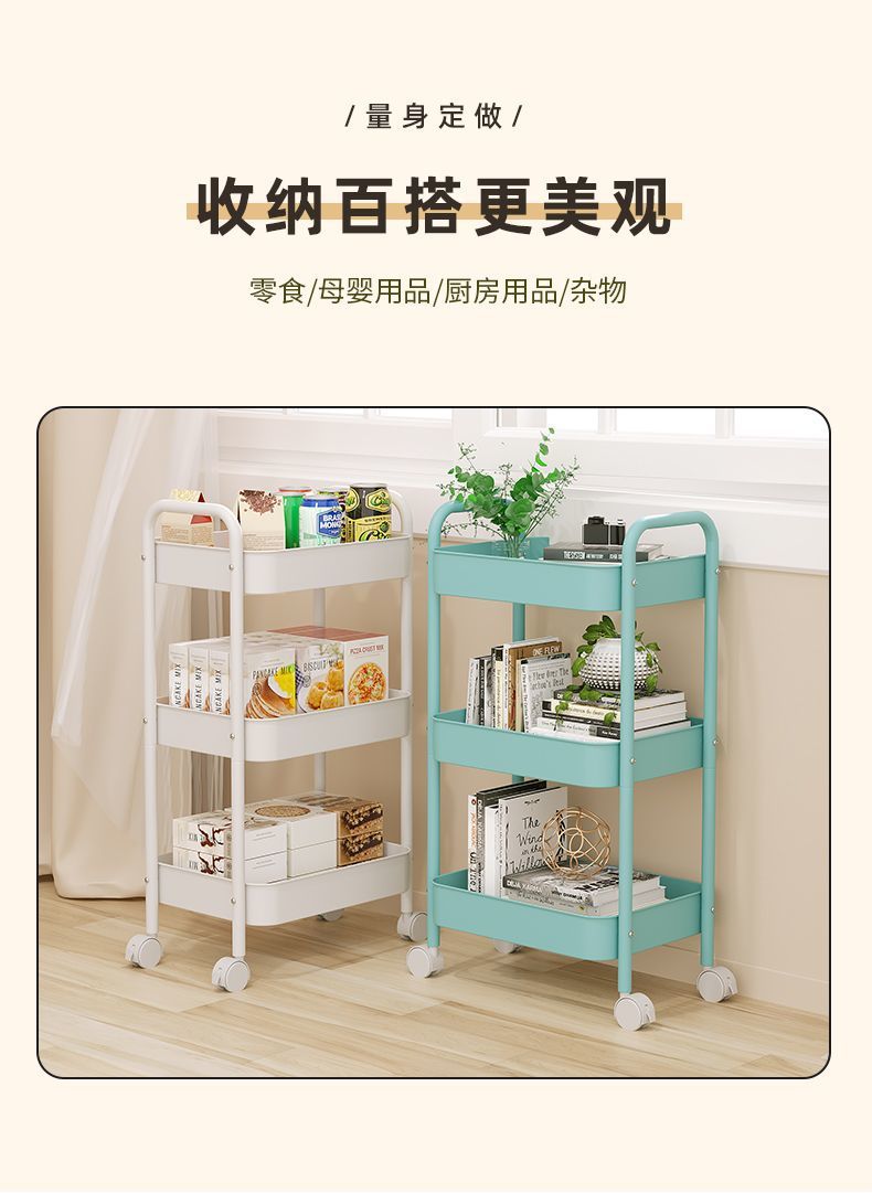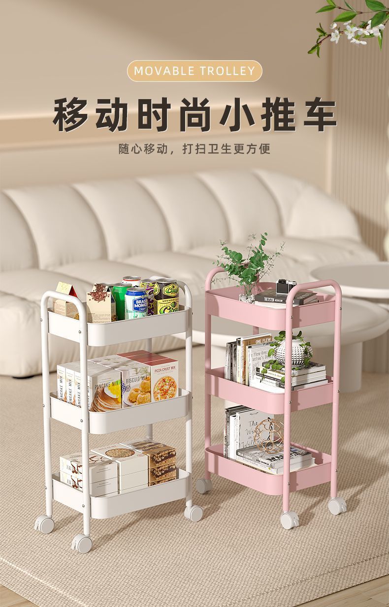 【移动时尚小推车!多用途收纳】卧室装饰零食多功能储物,卫生间移动小推车置物架多层落地,收纳百搭更美观 多种规格可选 随心移动 打扫卫生更方便