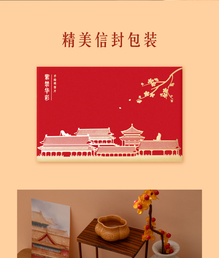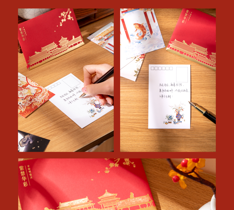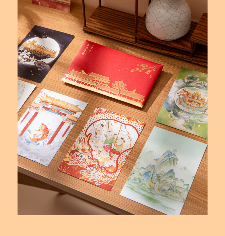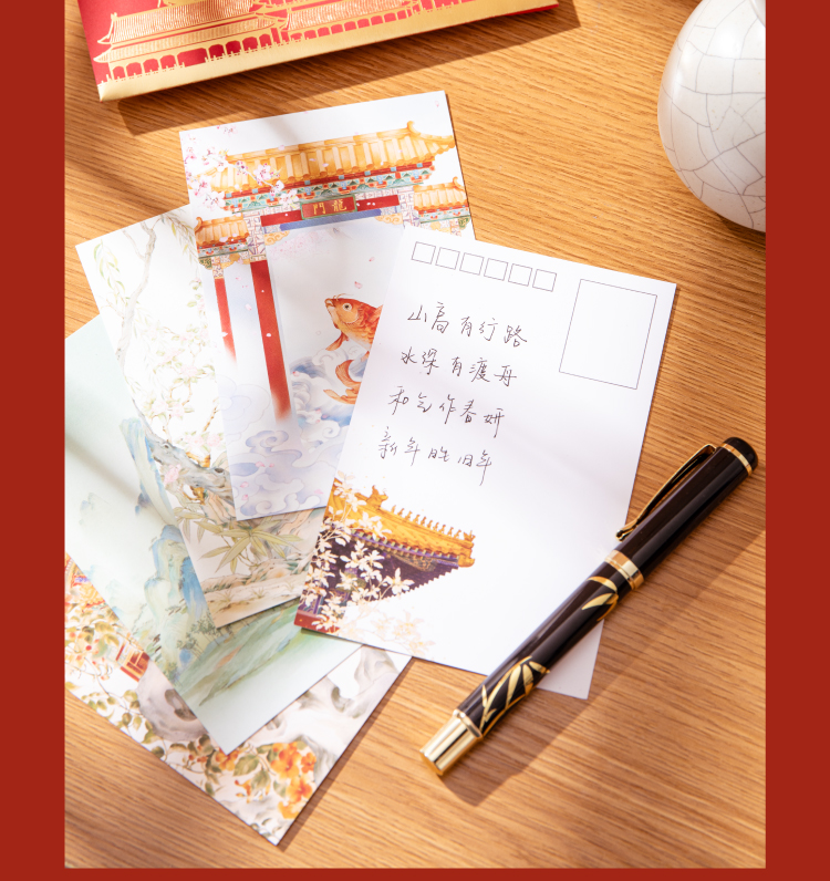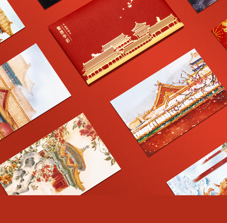 【故宫文具】紫禁华彩故宫明信片手绘新年高级感卡片贺卡文创礼物