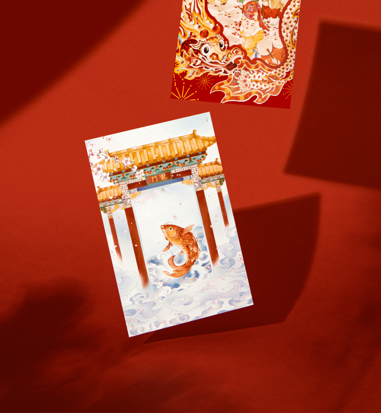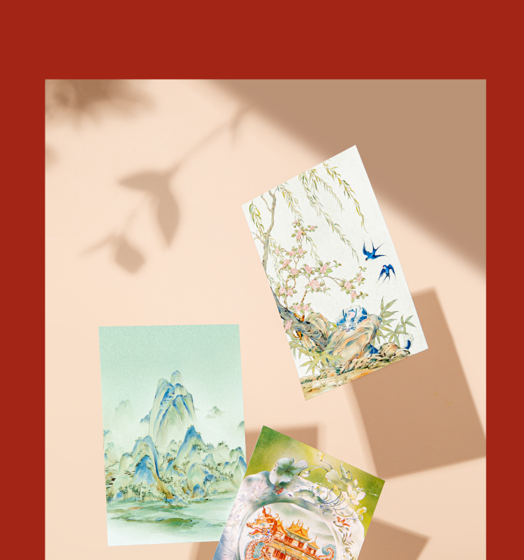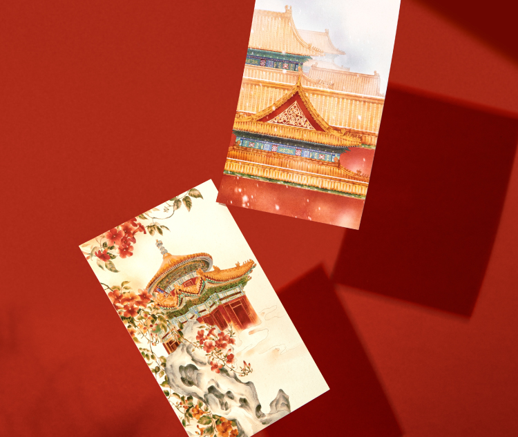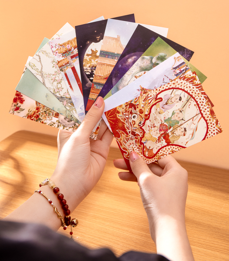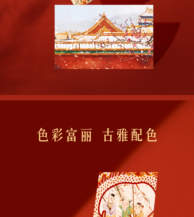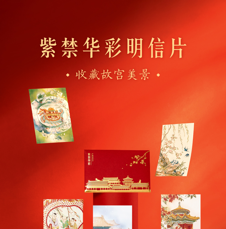 【故宫文具】紫禁华彩故宫明信片手绘新年高级感卡片贺卡文创礼物
