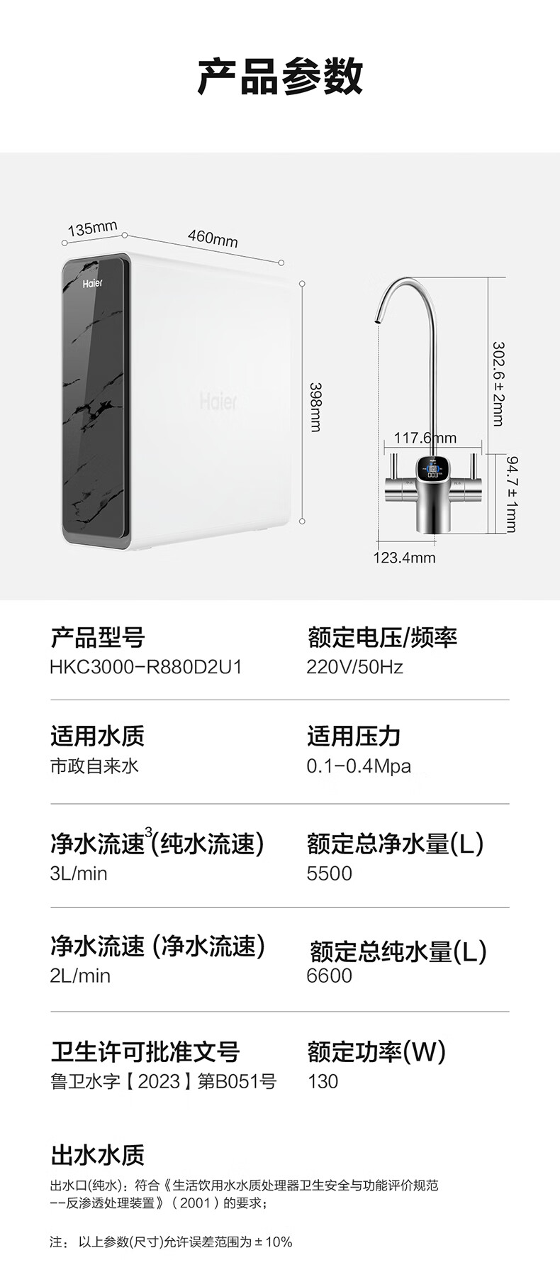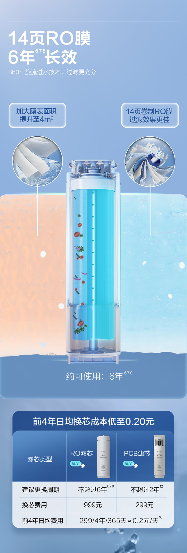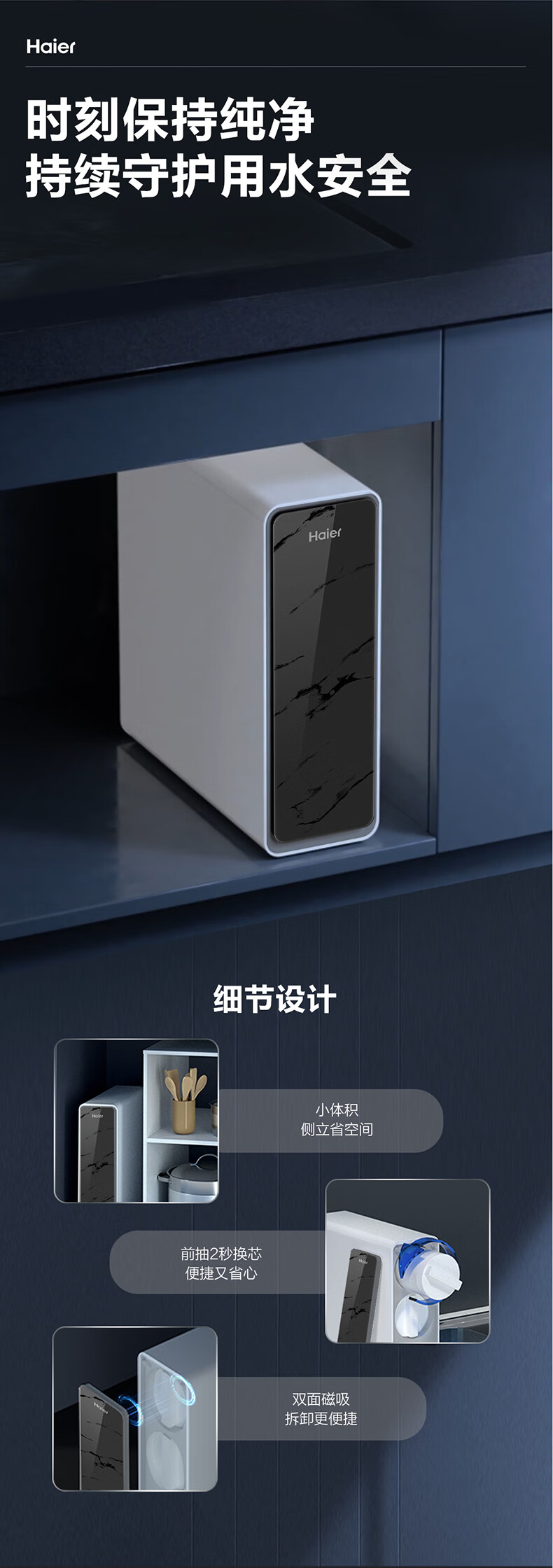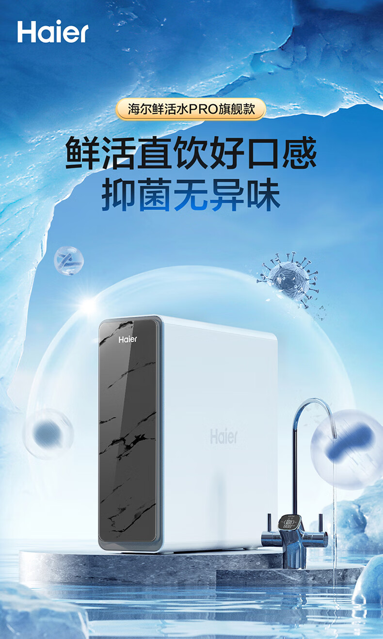 海尔(Haier)净水器1200G鲜活水双出水 pro家用净水机反渗透大通量厨下直饮过滤器HKC3000-R880D2U1