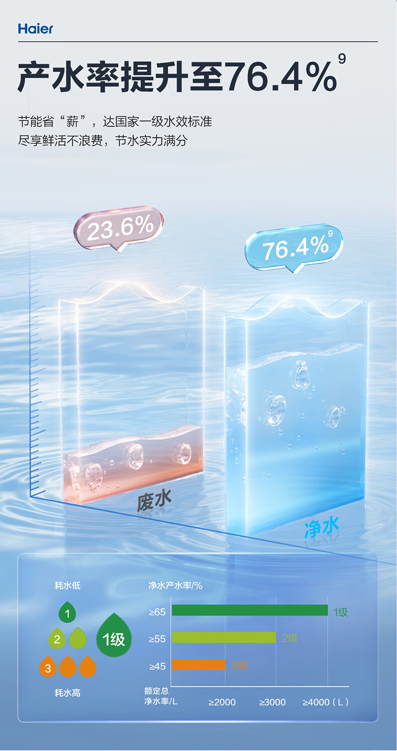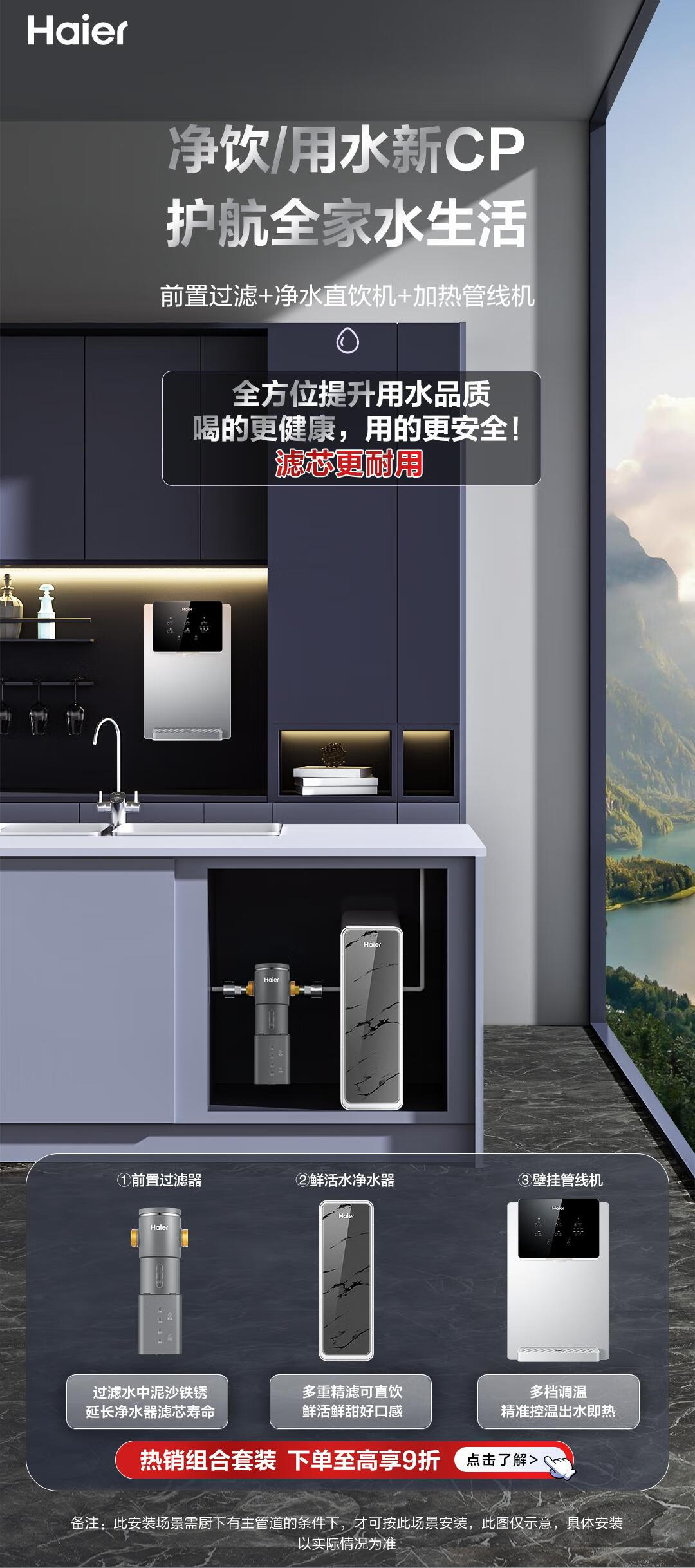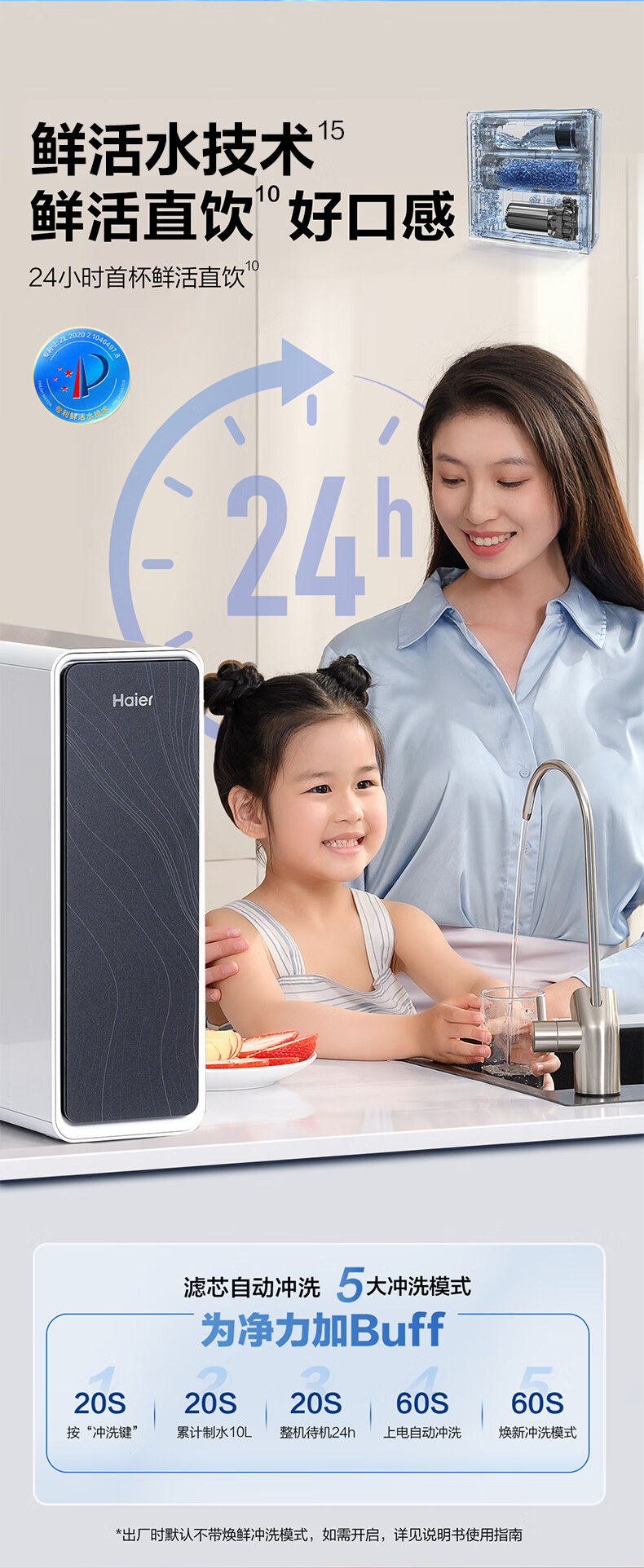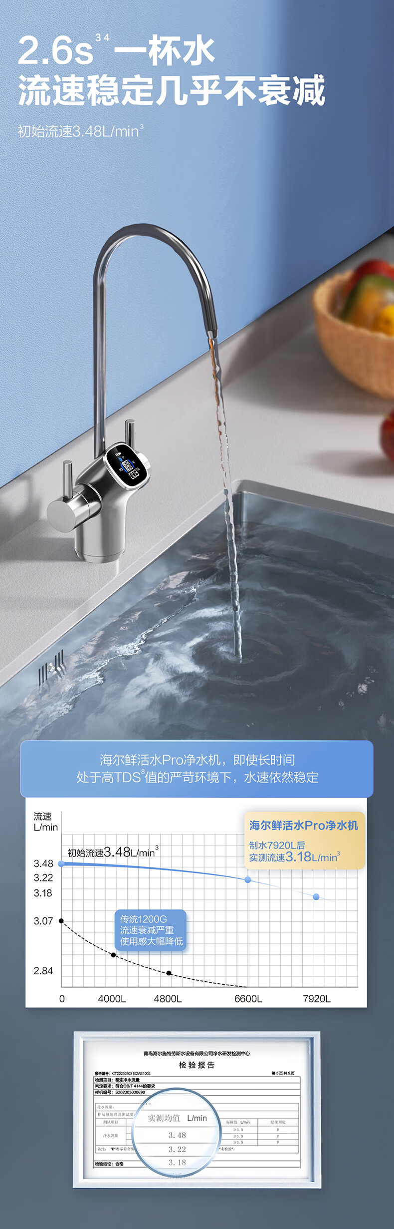海尔(Haier)净水器1200G鲜活水双出水 pro家用净水机反渗透大通量厨下直饮过滤器HKC3000-R880D2U1