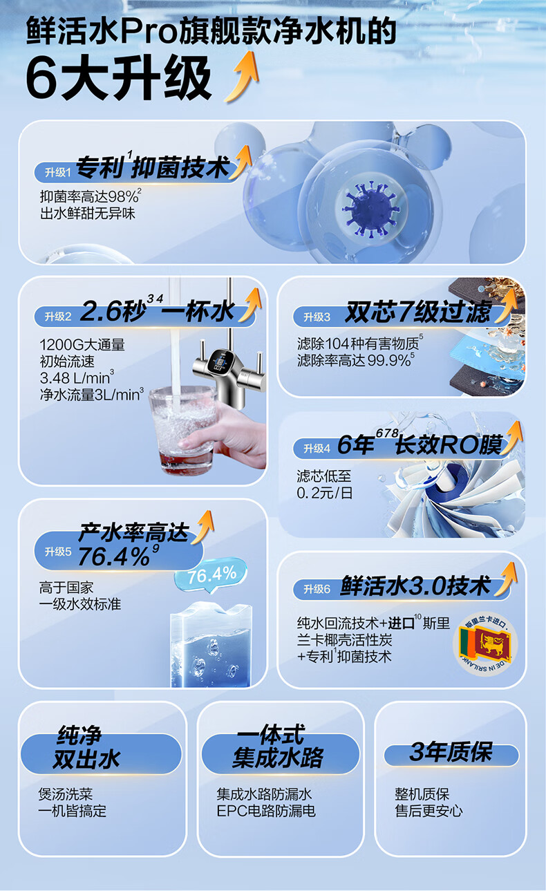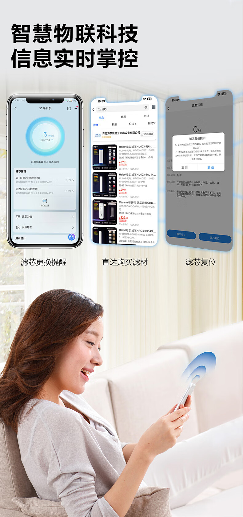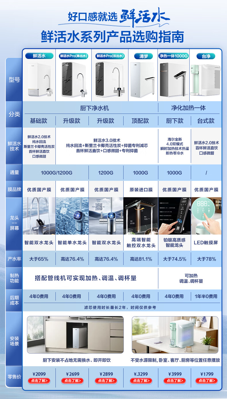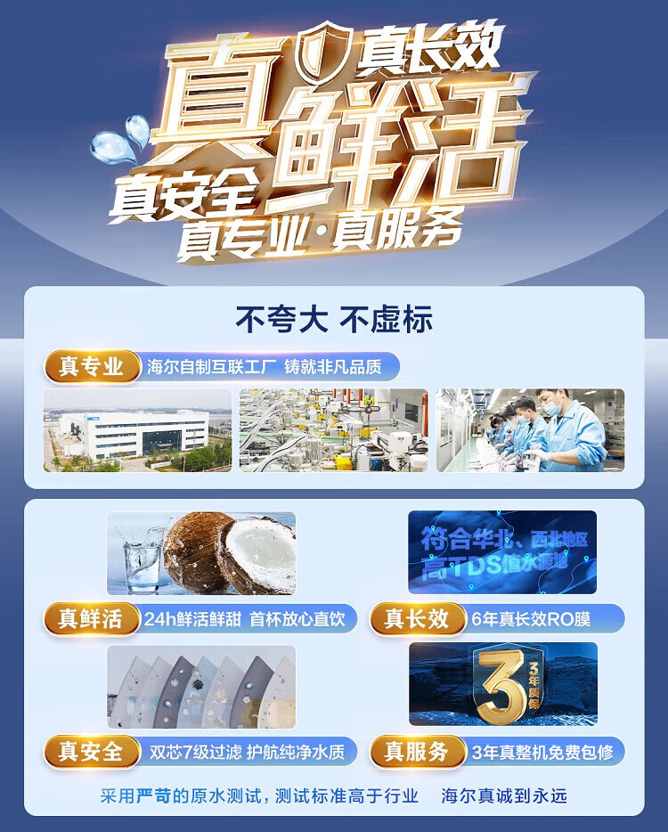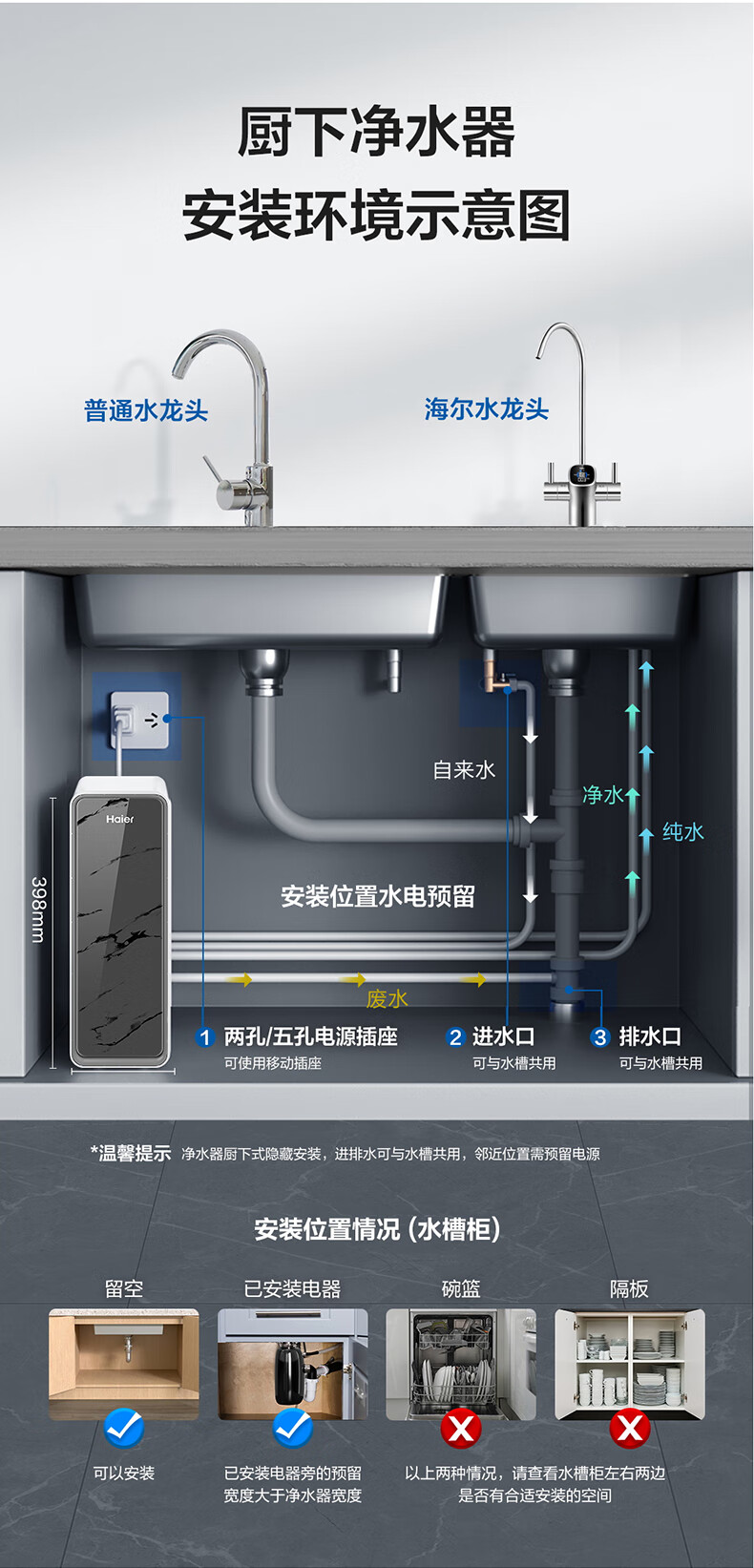 海尔(Haier)净水器1200G鲜活水双出水 pro家用净水机反渗透大通量厨下直饮过滤器HKC3000-R880D2U1