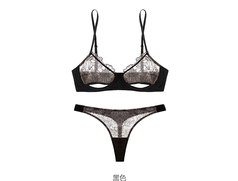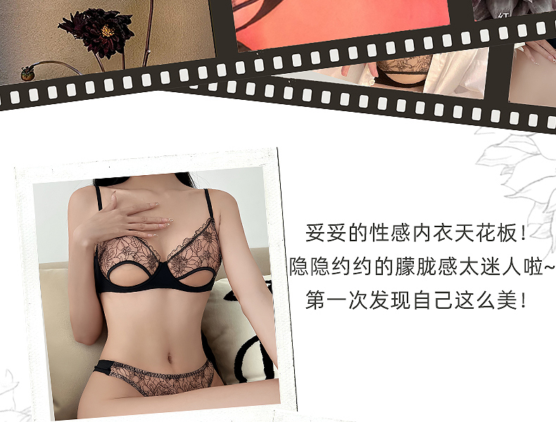 好奇蜜斯性感内衣女蕾丝性惑胸罩性惑情调透明全透文胸套装情趣洛恩