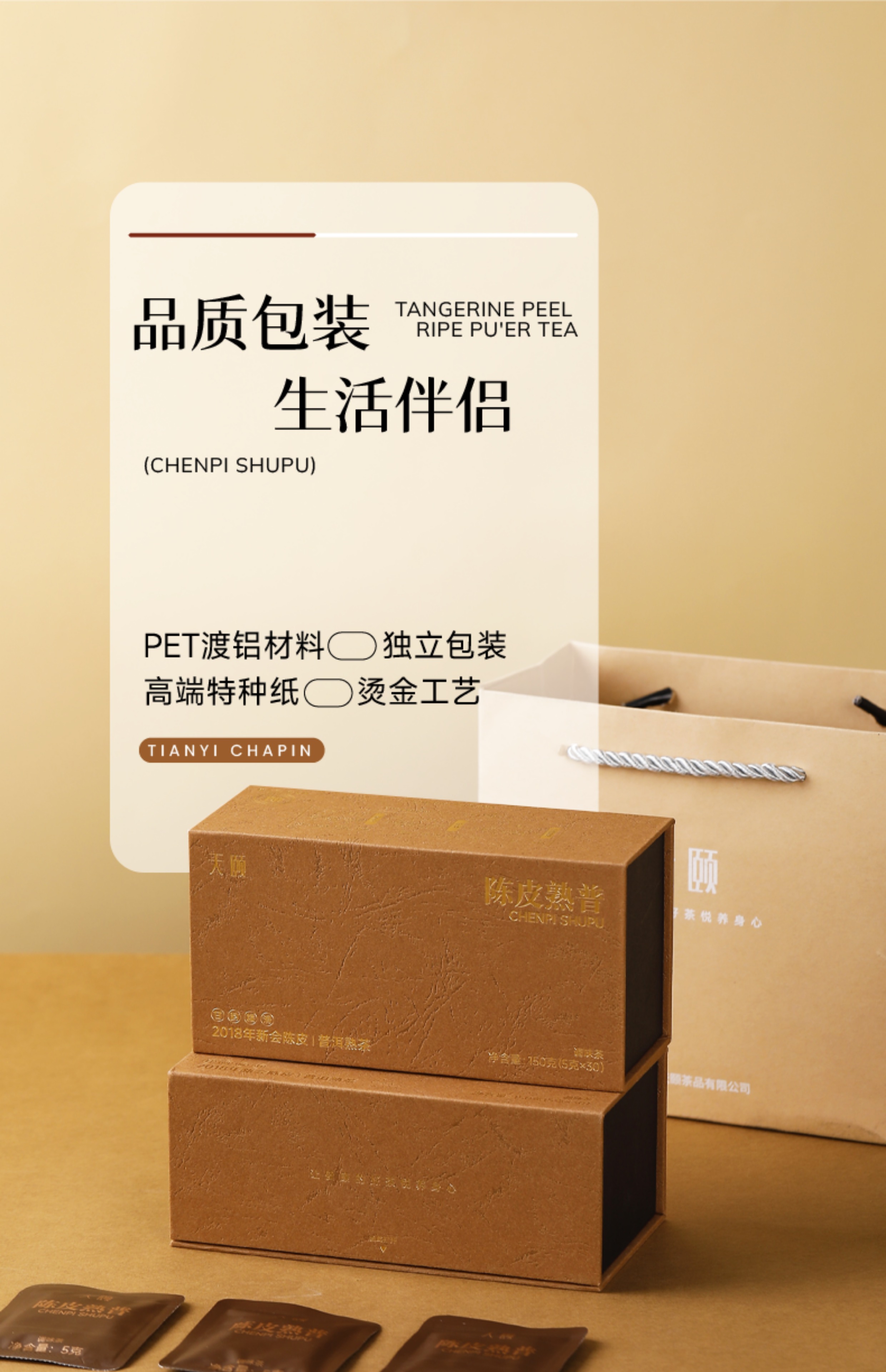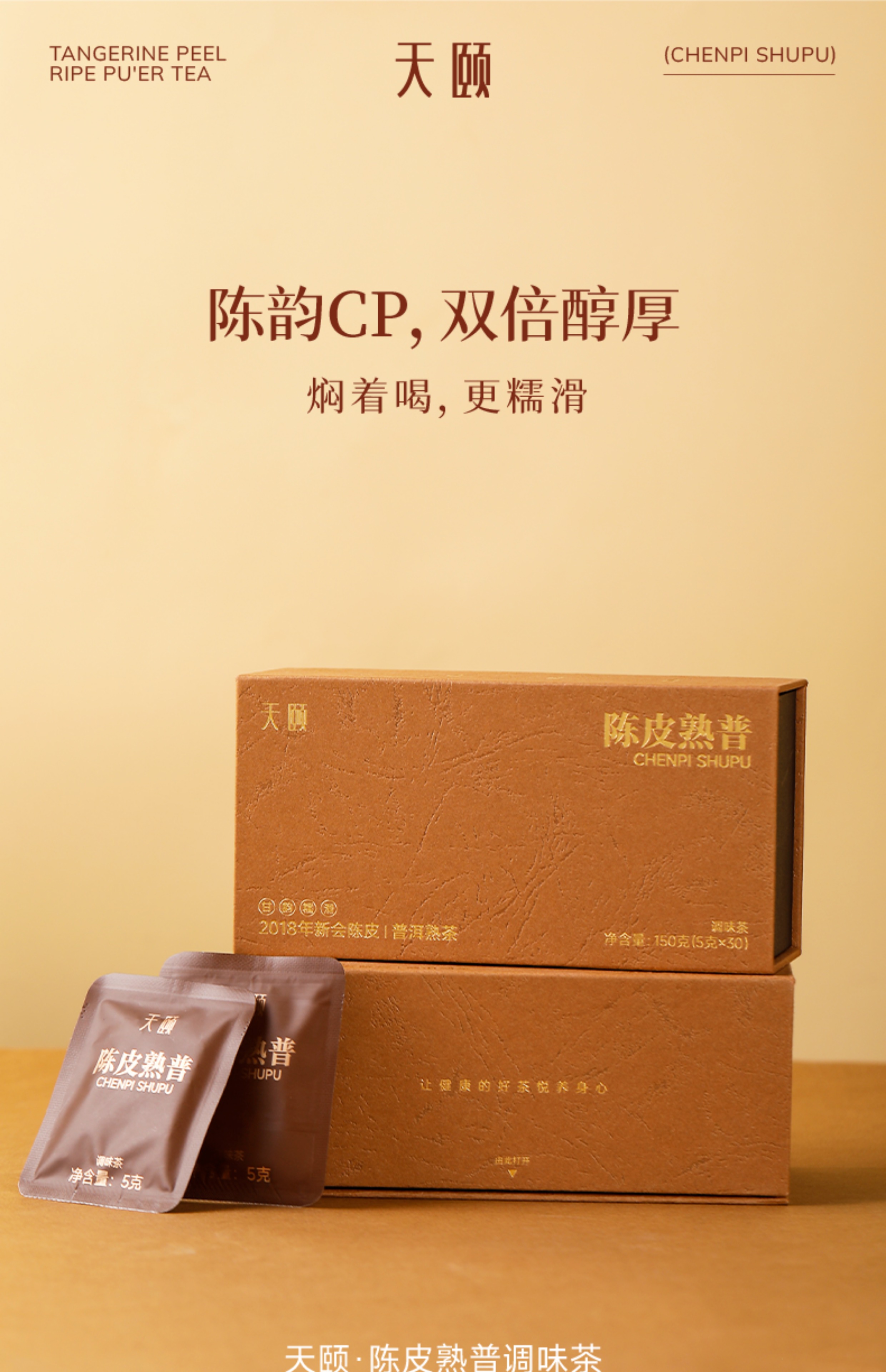 【官方正品】云南白药天颐陈皮普洱熟茶2018年新会陈皮普洱茶小包装小方片30袋