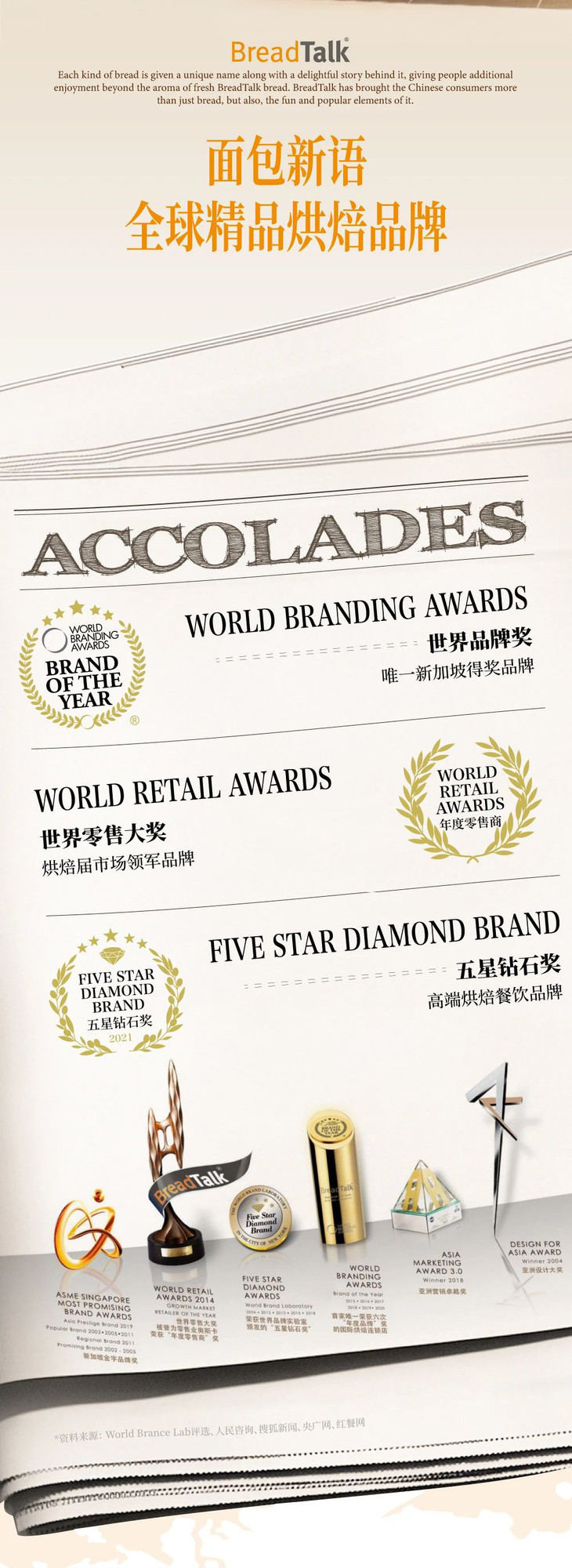 在BreadTalk面包新语,我们相信,最好的糕点 始于对食材的敬畏和对时间的尊重 民以食为天,食以安为先是我们永远不变的宗旨 从心出发,希望我们的点心是有生命的 有故事的 可以对话的 ——这也是我们把它命名为 BreadTalk 的原因