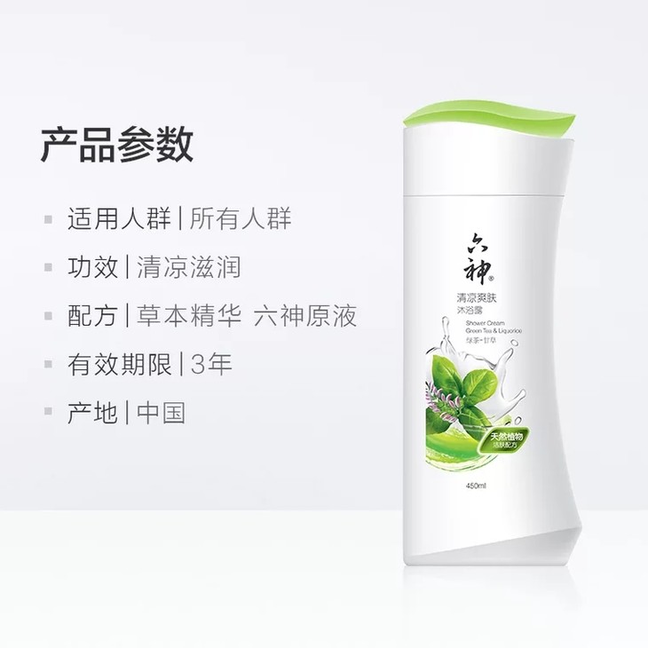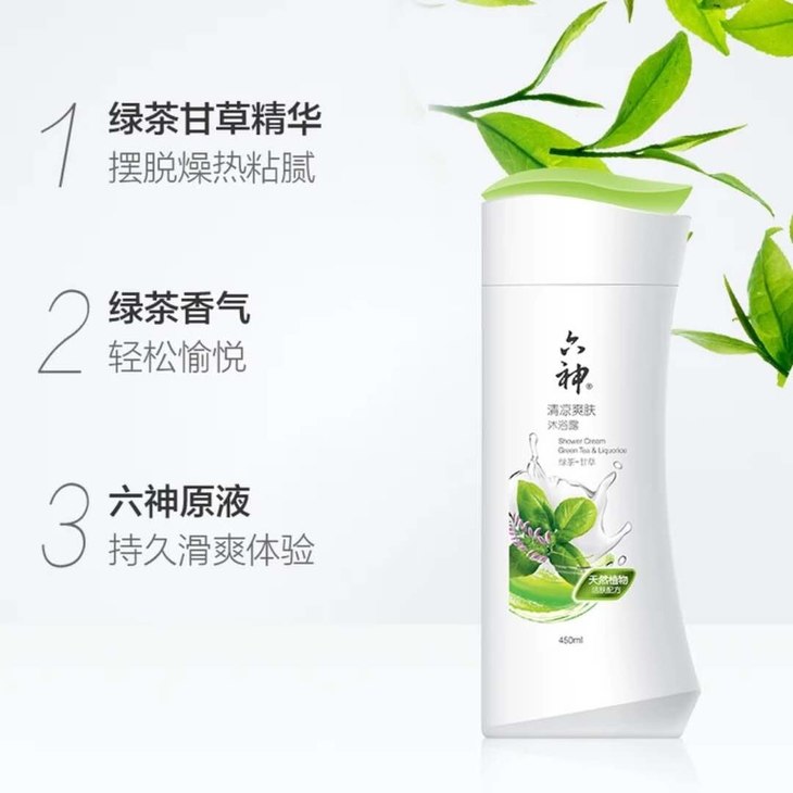 六神清凉爽肤沐浴露(绿茶+甘草)450ml