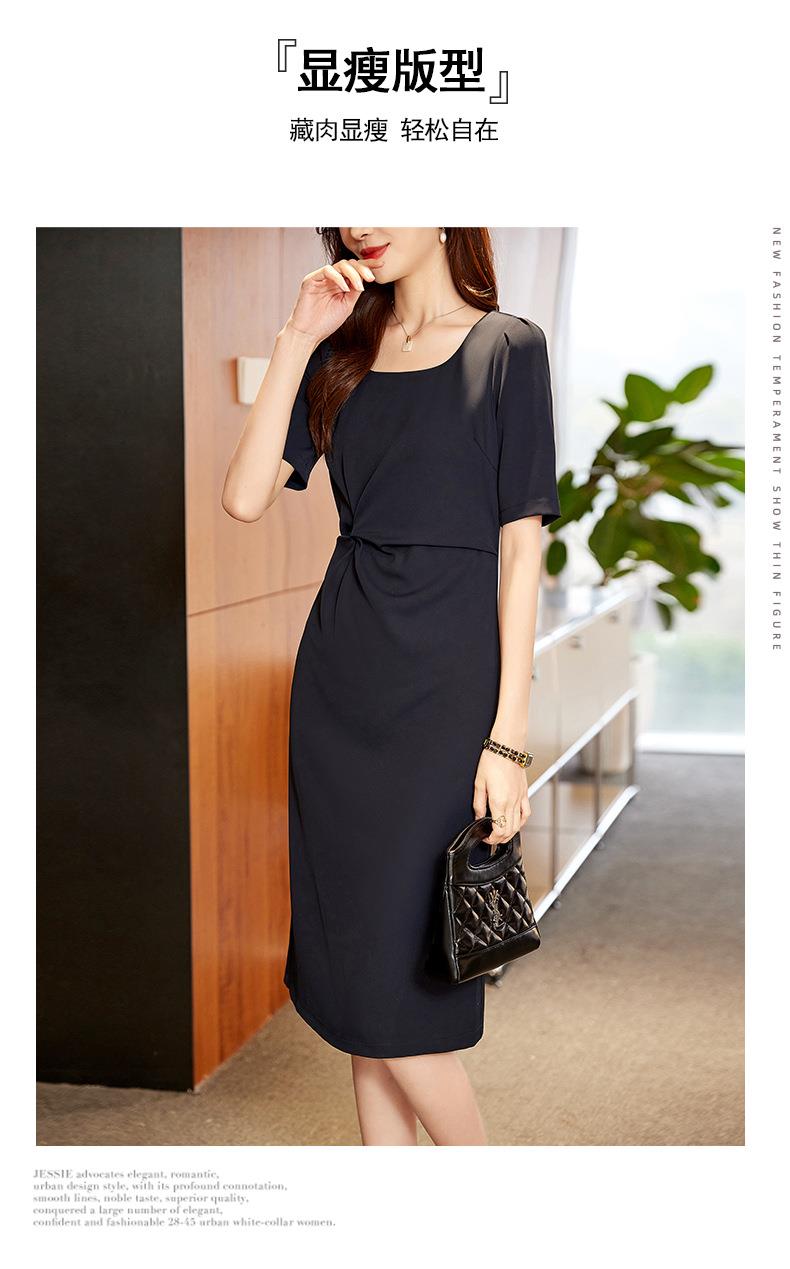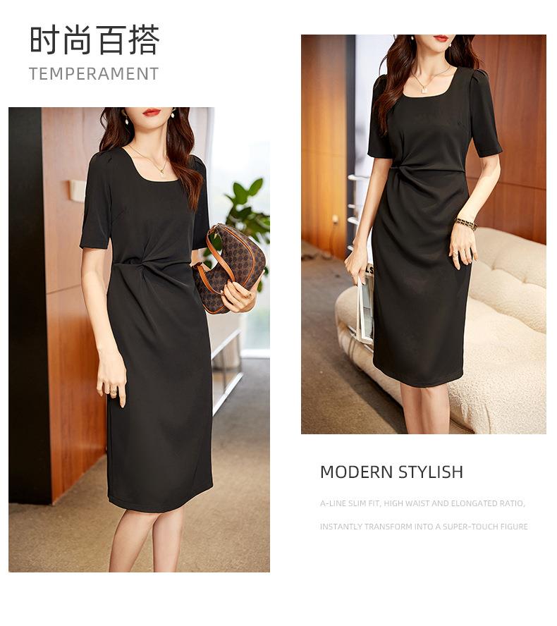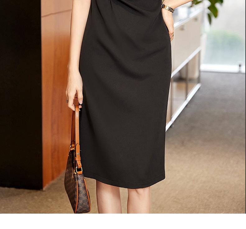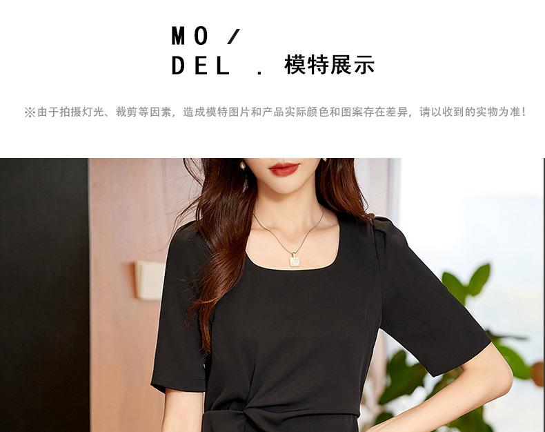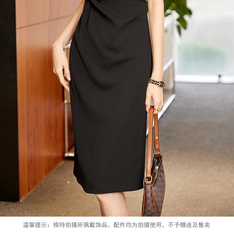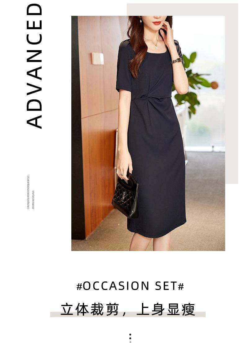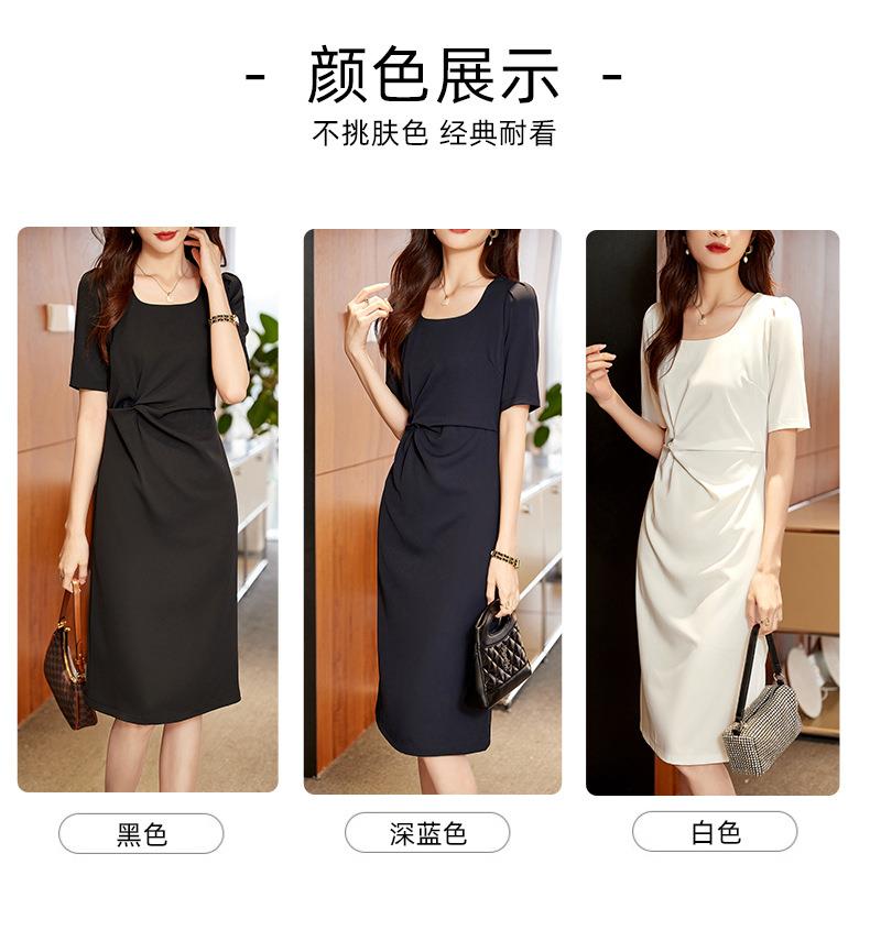 娜璐多 夏季新款短袖连衣裙女时尚气质女神范中长款裙子褶皱设计感轻熟风