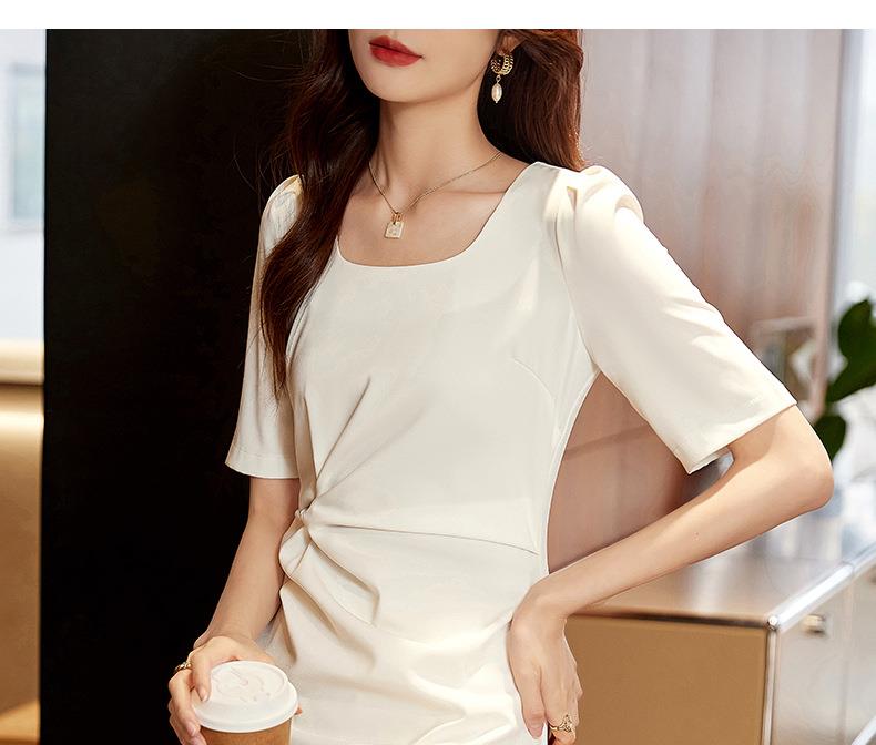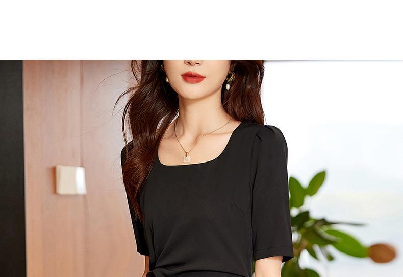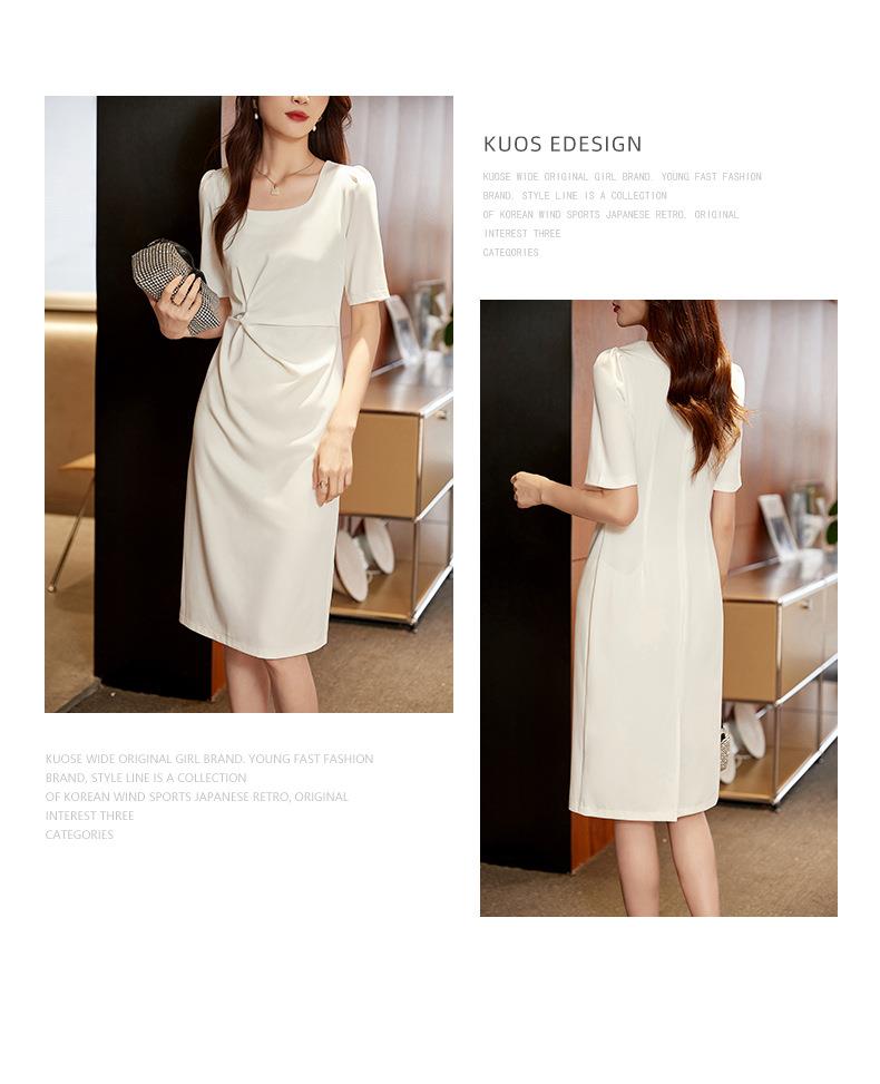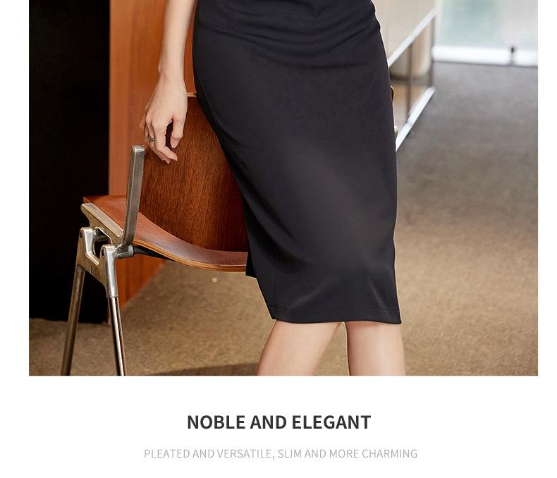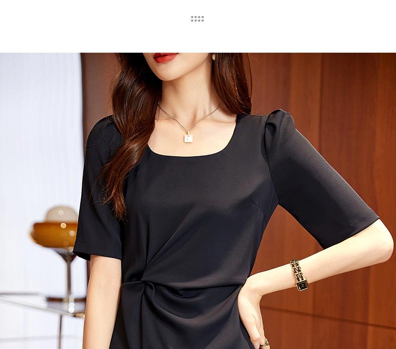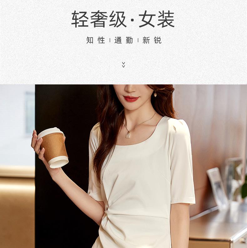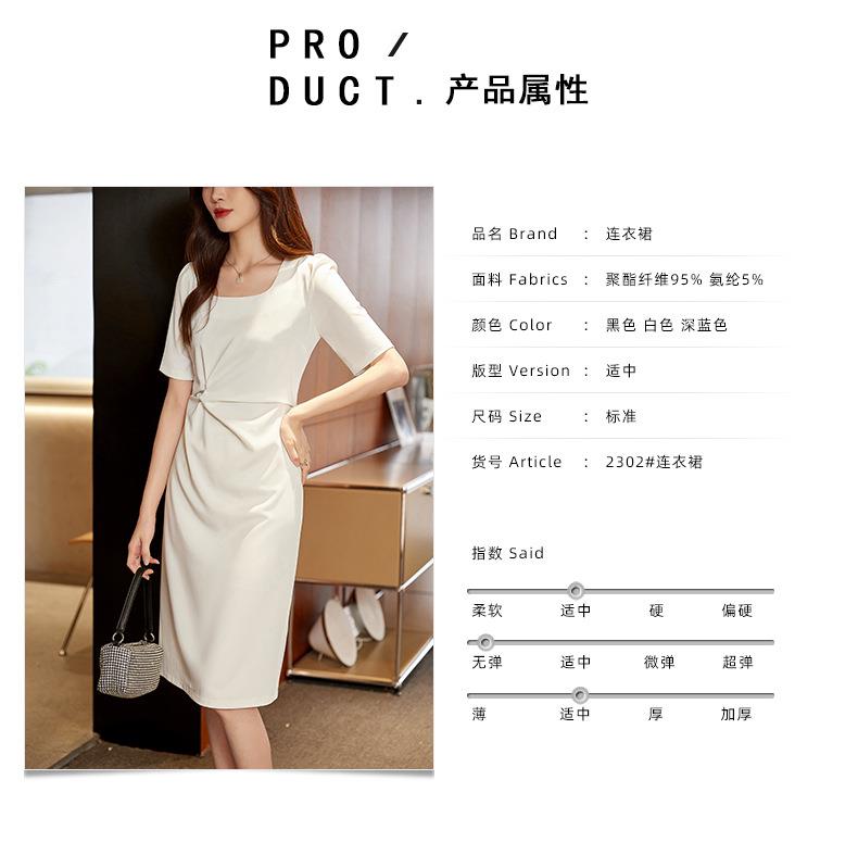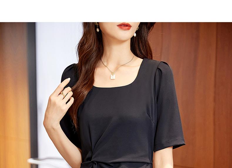 娜璐多 夏季新款短袖连衣裙女时尚气质女神范中长款裙子褶皱设计感轻熟风