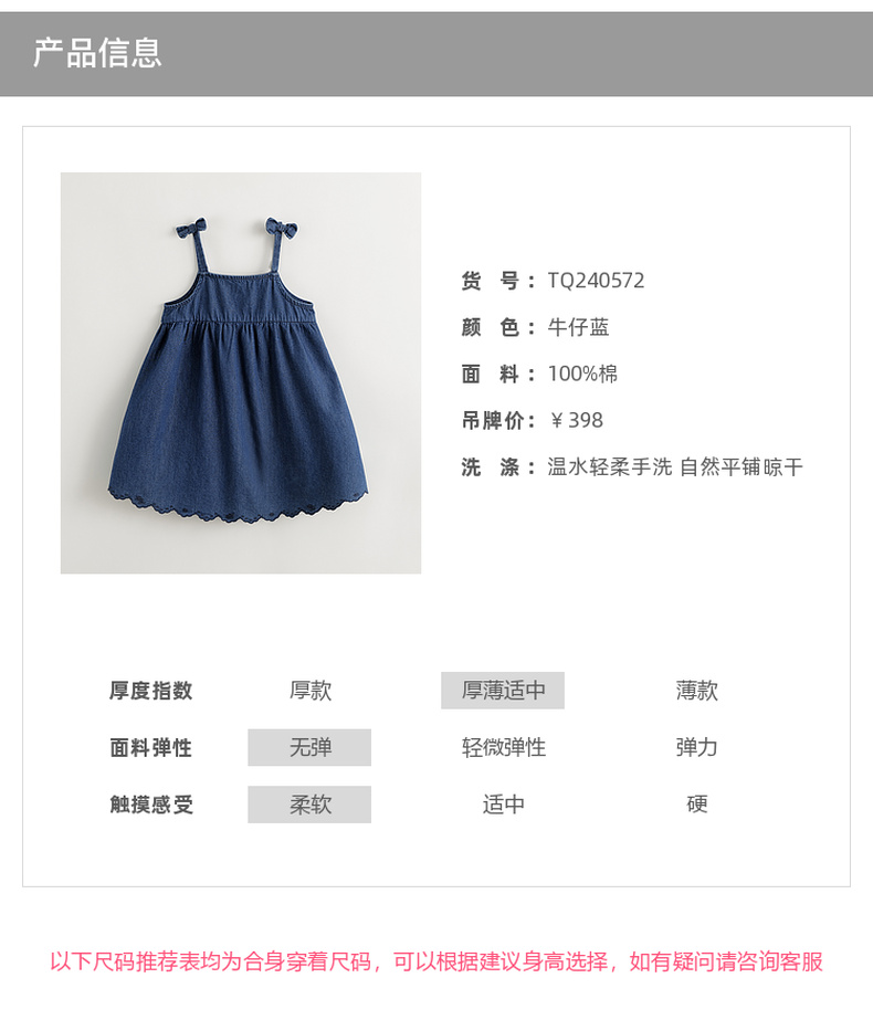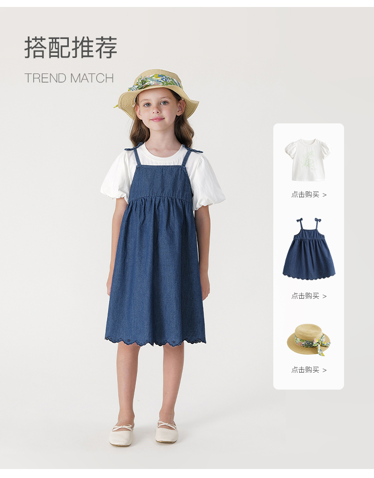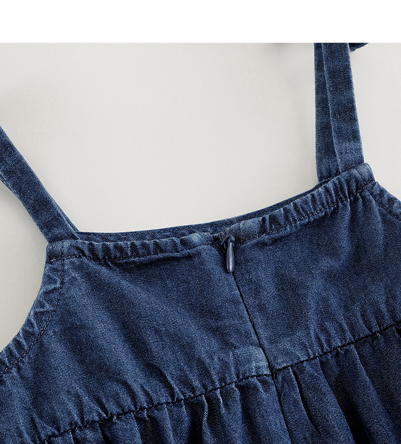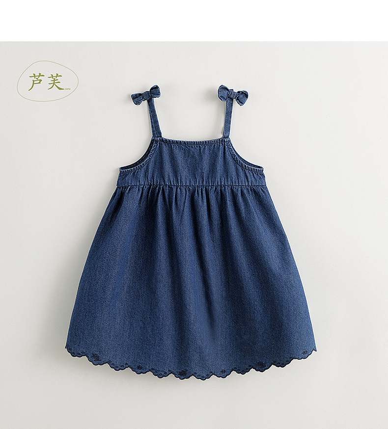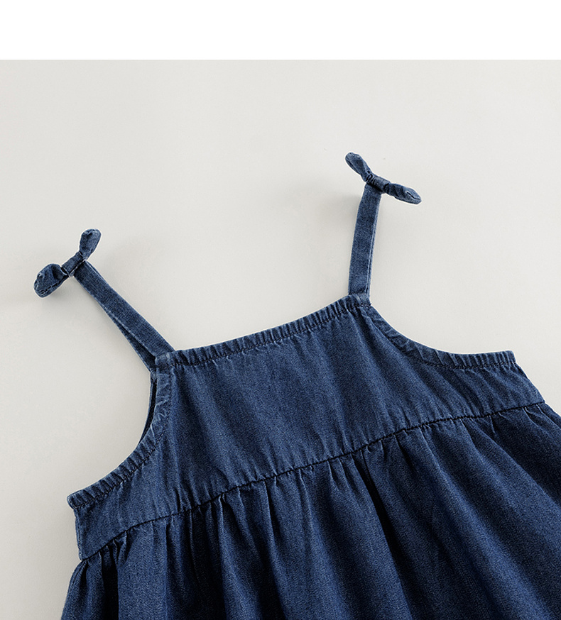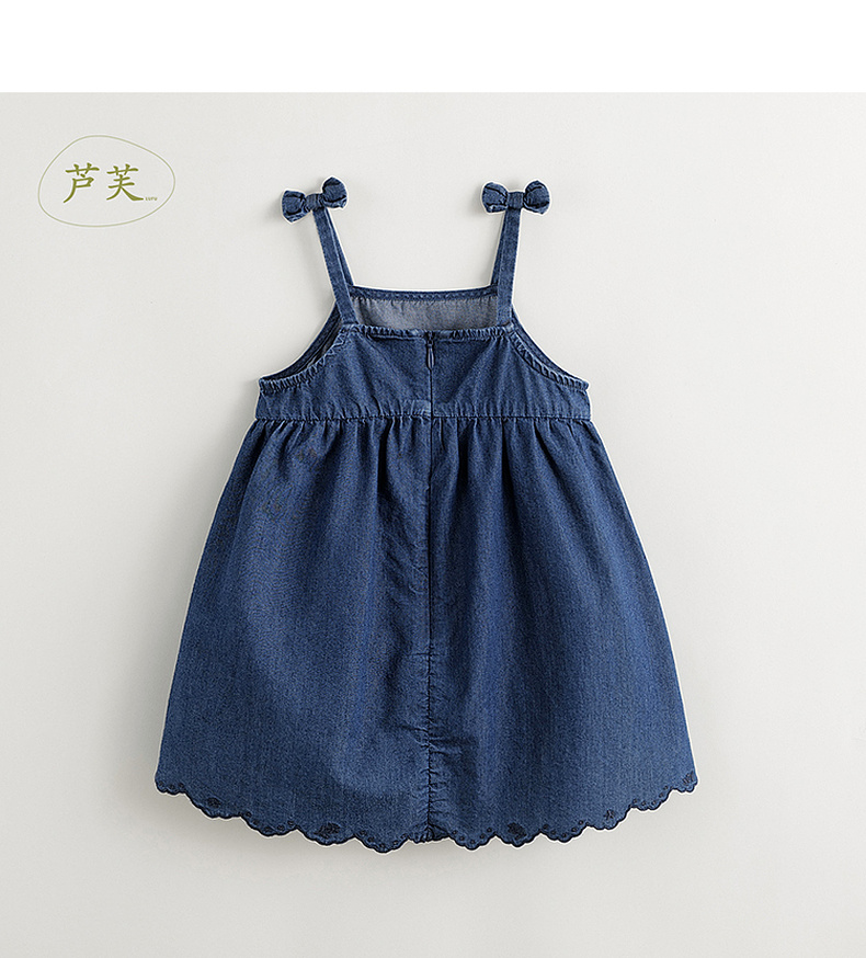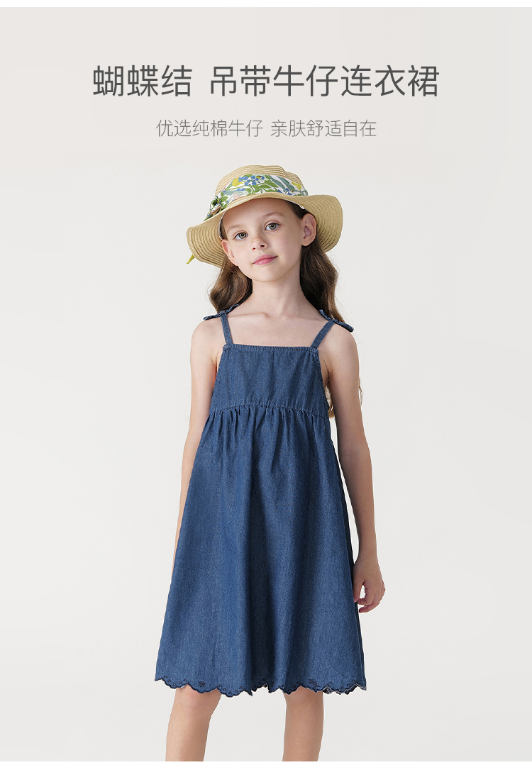 【马克珍妮 芦芙】2024夏装女童蝴蝶结吊带纯棉牛仔连衣裙240572