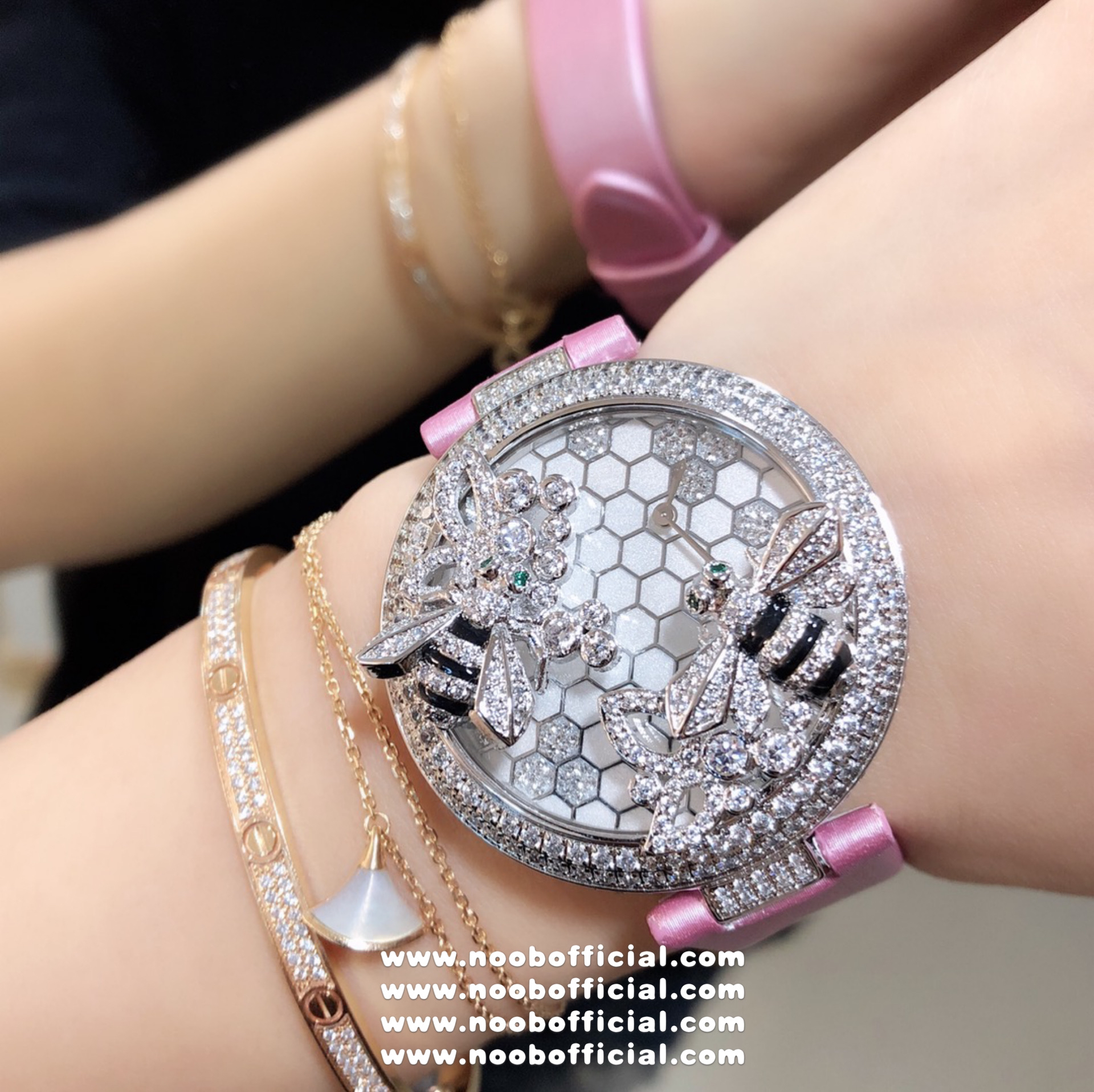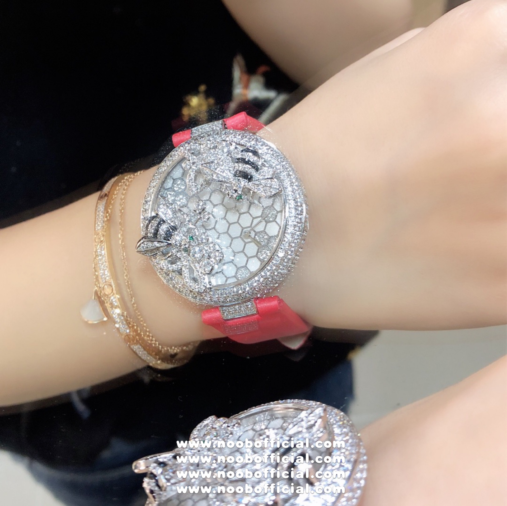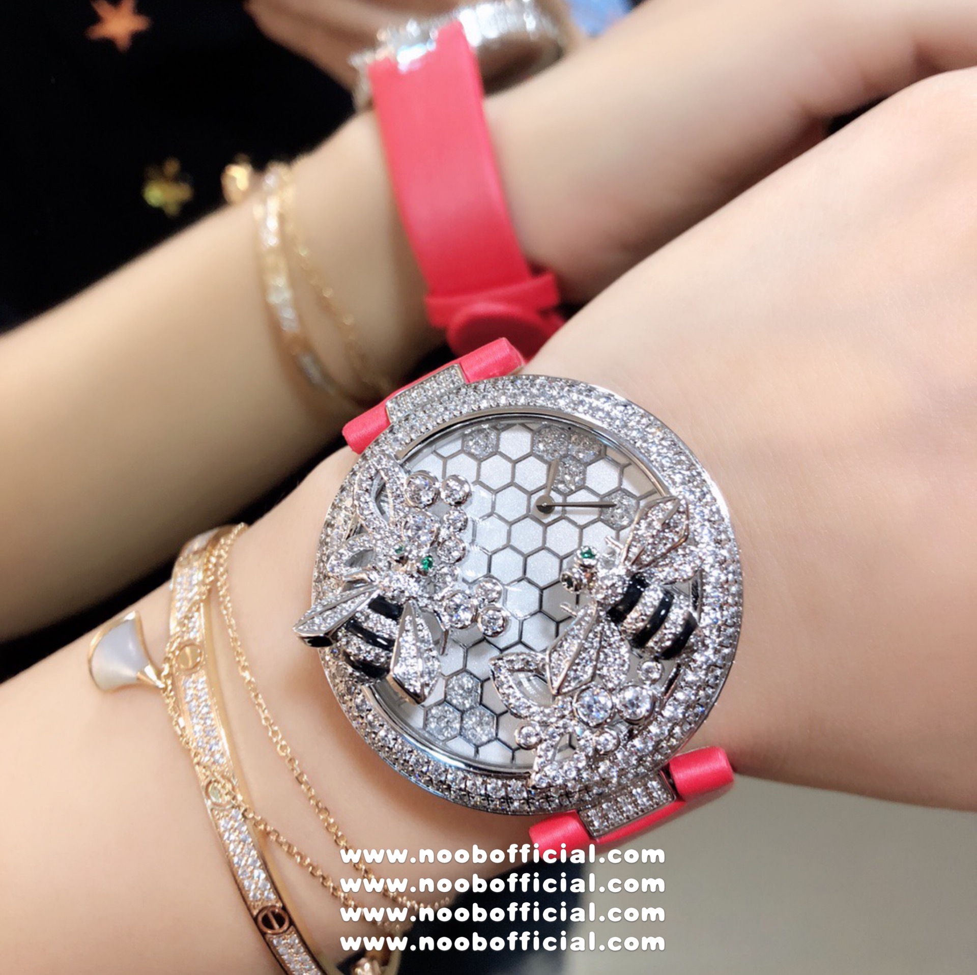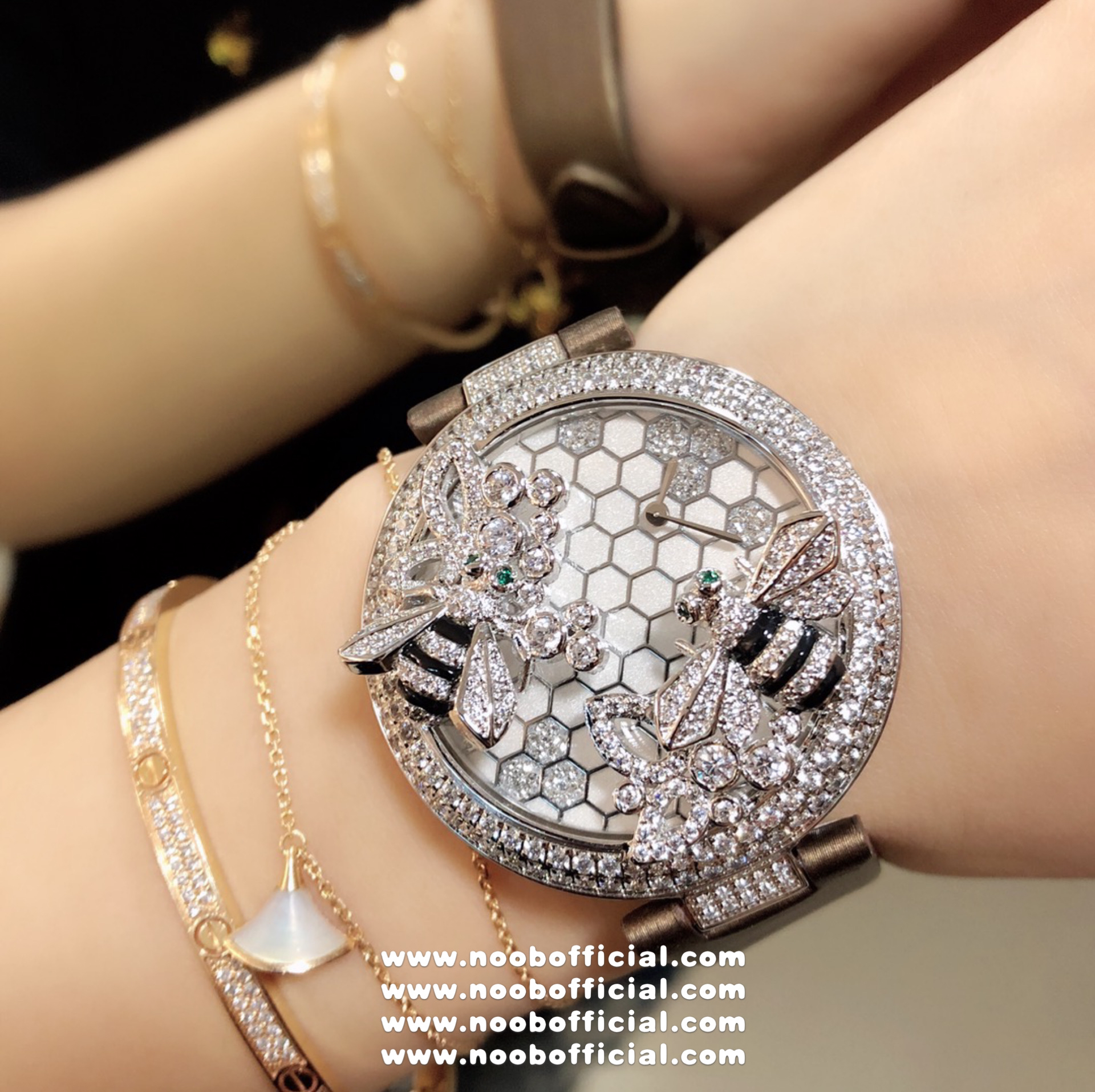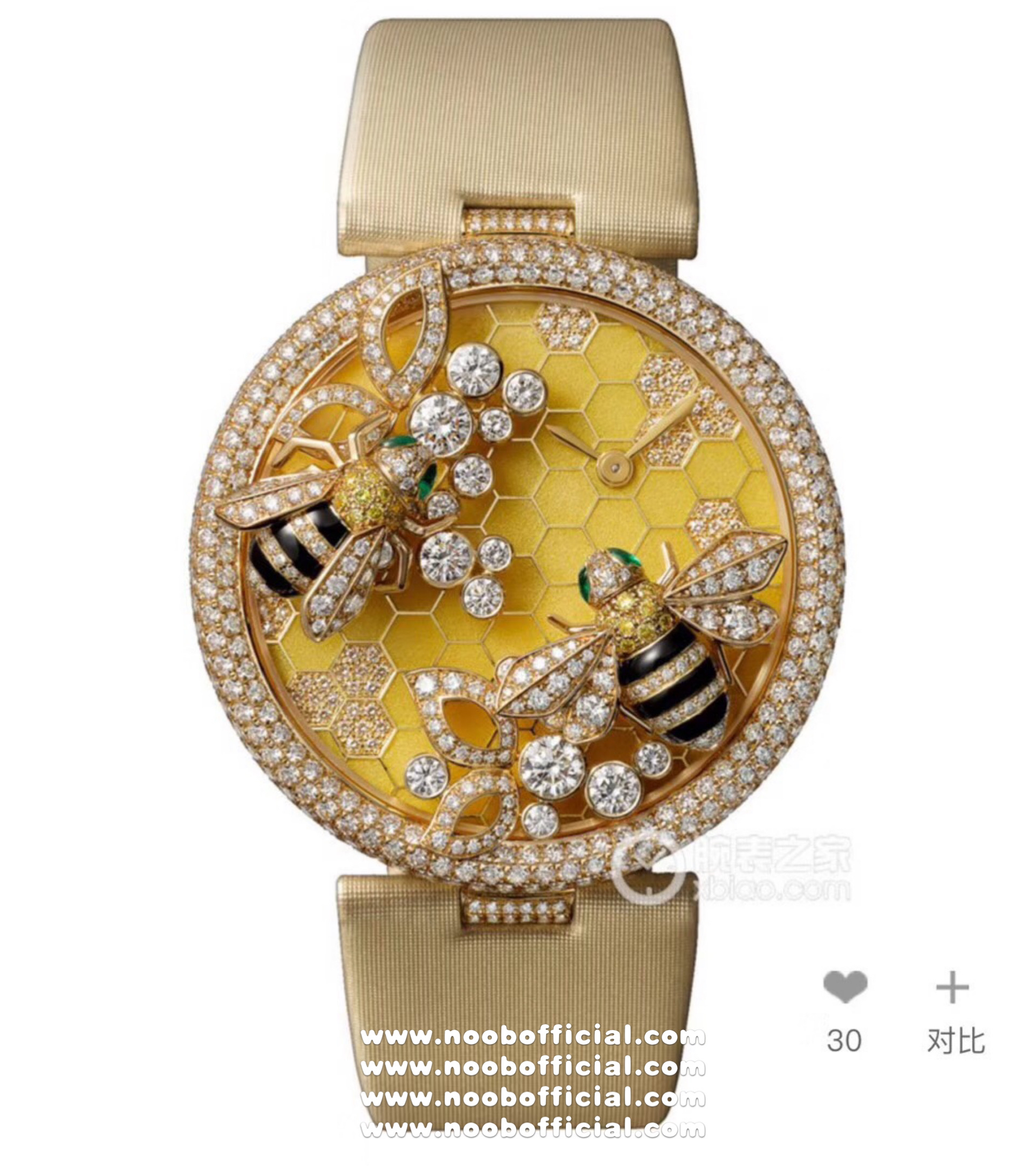 🐝当时看到第一眼就觉得超级可爱!喜欢的赶快拿下吧!整只蜜蜂都是纯手工缝制施华洛钻!光是蜜蜂的大小就调了N次!搭配正品一致的ETA出进口瑞士石英机芯!40mm的表盘!表带绢丝也是采用原版一致的小薄绒绢丝表带 颜色也是刚刚好的好看!光是为了对版就花费了多少心血 不过换来都是值得的!