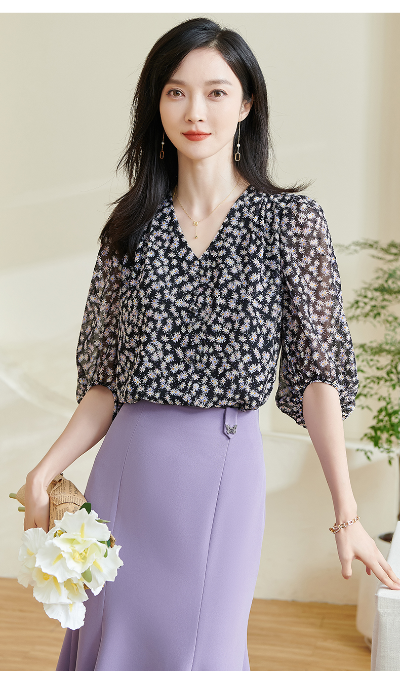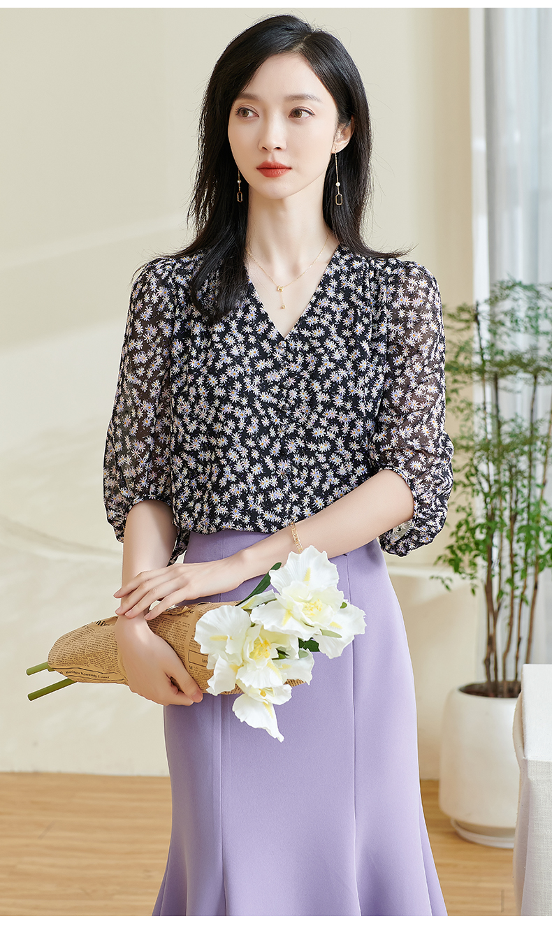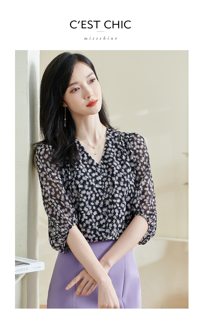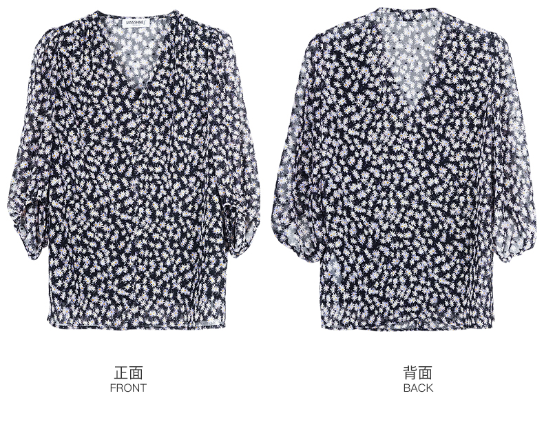 剩S/L 米思阳2025春季新款时尚减龄碎花衬衫宽松舒适微透泡泡袖上衣0373