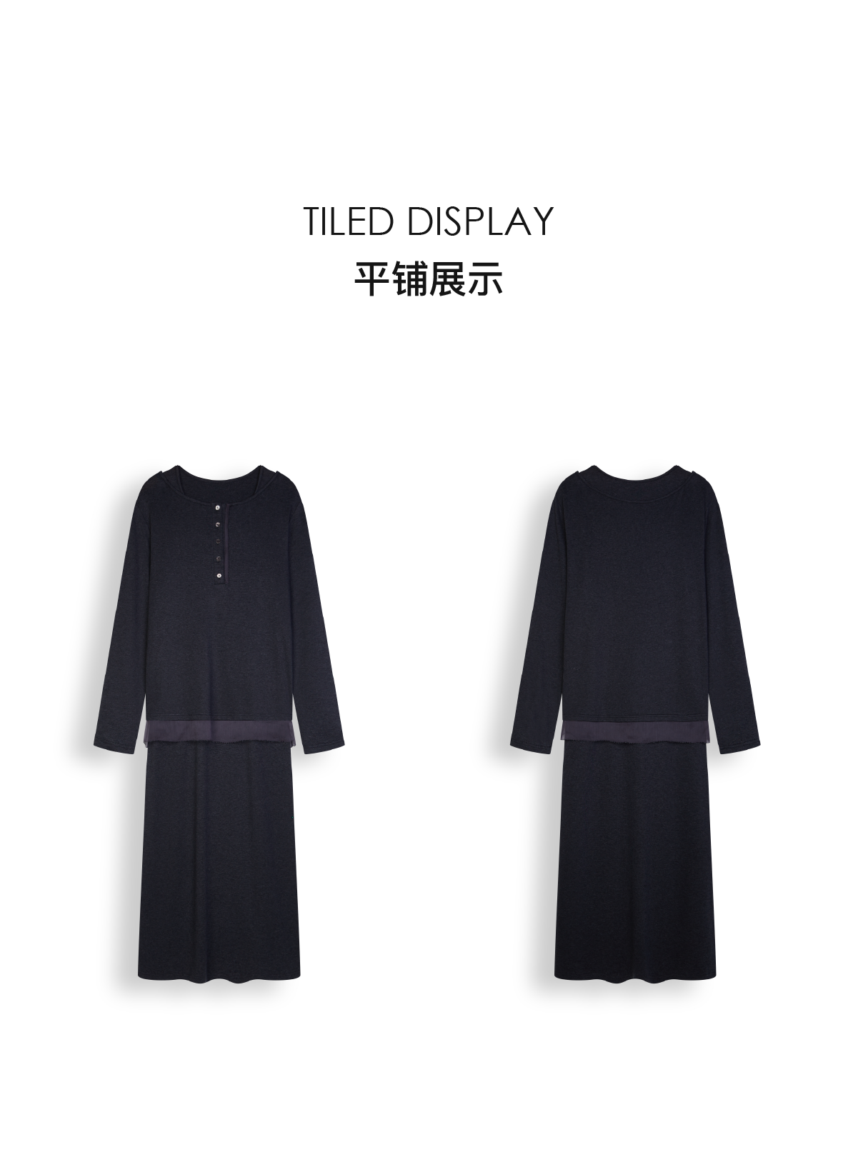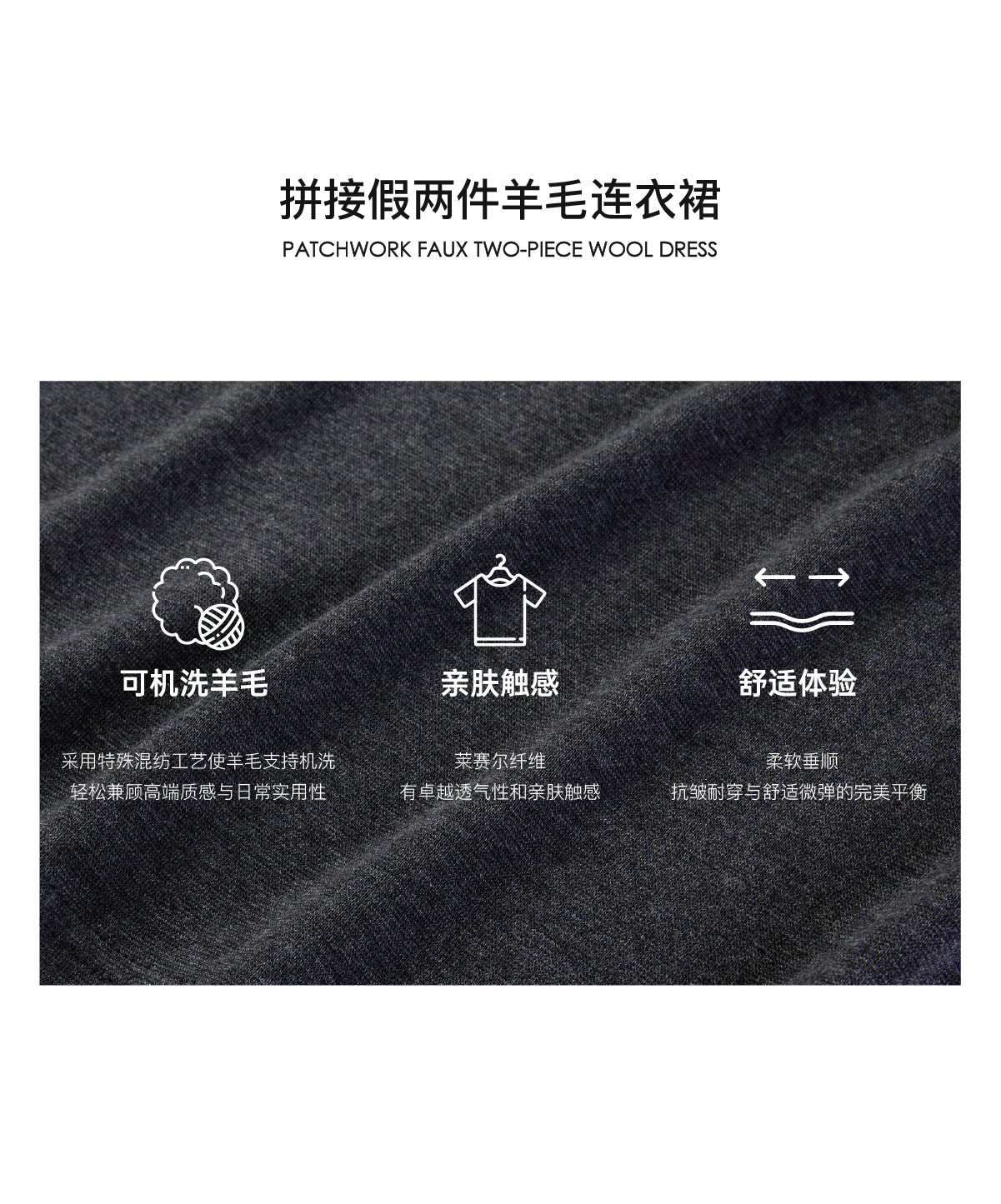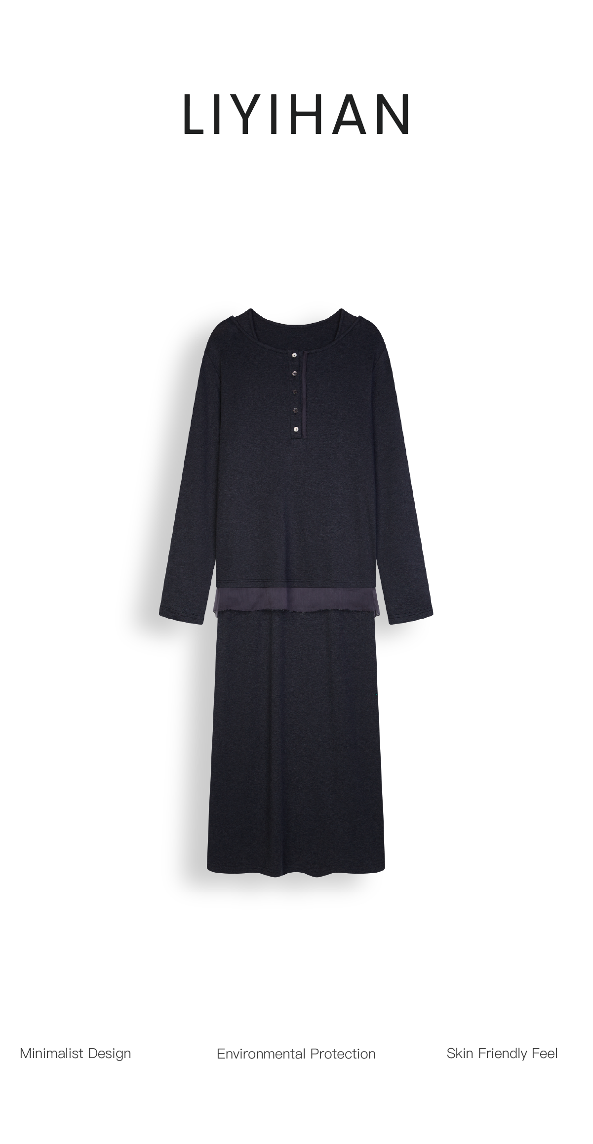 LIYIHAN 2025年秋季新款通勤莱赛尔两件式长袖中长款连衣裙灰色女