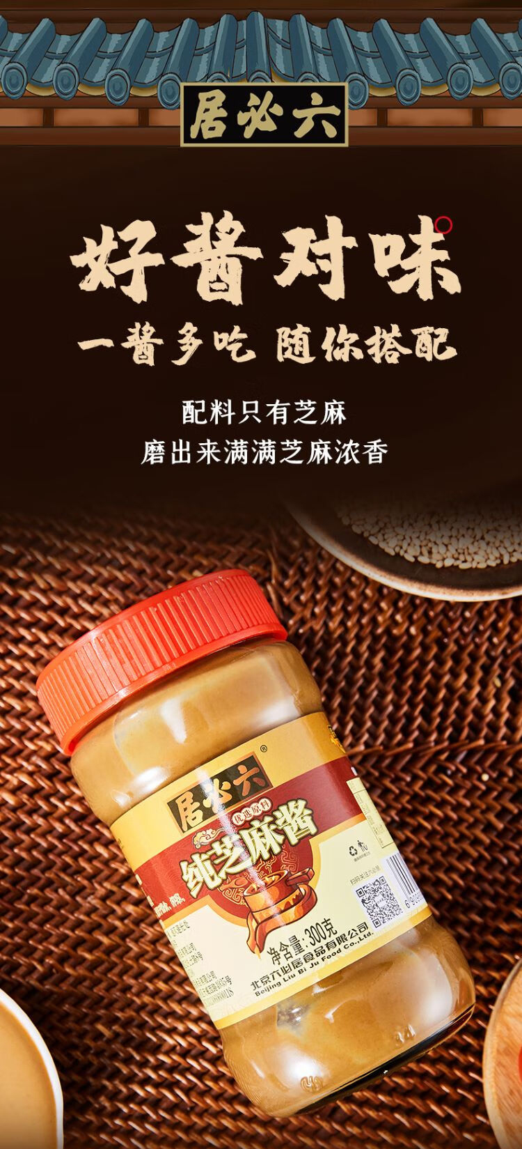 【中国农垦】六必居 纯芝麻酱300g*2