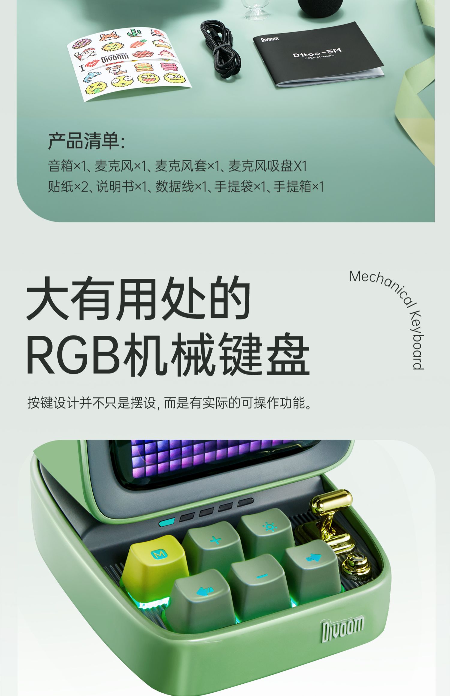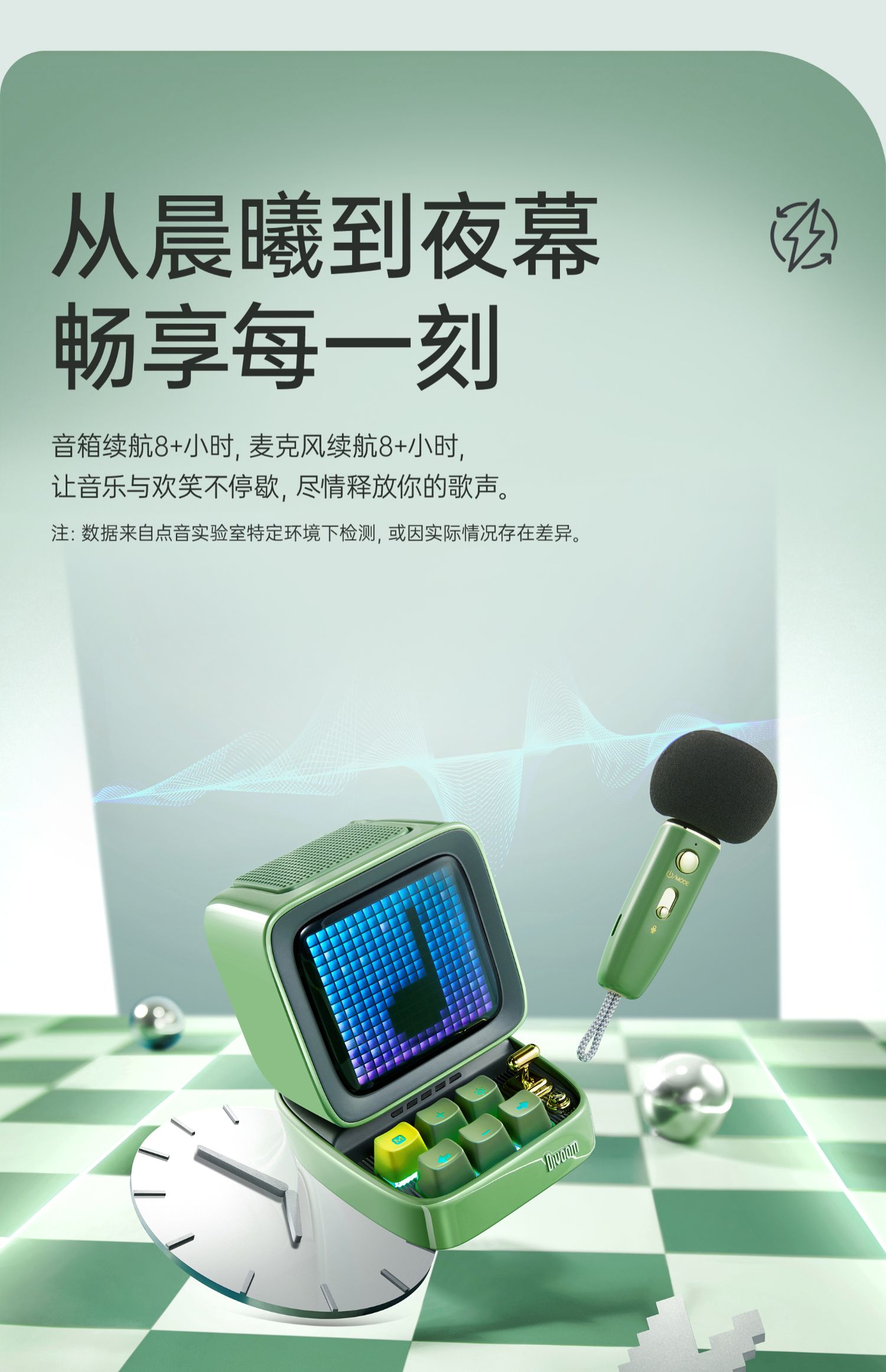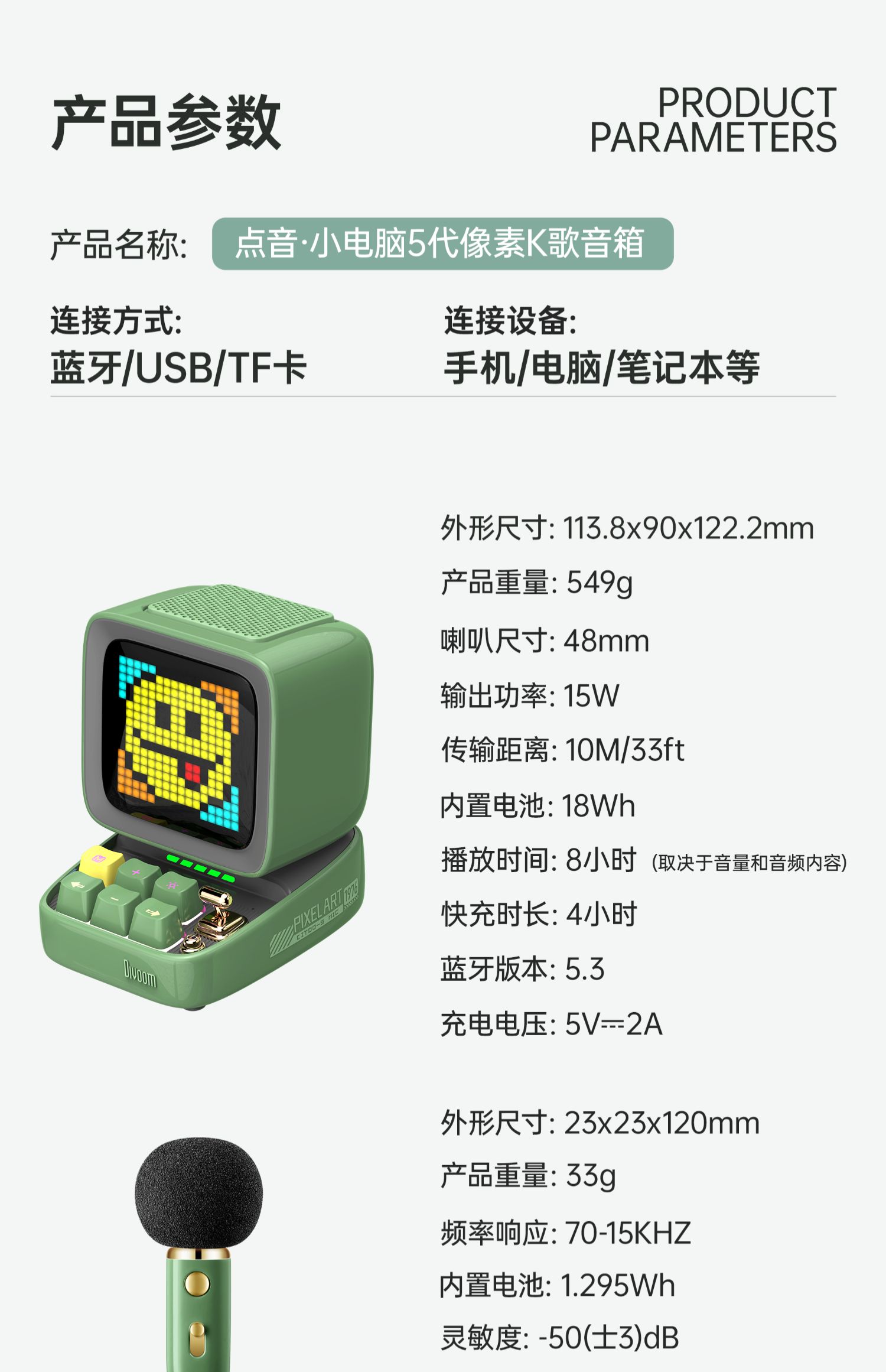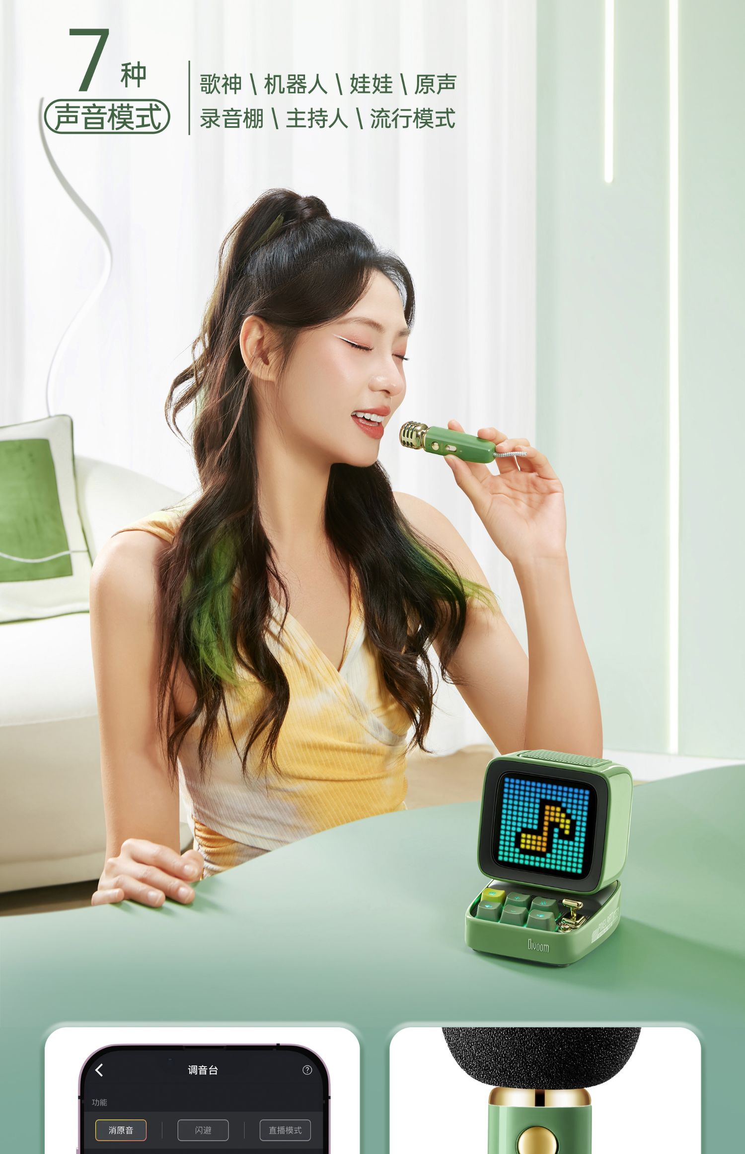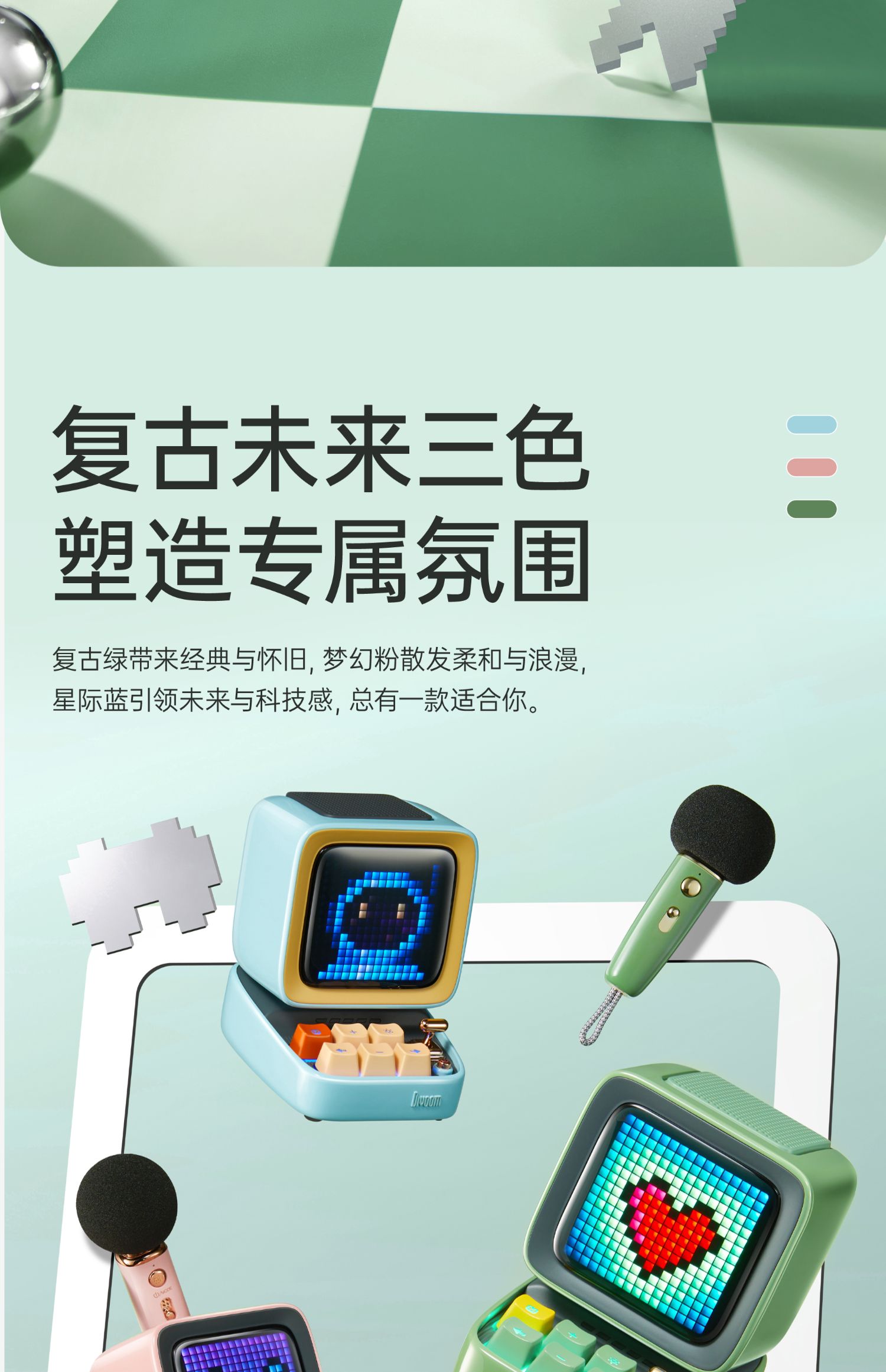 Divoom 像素 K歌音响 蓝牙k歌音响唱歌生日礼物话筒高音质复古音箱