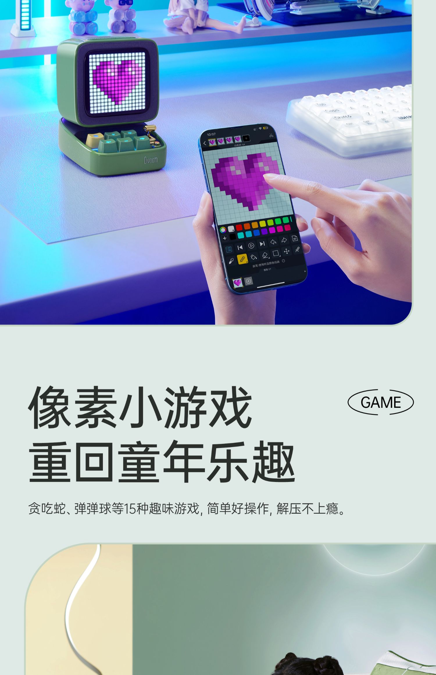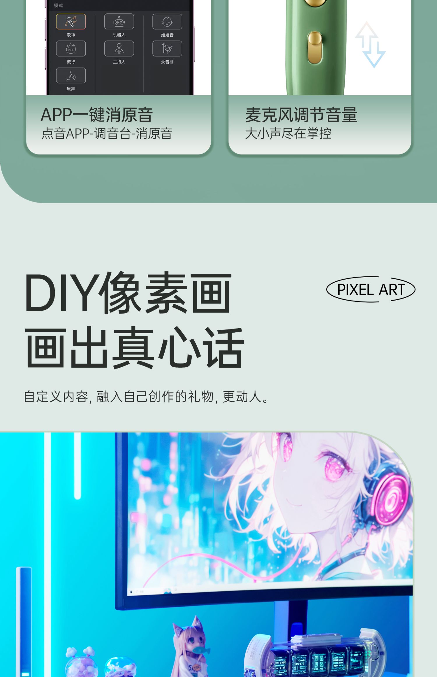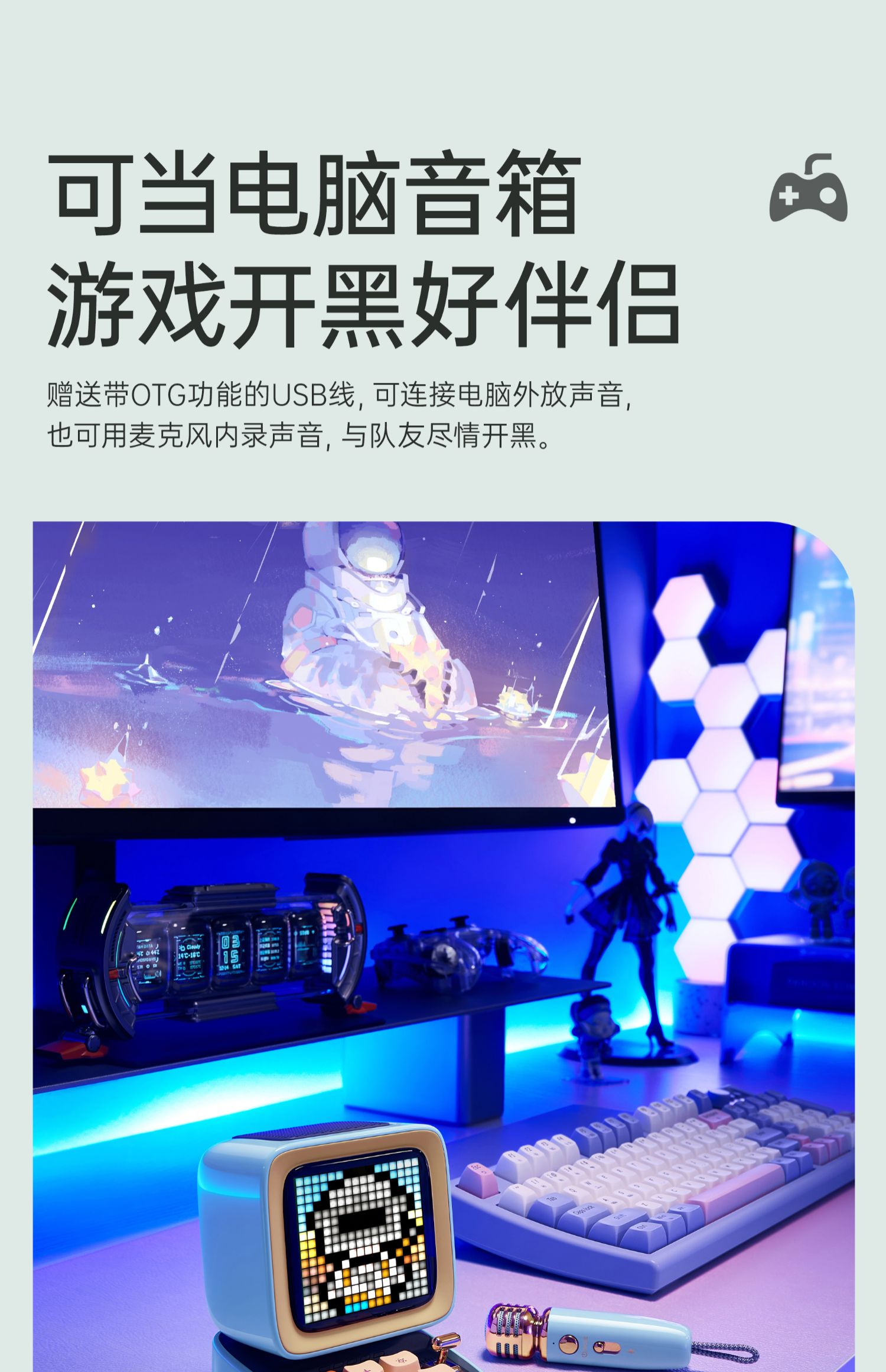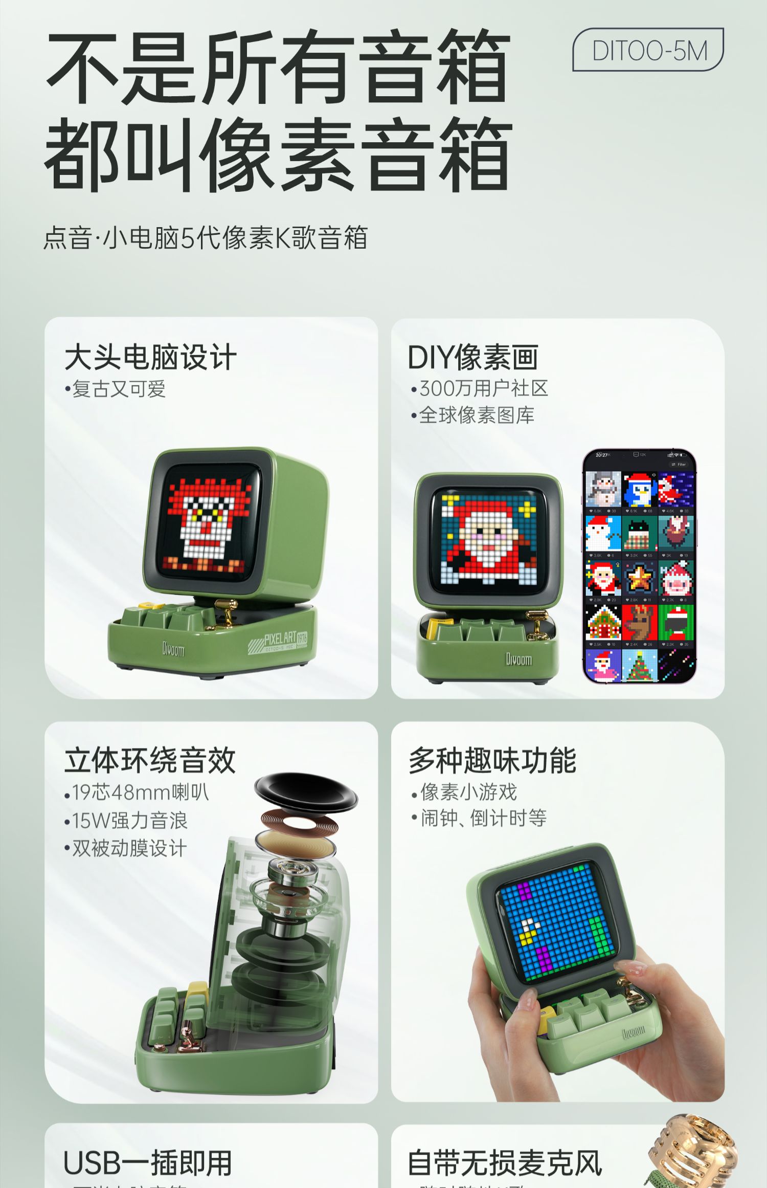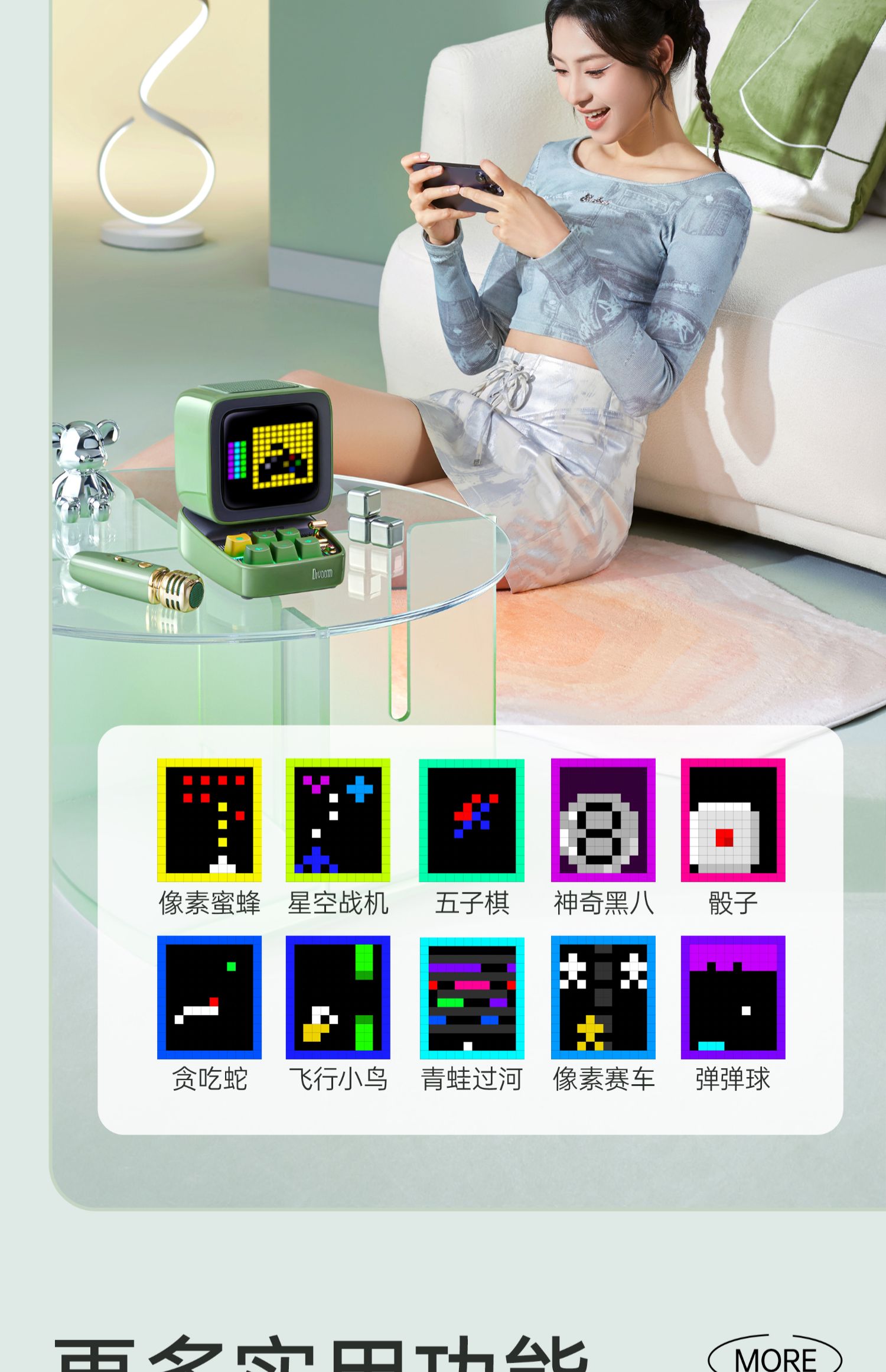 Divoom 像素 K歌音响 蓝牙k歌音响唱歌生日礼物话筒高音质复古音箱