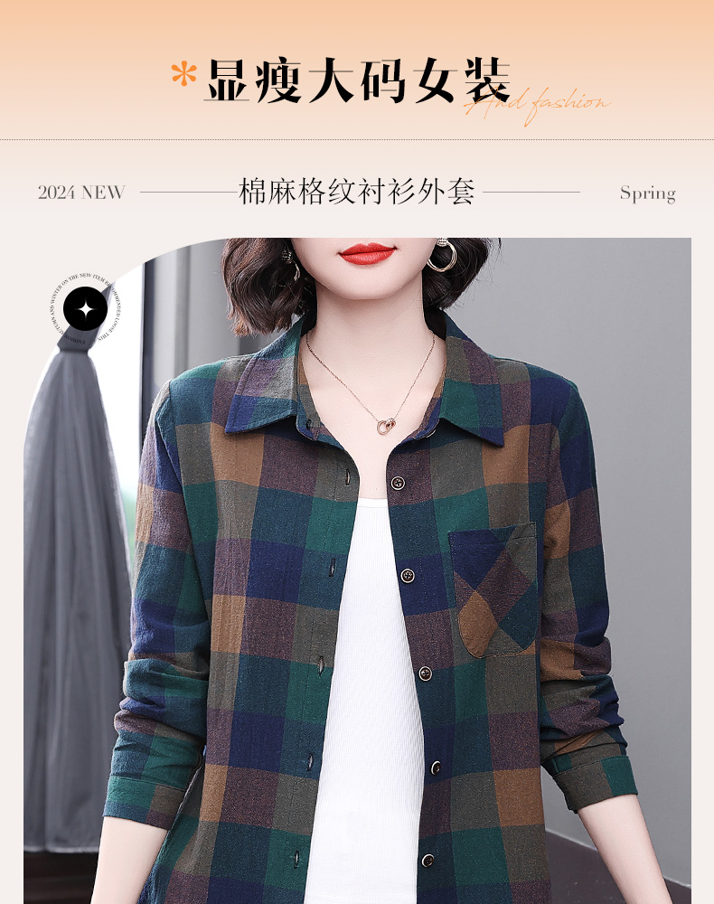 2026春款女装今年流行爆款别致漂亮衬衫复古格子外套长袖上衣百搭