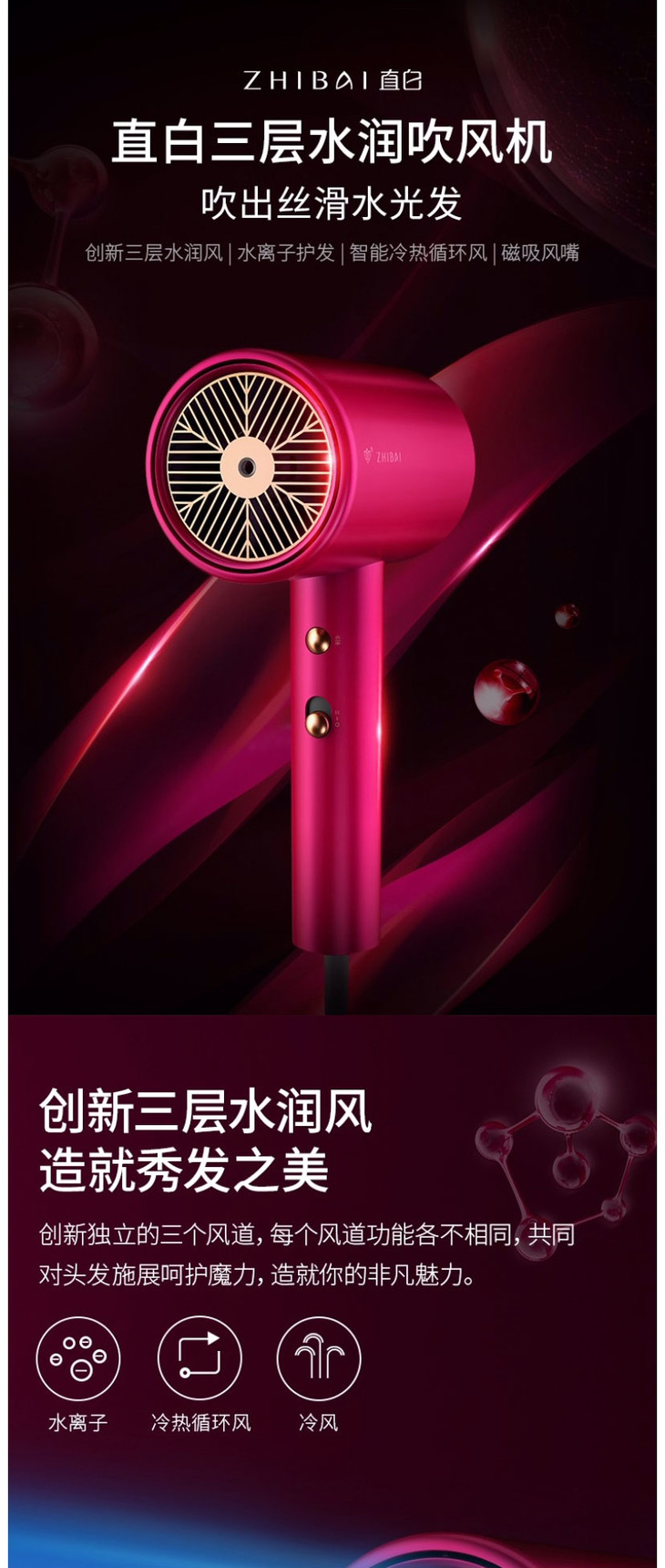 直白三层水润吹风机