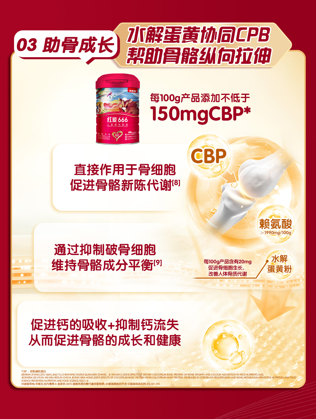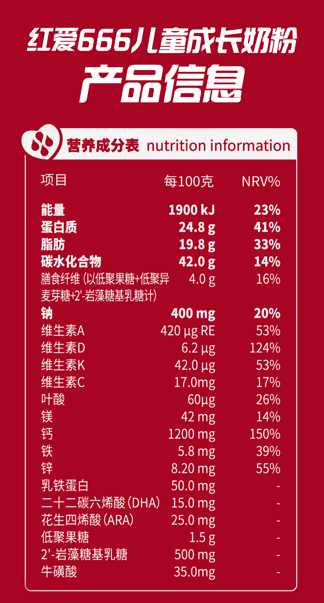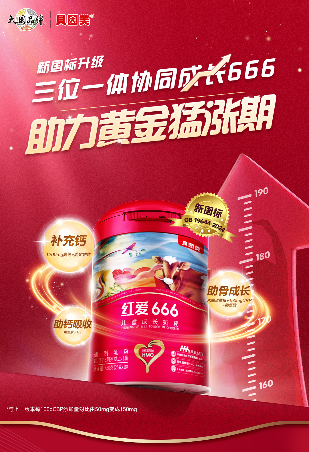 【跟着国宝买到宝】贝因美红爱666儿童成长奶粉450g高钙HMO乳铁蛋白罐装