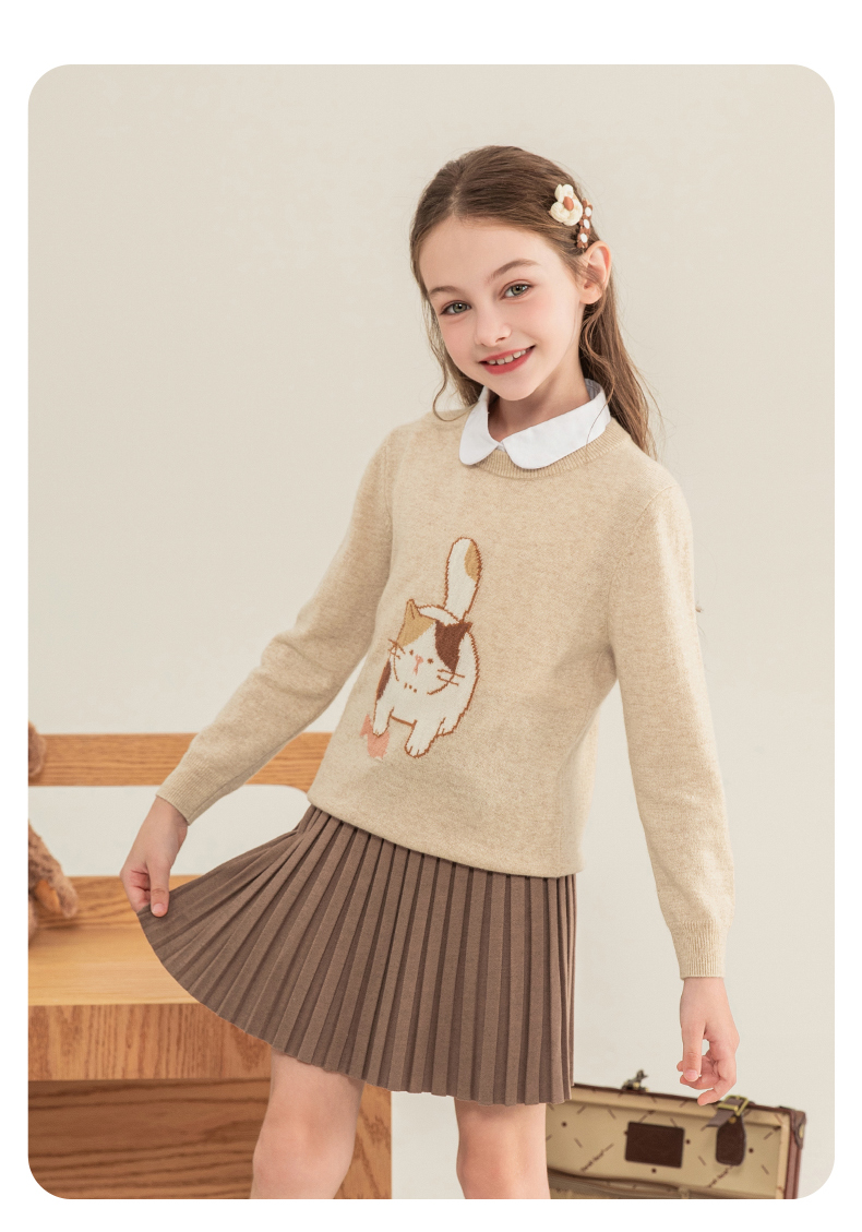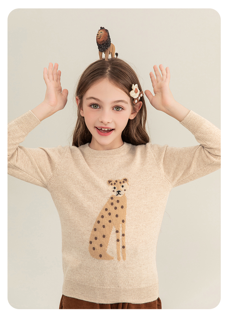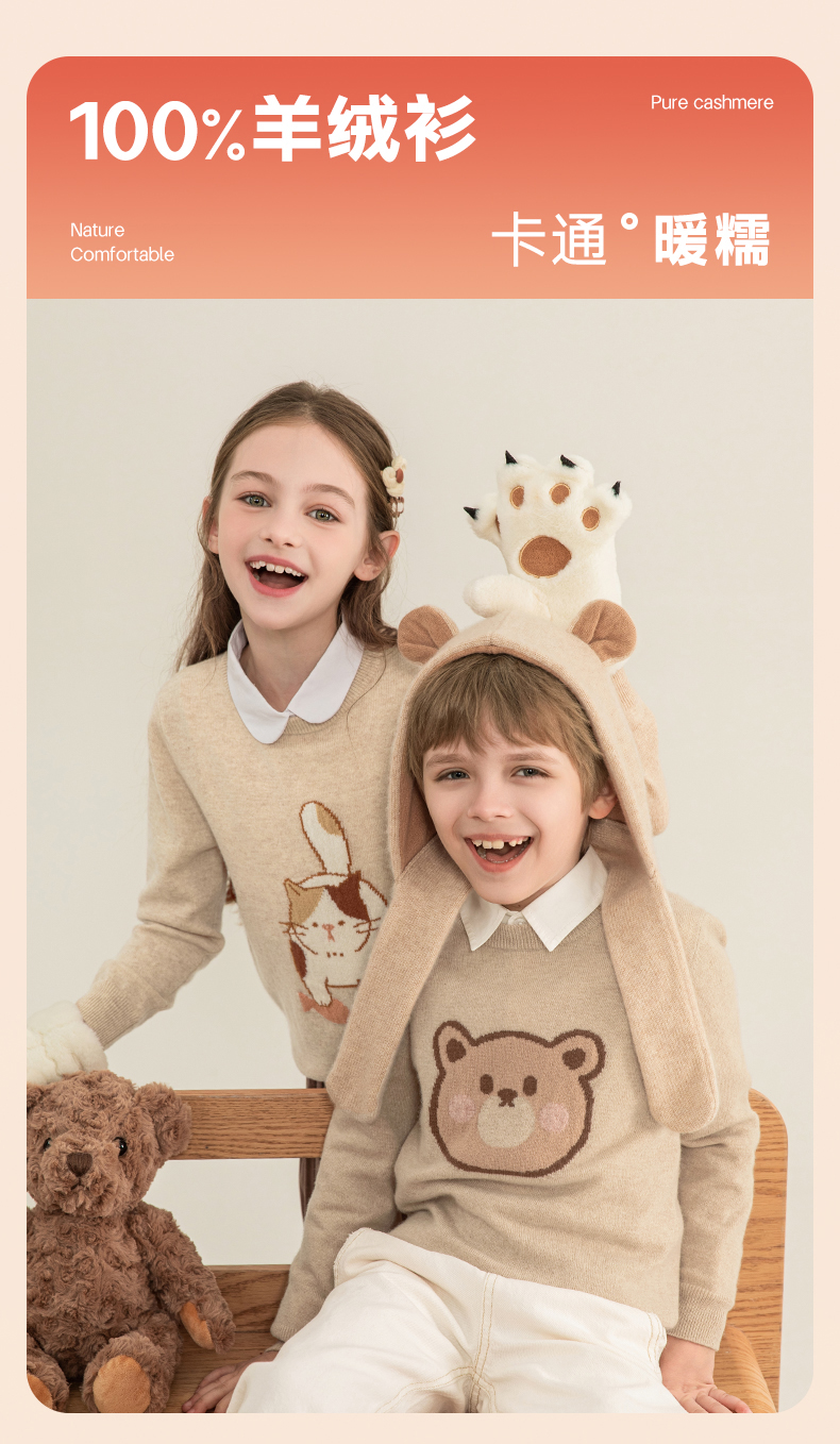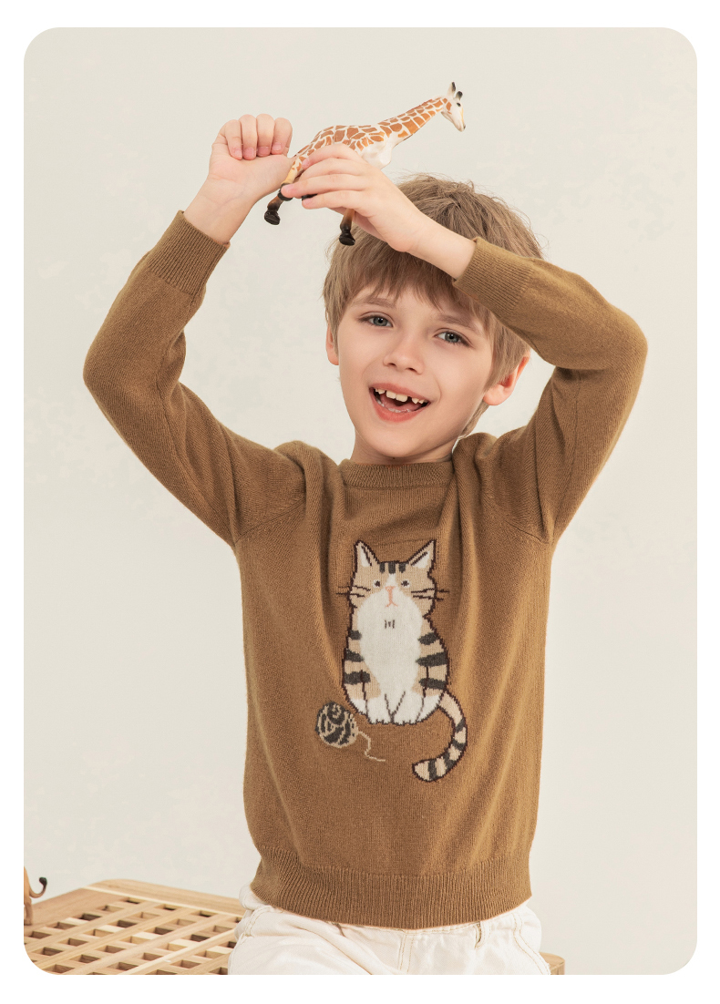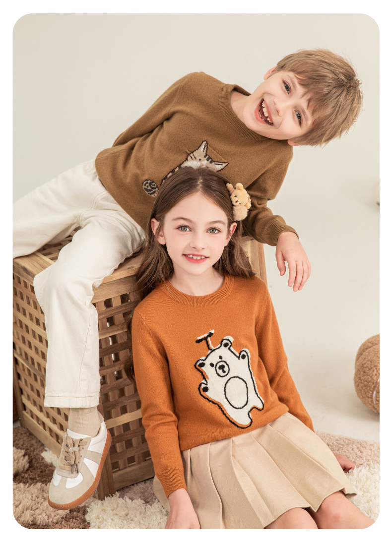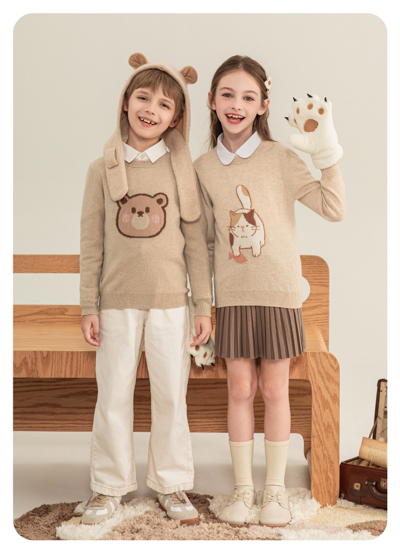 mettekids儿童羊绒衫2023秋季新款童装毛衣男童女童卡通针织衫