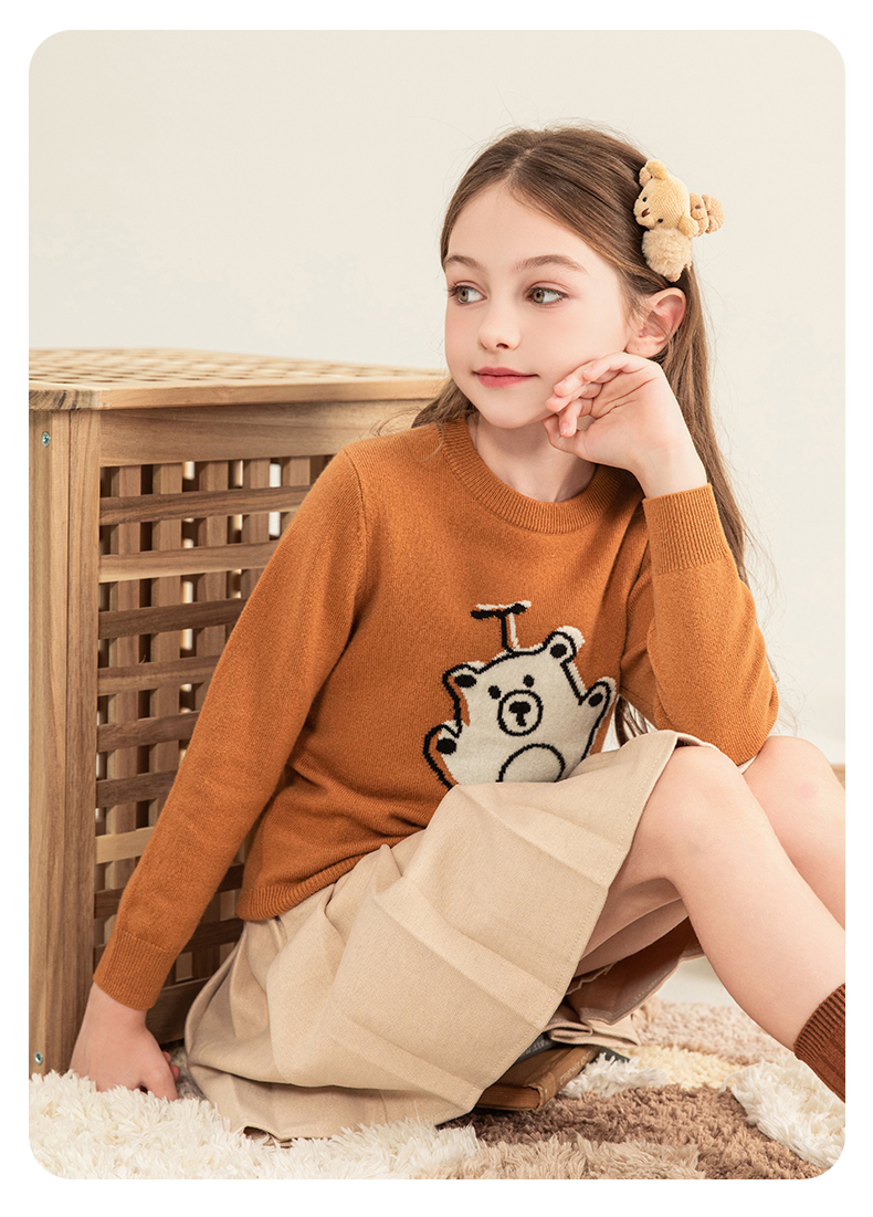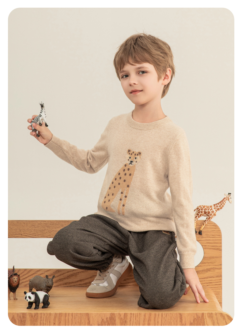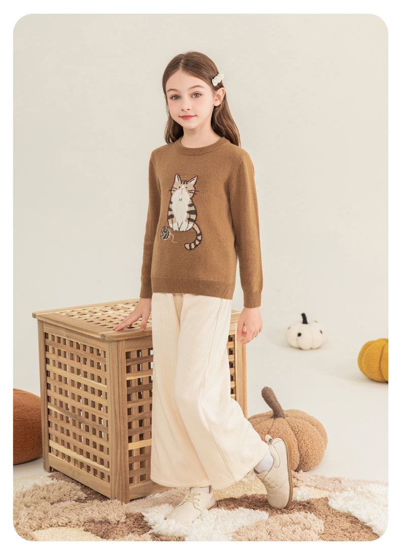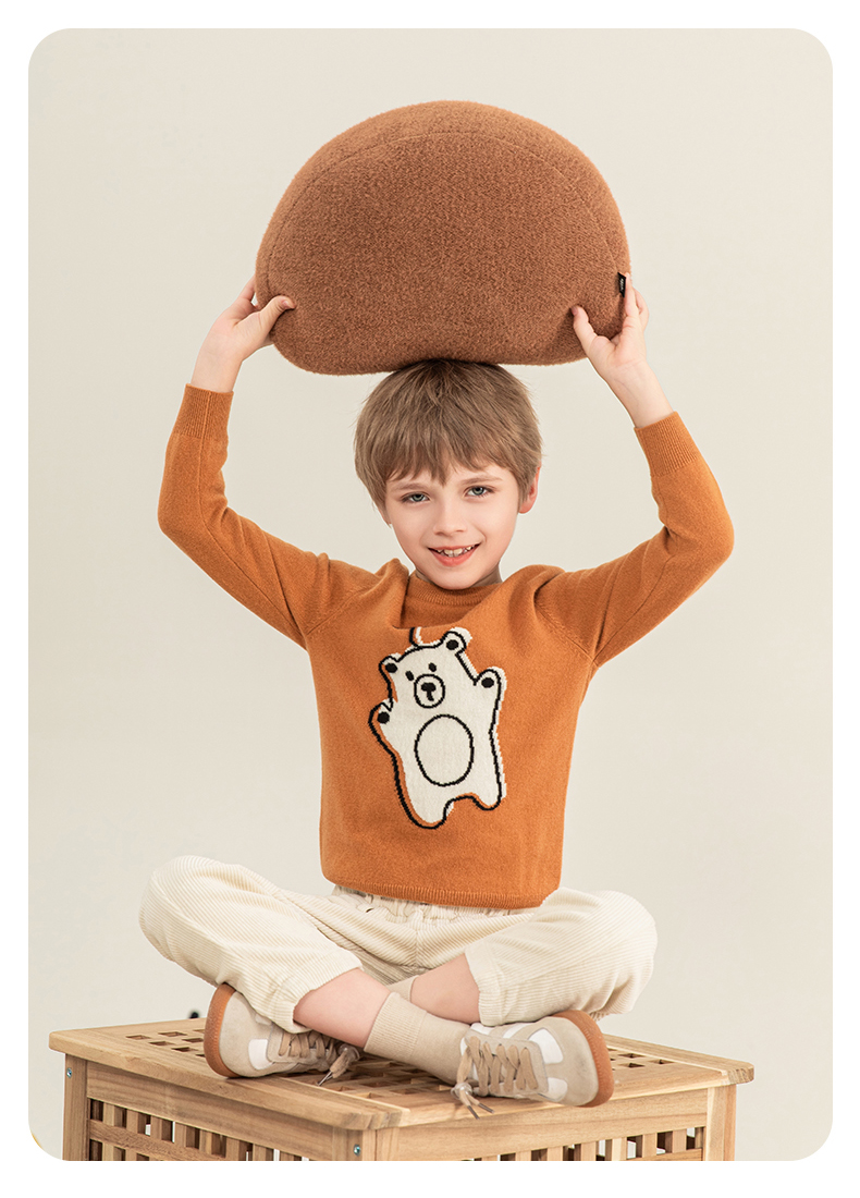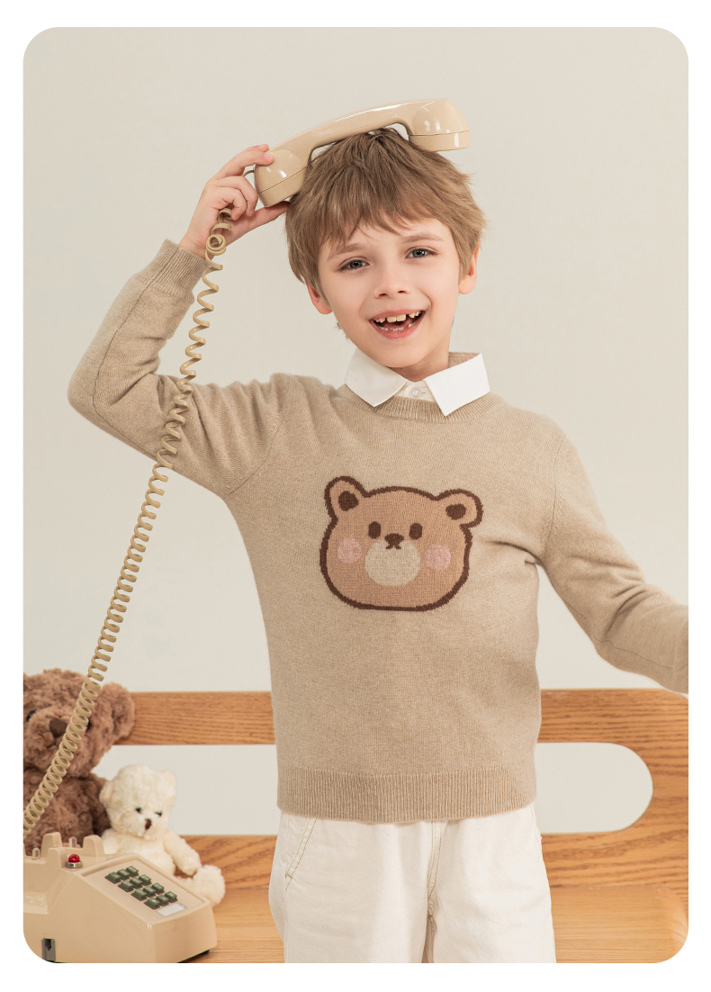mettekids儿童羊绒衫2023秋季新款童装毛衣男童女童卡通针织衫