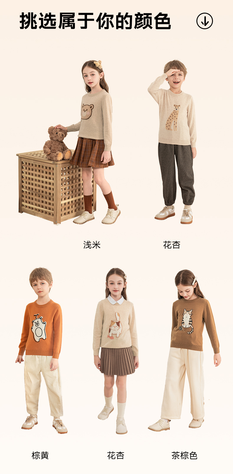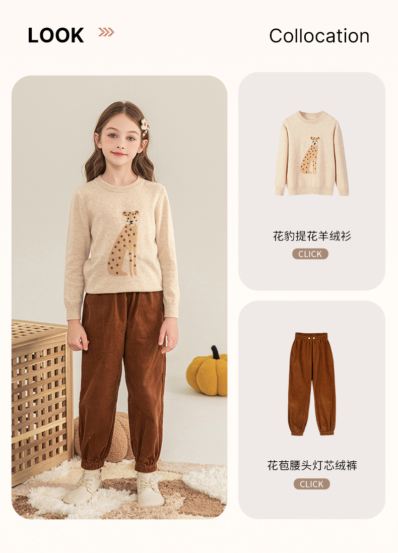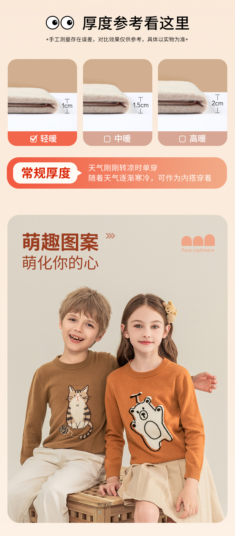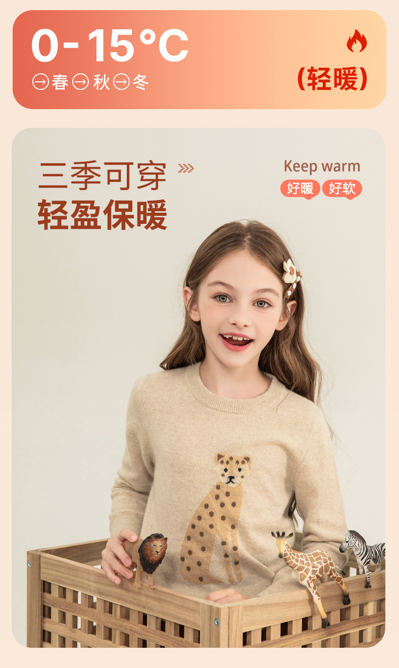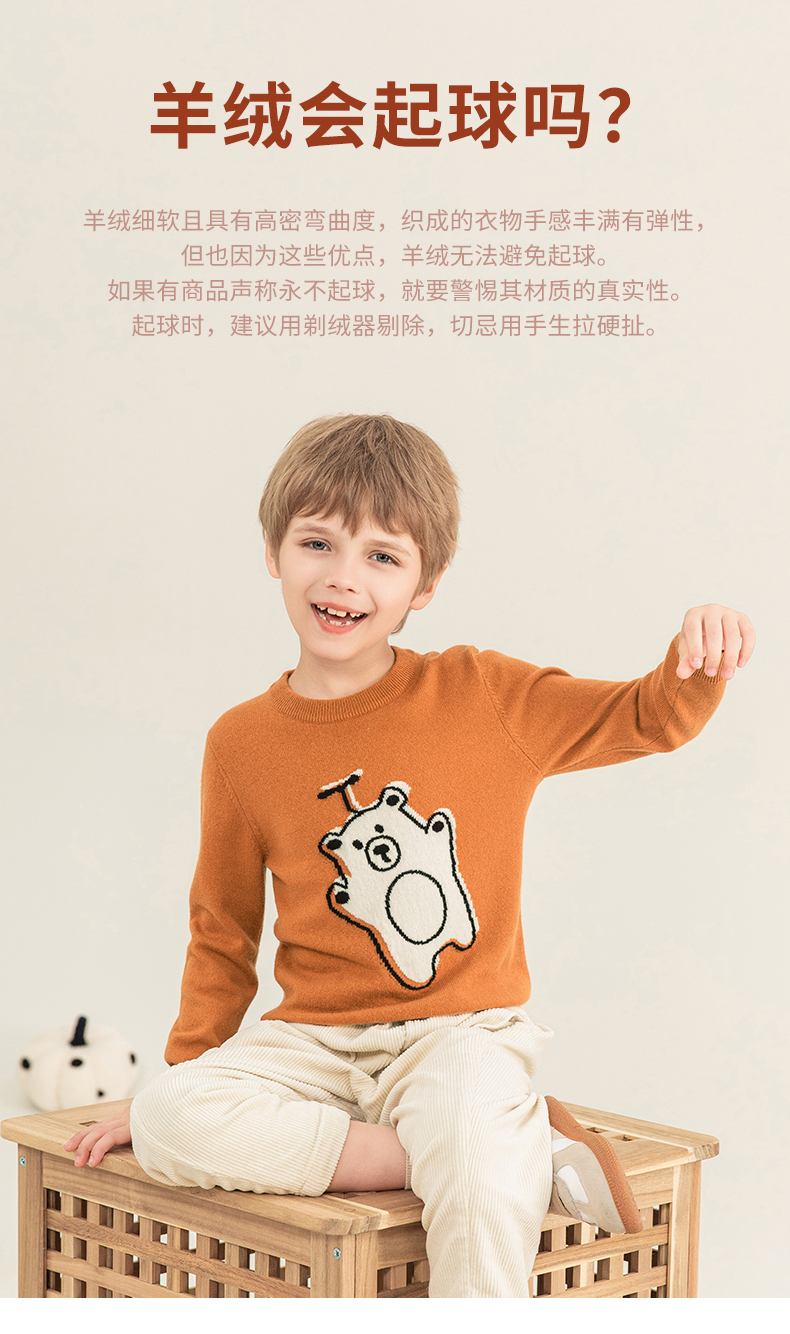 mettekids儿童羊绒衫2023秋季新款童装毛衣男童女童卡通针织衫
