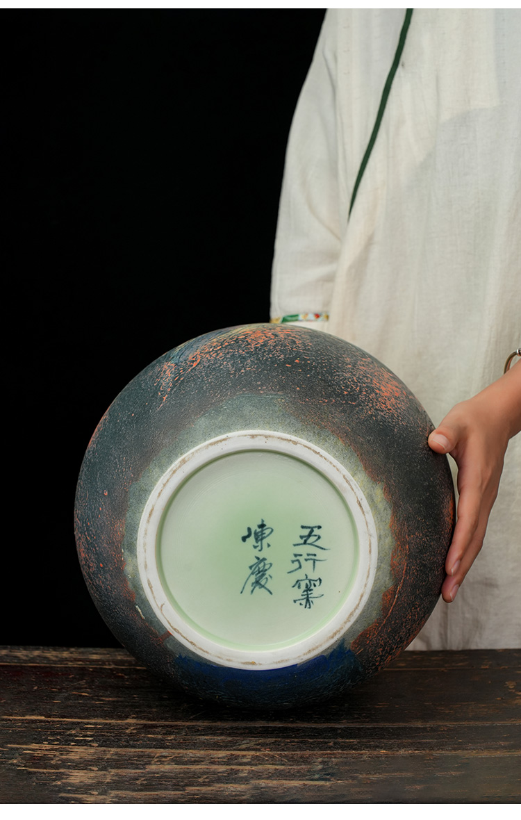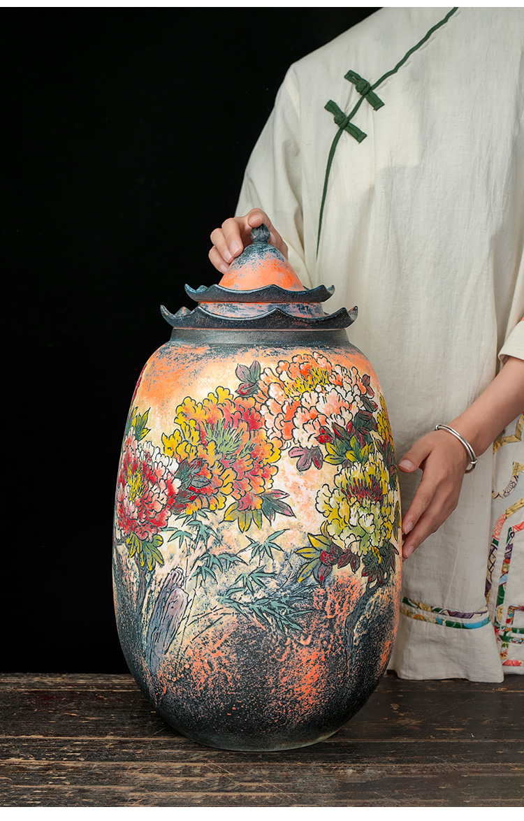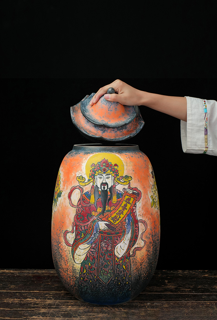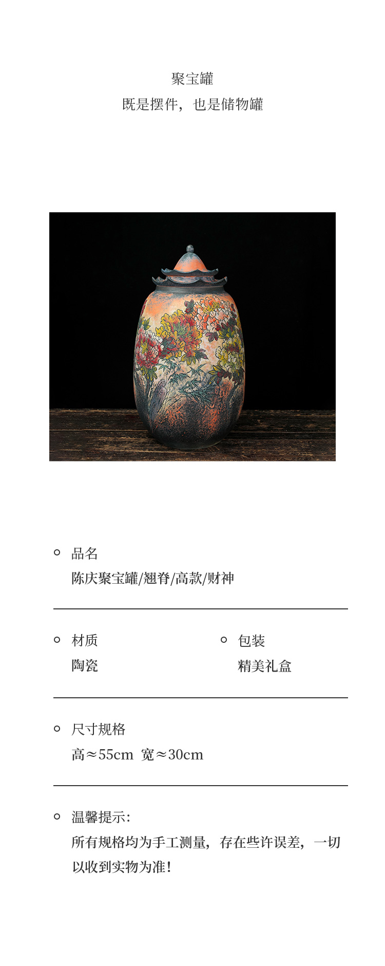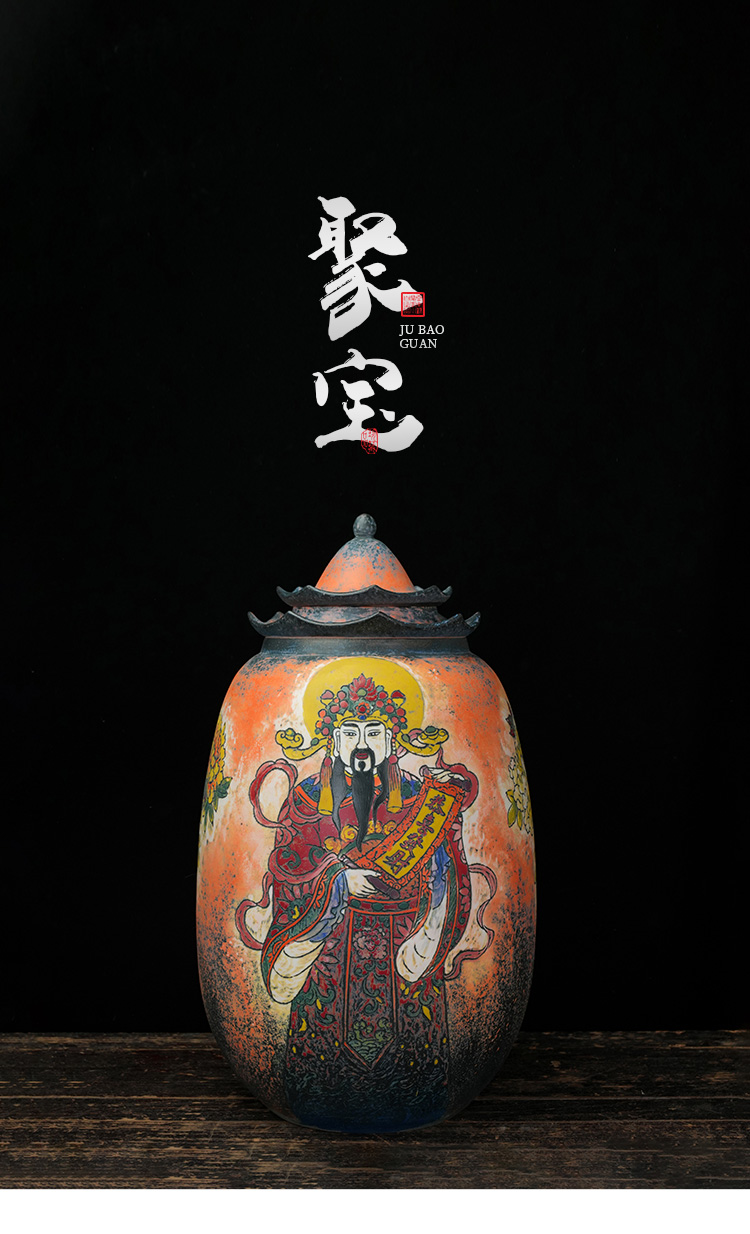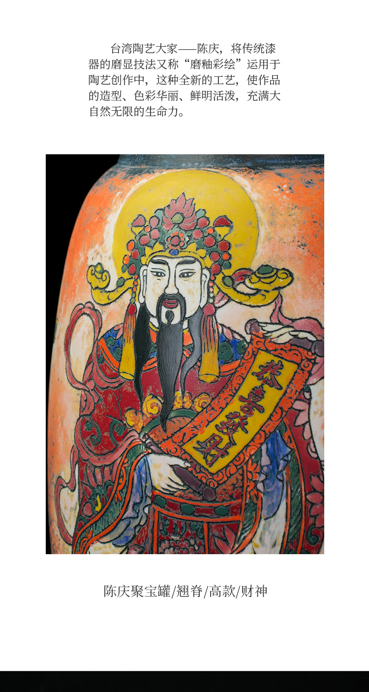 台湾陶艺大家 陈庆 高款聚宝罐翘脊财神招财大摆件家用办公室风水罐客厅店铺大容量储存罐