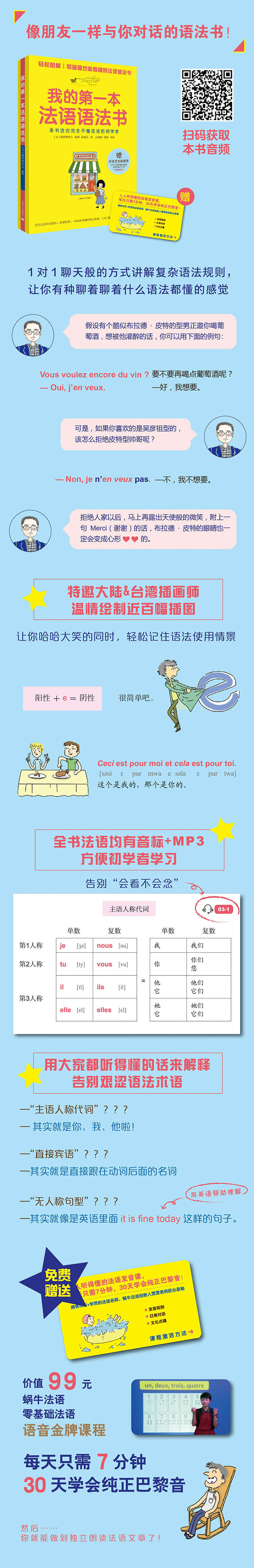 如果这本书对各位读者而言是一本“法语语法地图一本通”,并能让各位读者乐在法语国度之中的话,对我而言就是无上的喜悦。