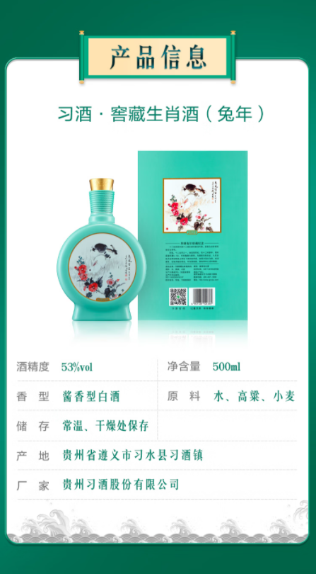 习酒 53度 酱香型白酒 窖藏生肖酒(兔年)