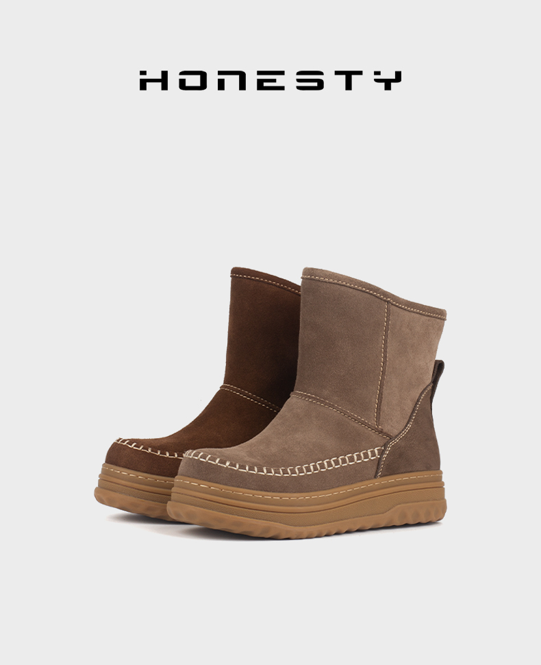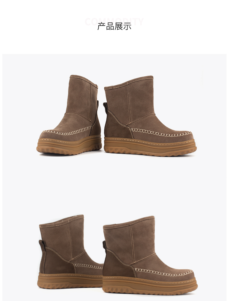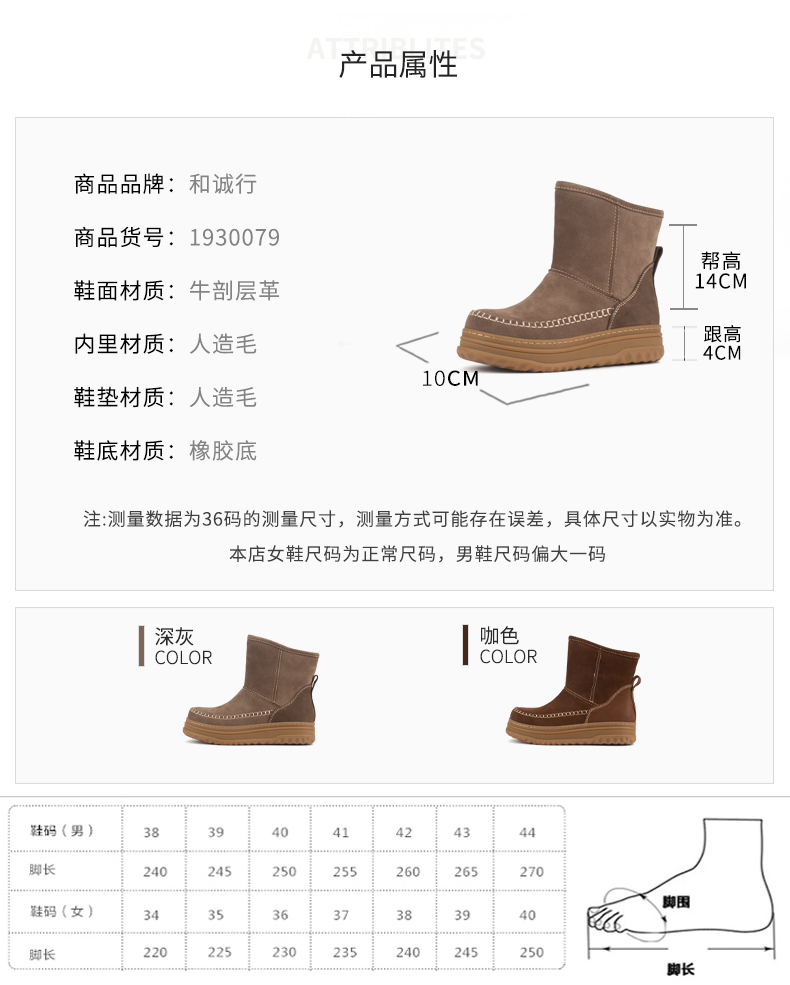 和诚行 2024秋冬新款厚底一脚蹬百搭短靴女加绒保暖雪地靴1930079