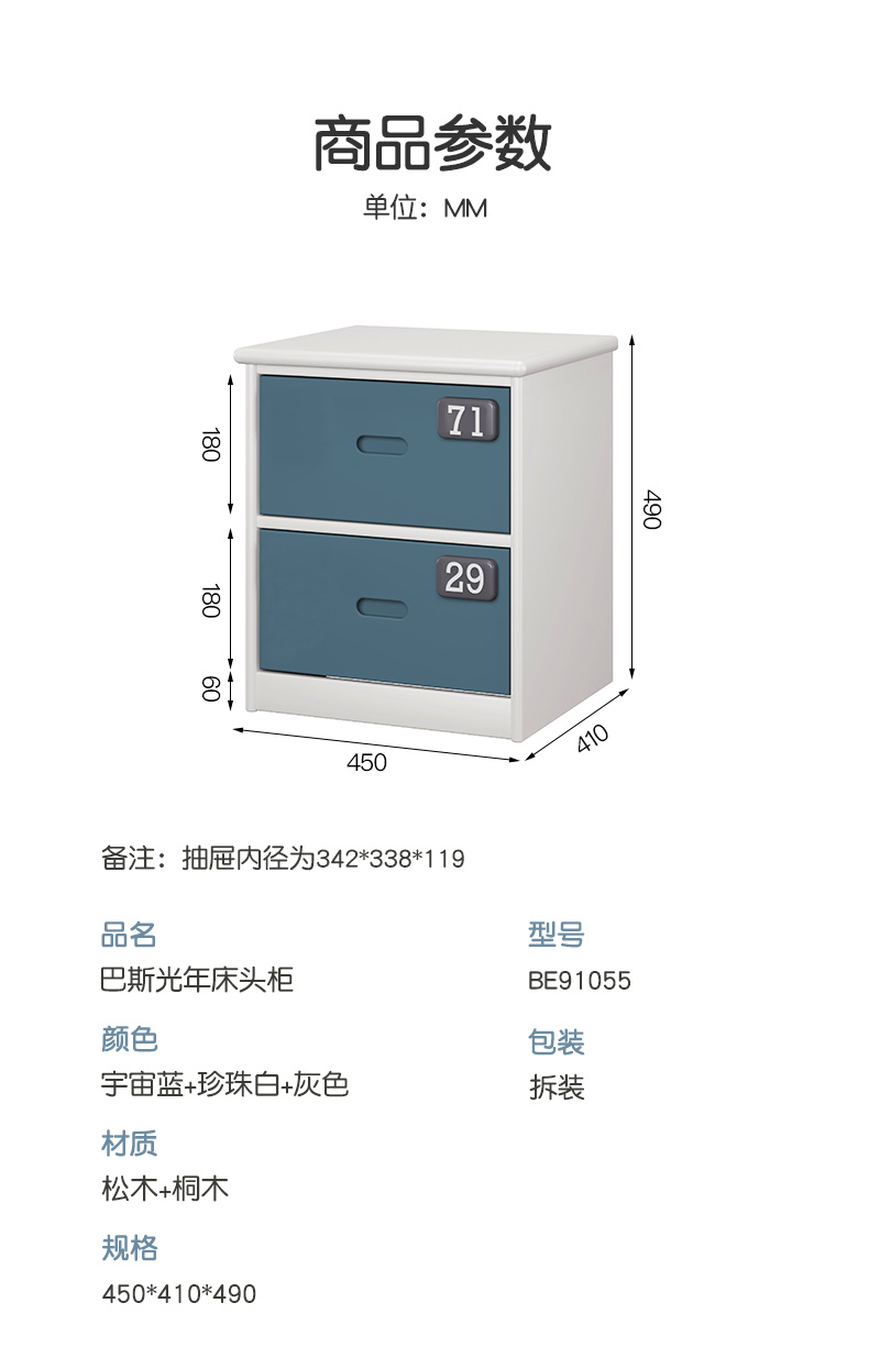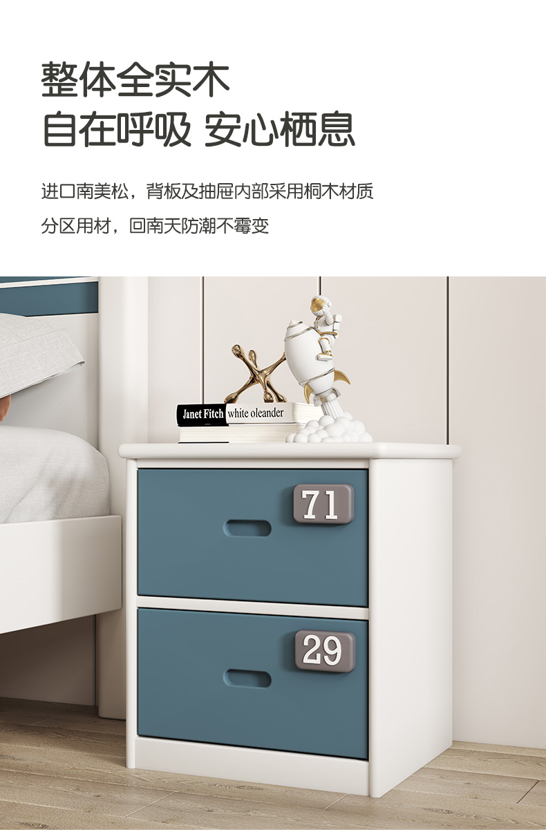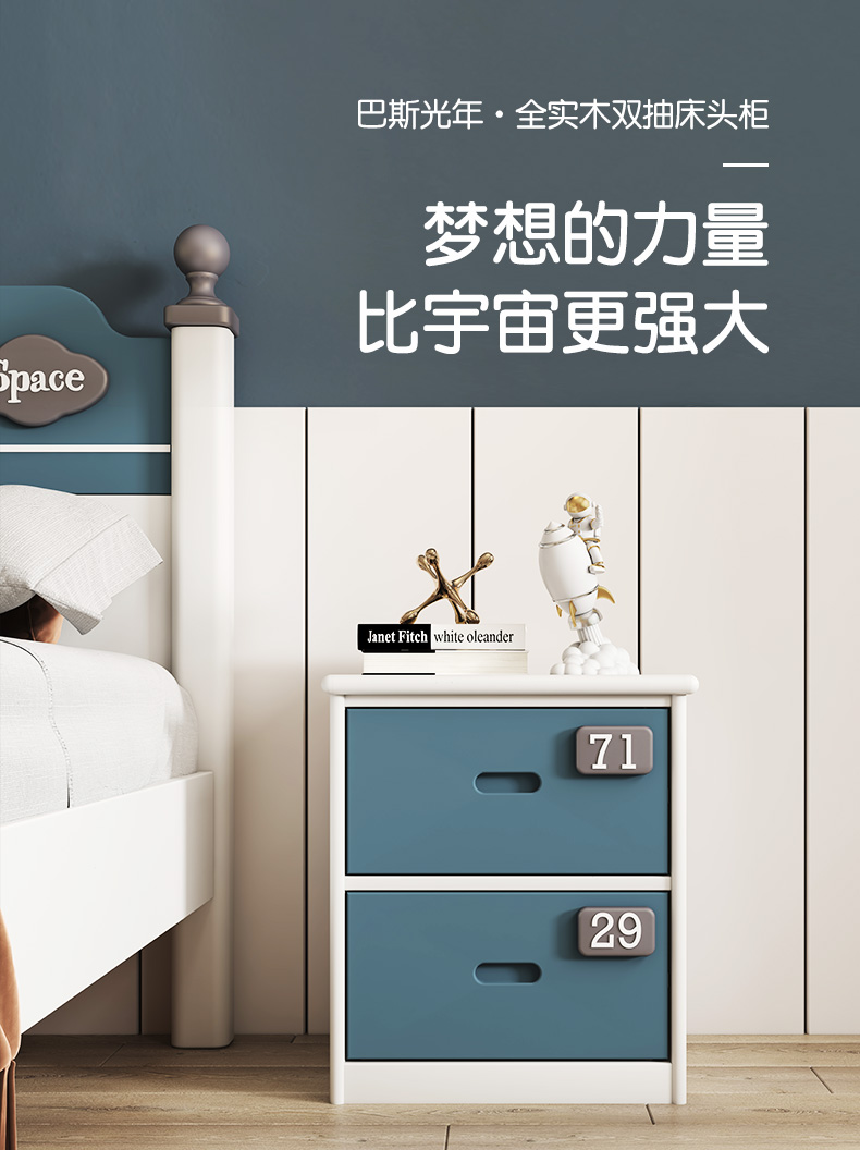 喜梦宝全实木床头柜双抽储物柜简约儿童柜置物柜 巴斯光年系列