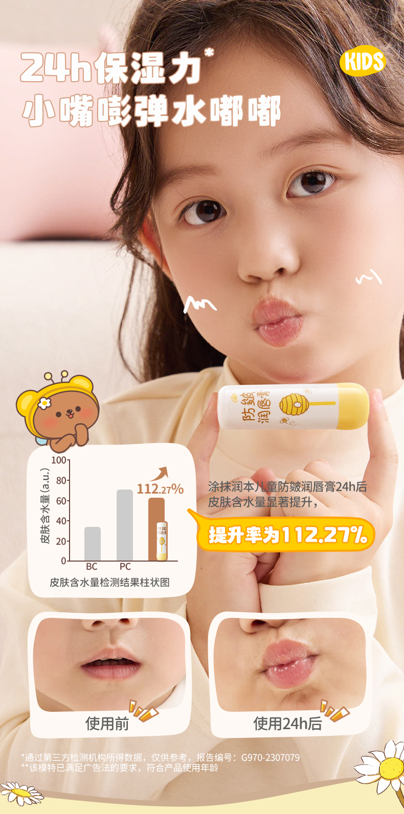 润本 儿童防皴润唇膏4g*2 全天润护干裂唇 VE精华深润补水 48小时发货