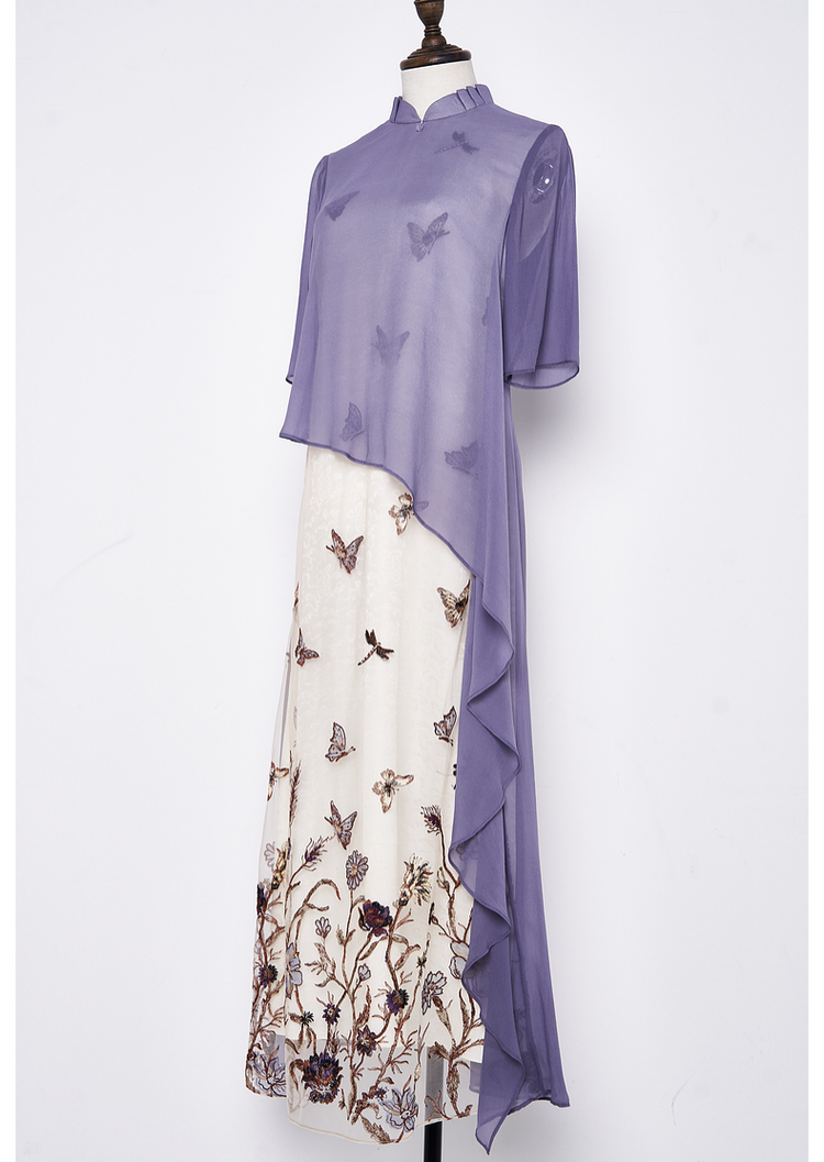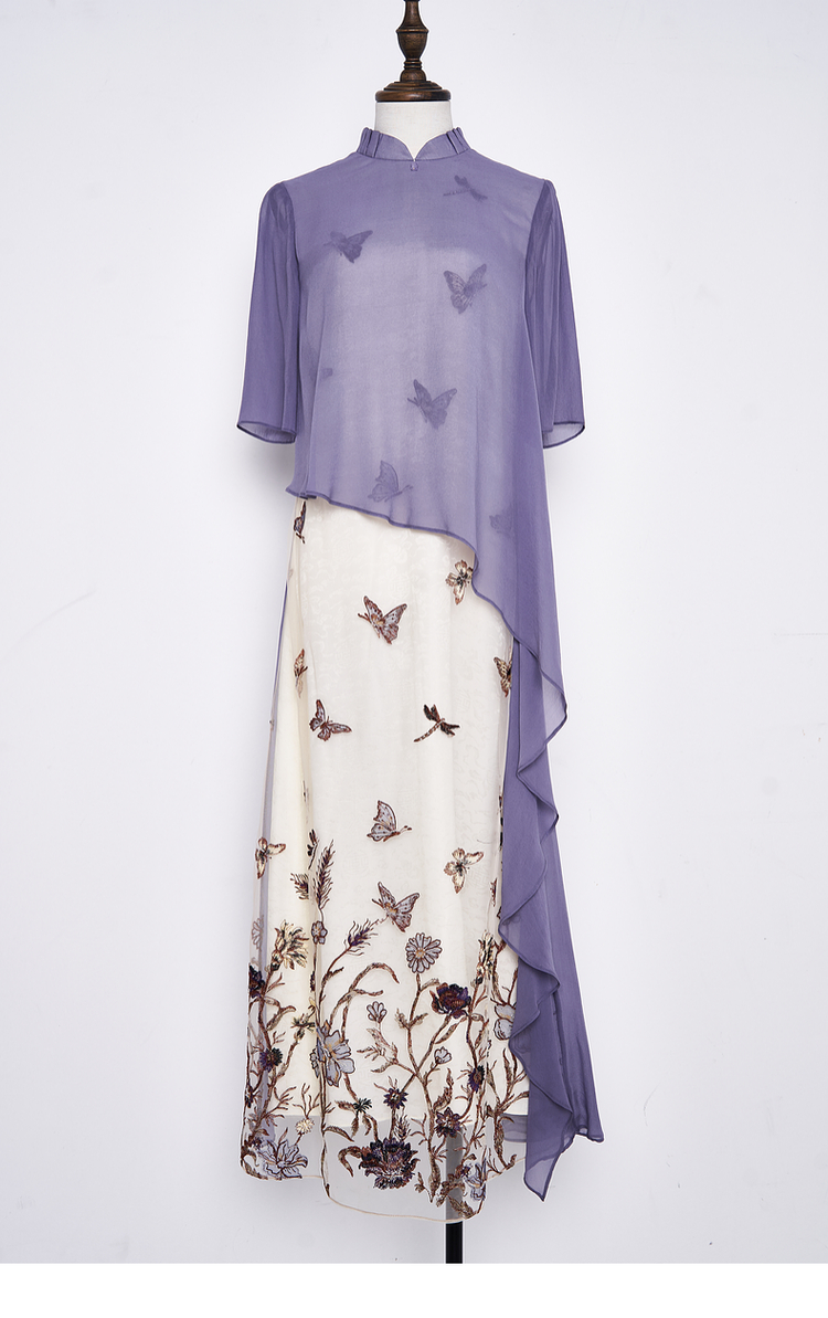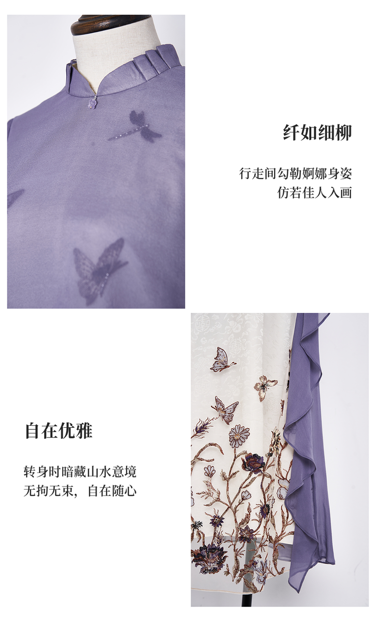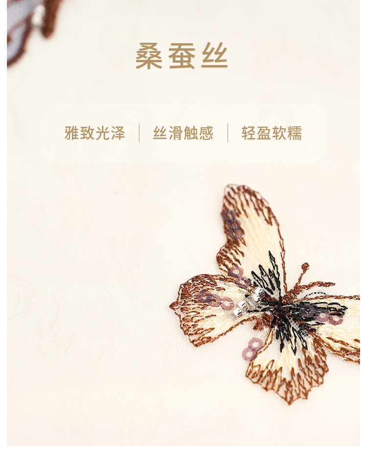 吉祥衣家新中式国风蚕桑丝裙子显瘦修身女装蝶之舞刺绣真丝连衣裙