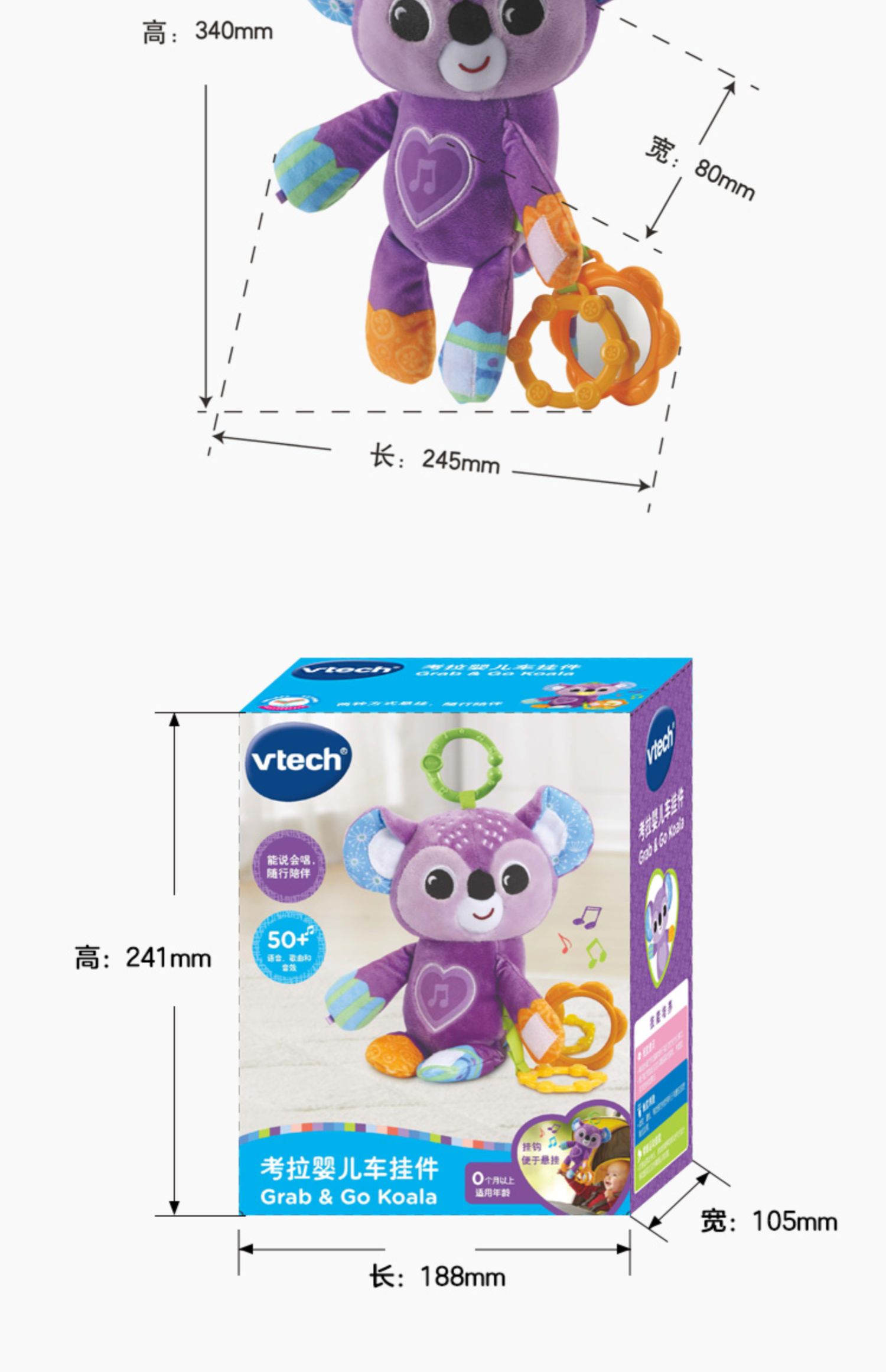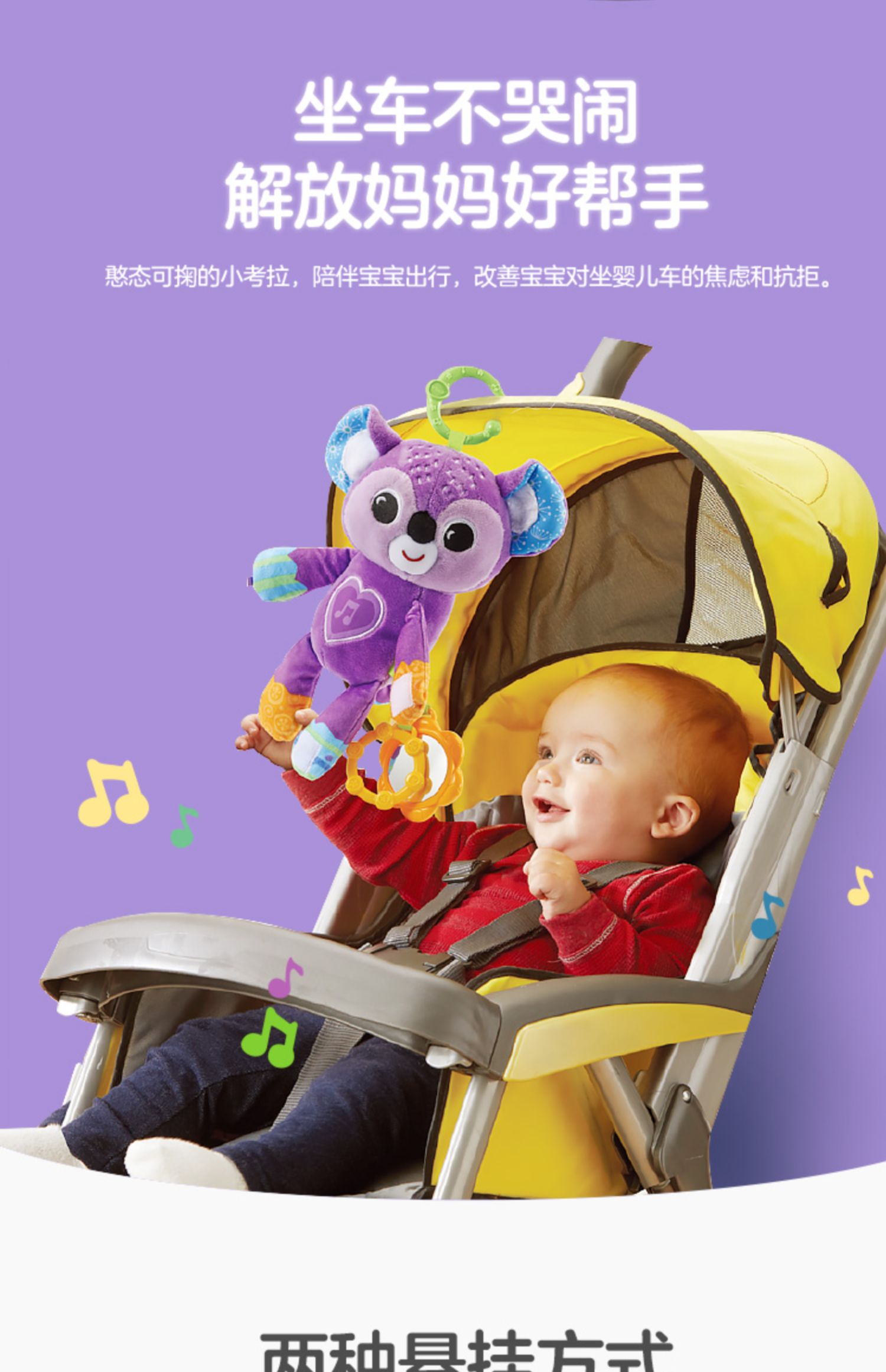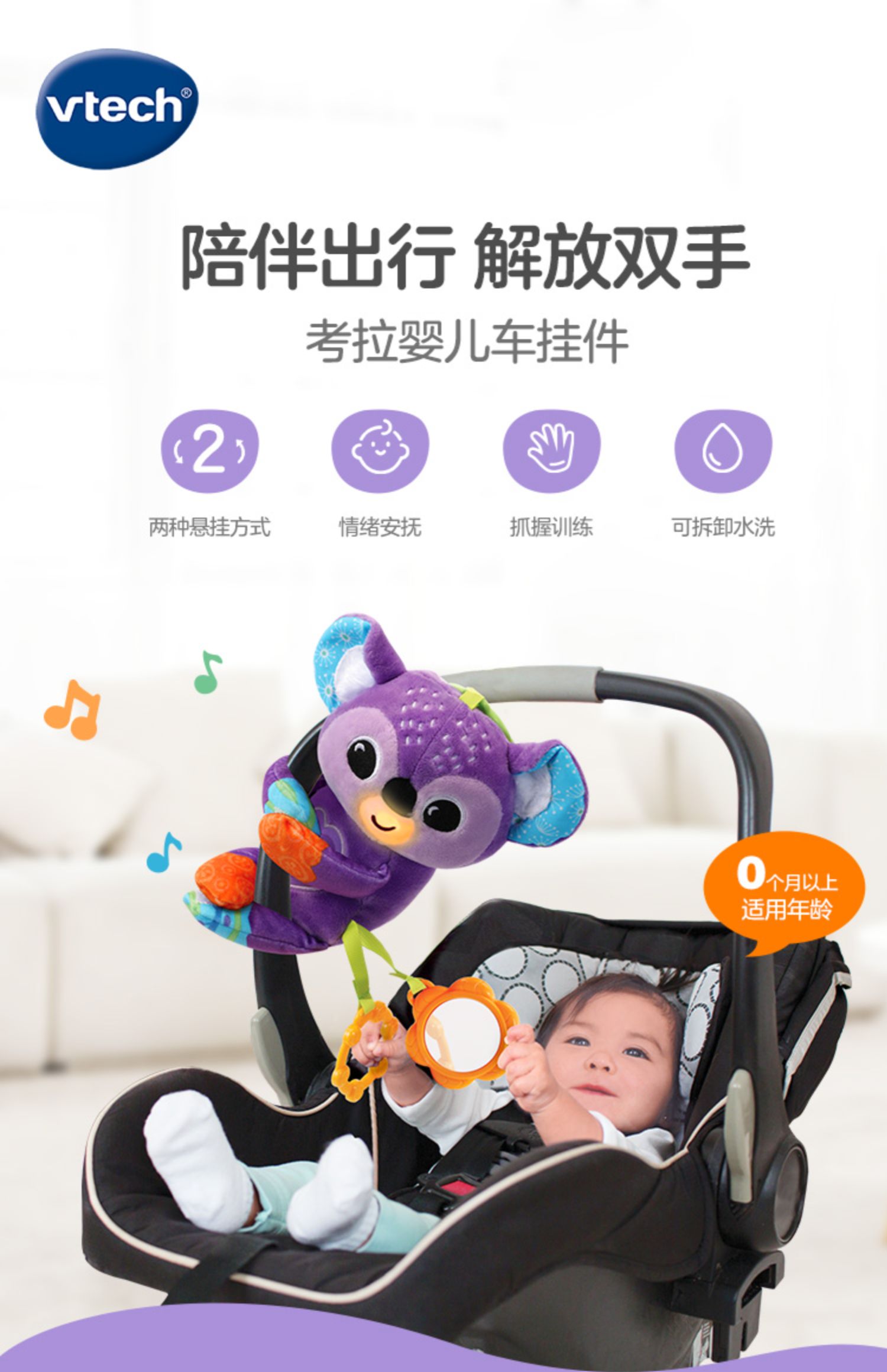 0-1岁 | VTech伟易达 考拉婴儿车挂件 动物床铃外出安抚新生儿推车吊挂0-1岁布偶