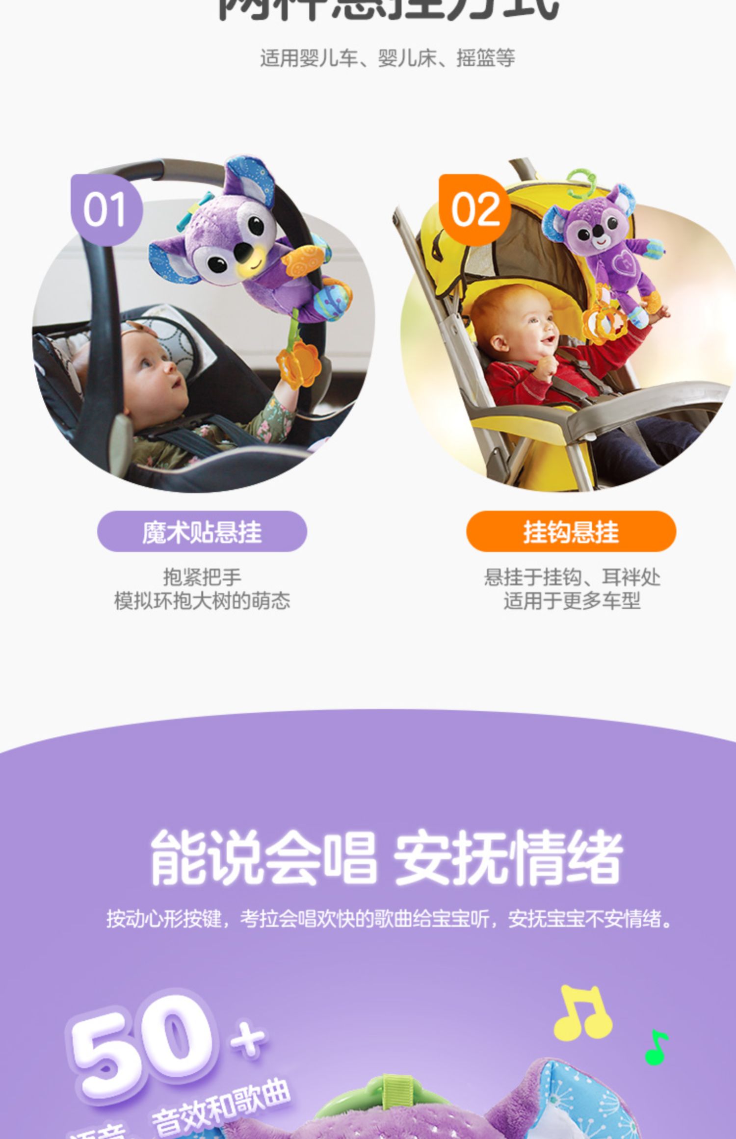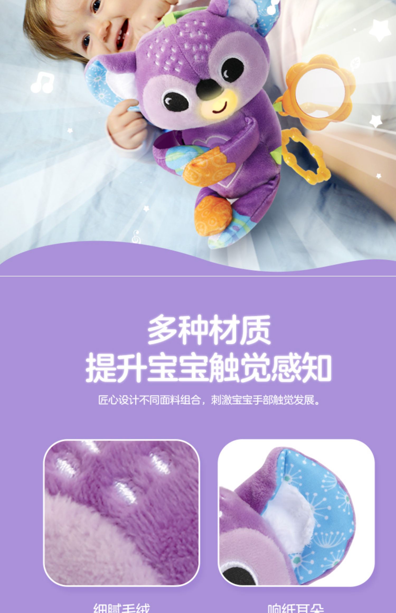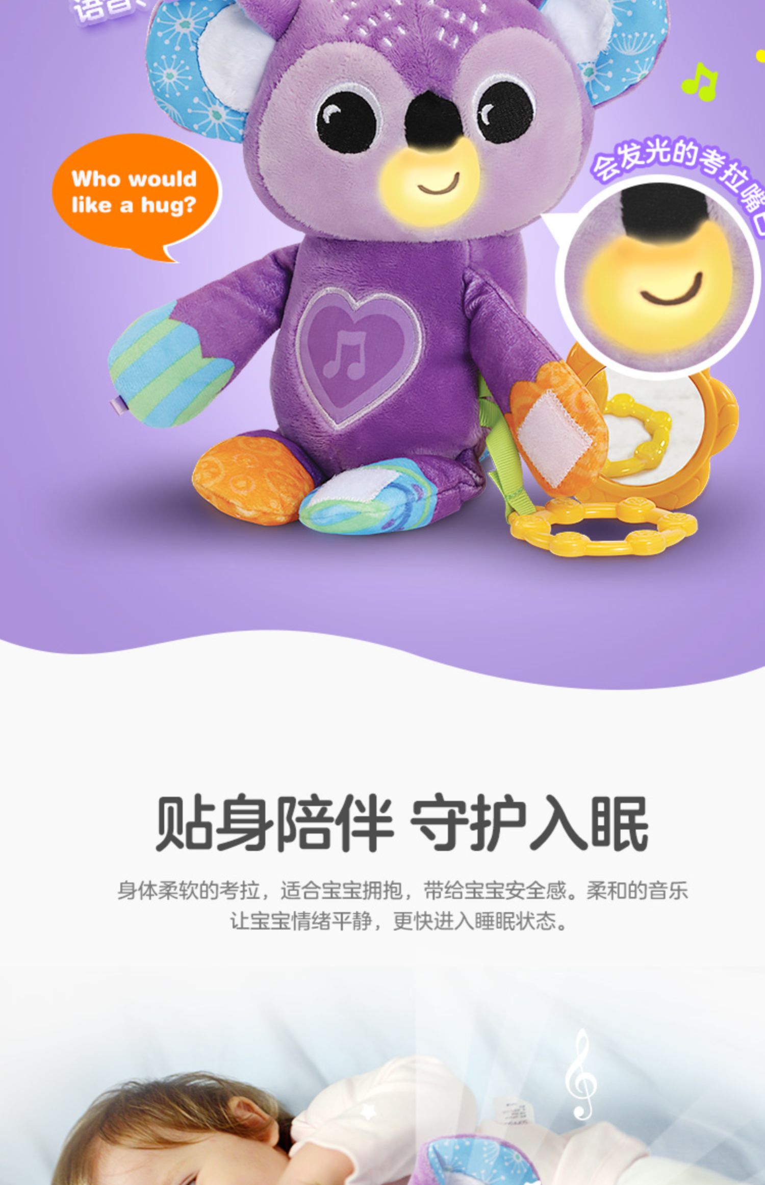 0-1岁 | VTech伟易达 考拉婴儿车挂件 动物床铃外出安抚新生儿推车吊挂0-1岁布偶