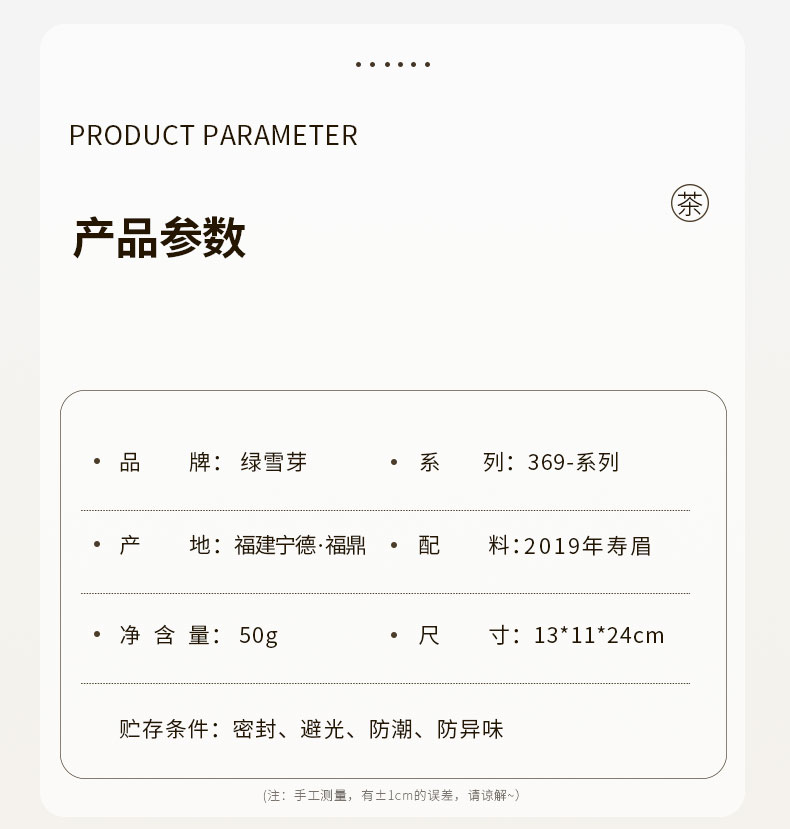 白茶 | 绿雪芽2022年福鼎高山3年陈寿眉50G礼盒装