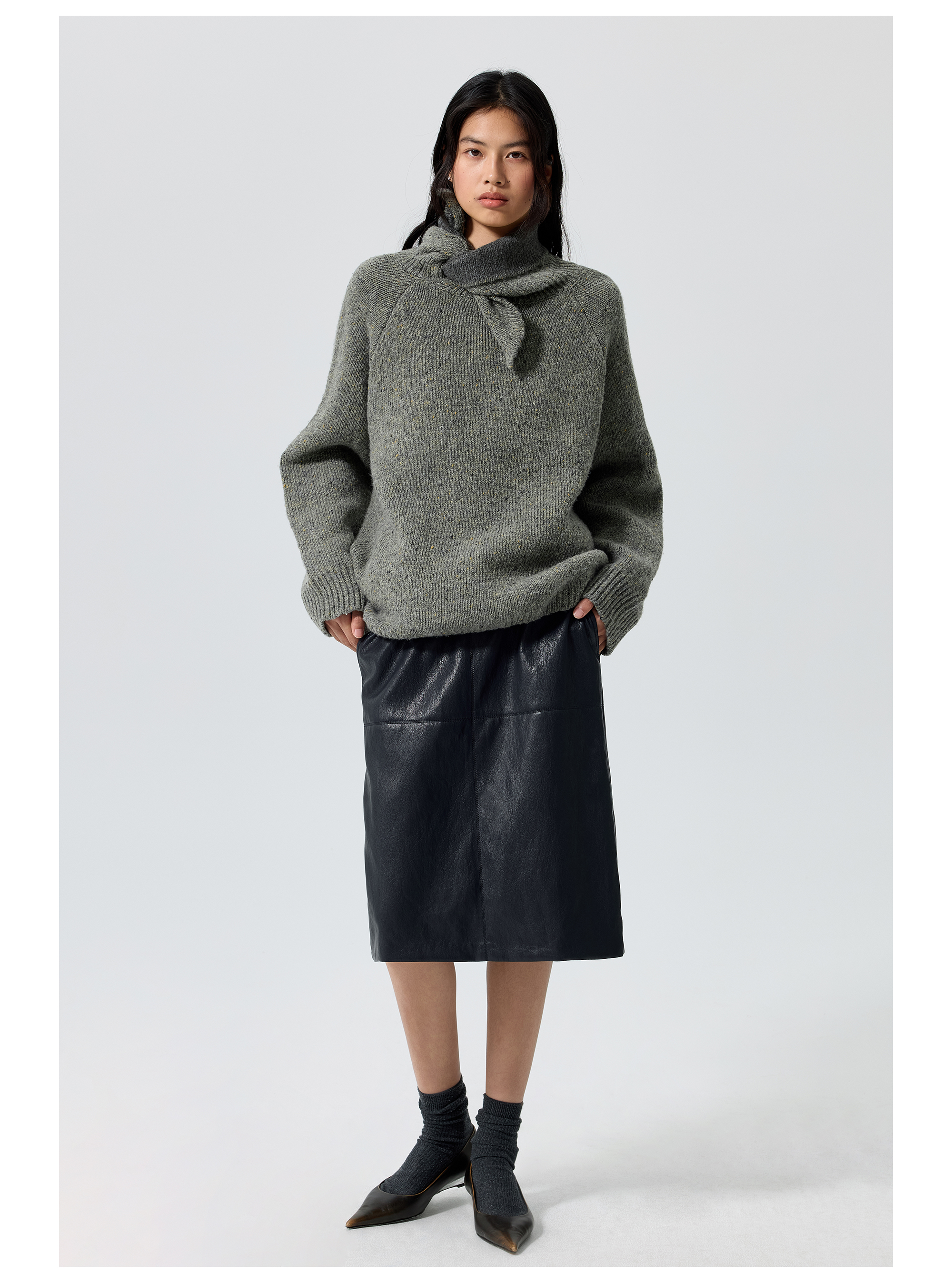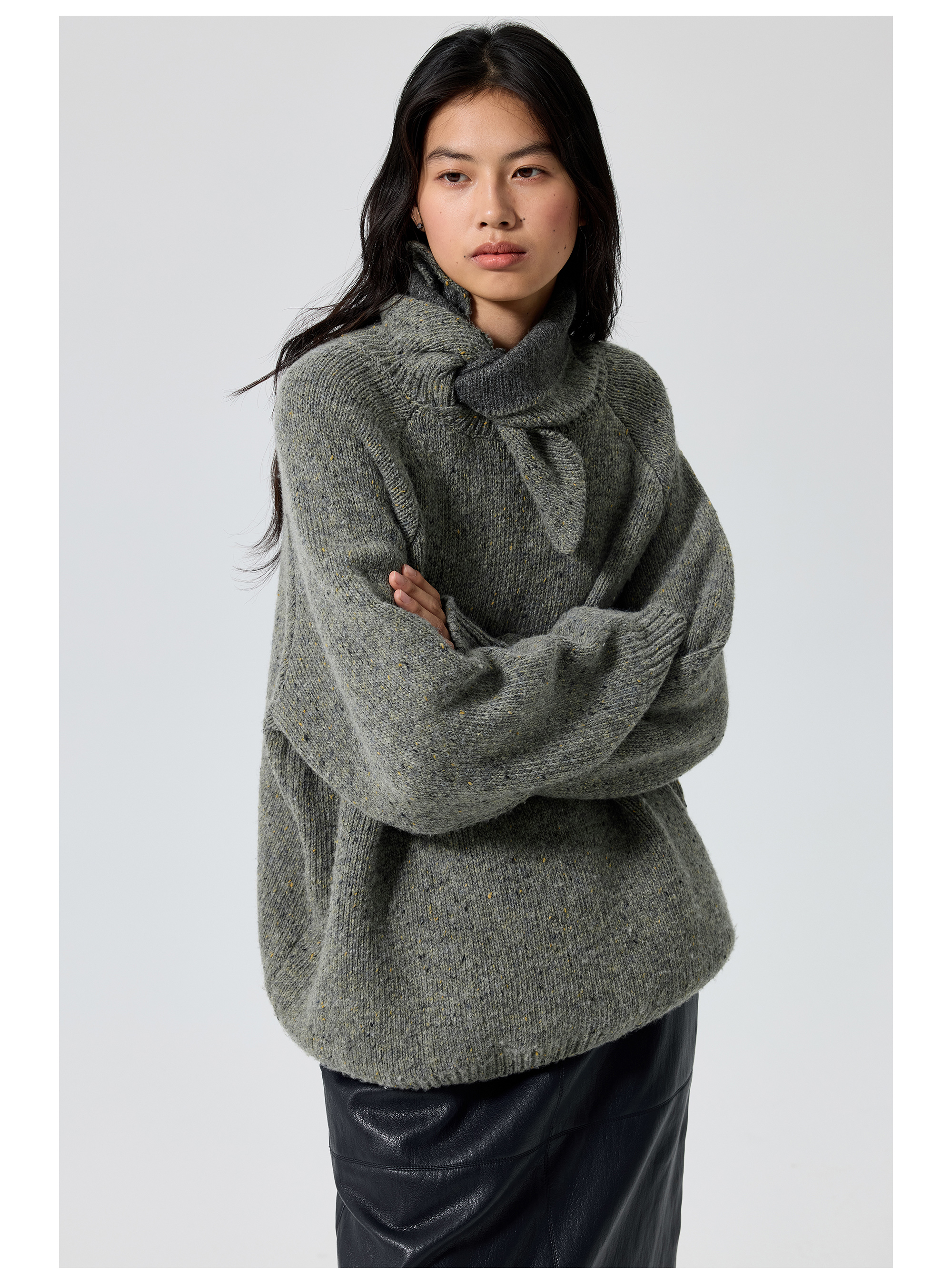 Simple Project/M25239/彩点纱撞色打结领毛衣