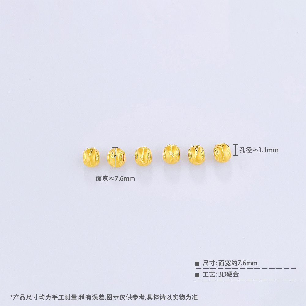 【定价黄金】足金 【无成色字印】3D硬金散珠转运珠空心车花圆珠转运金珠路路通手串配件Diy手串配件/6粒(V3DSC00389)(预售产品下单后不退款不退货不换货不补差价)