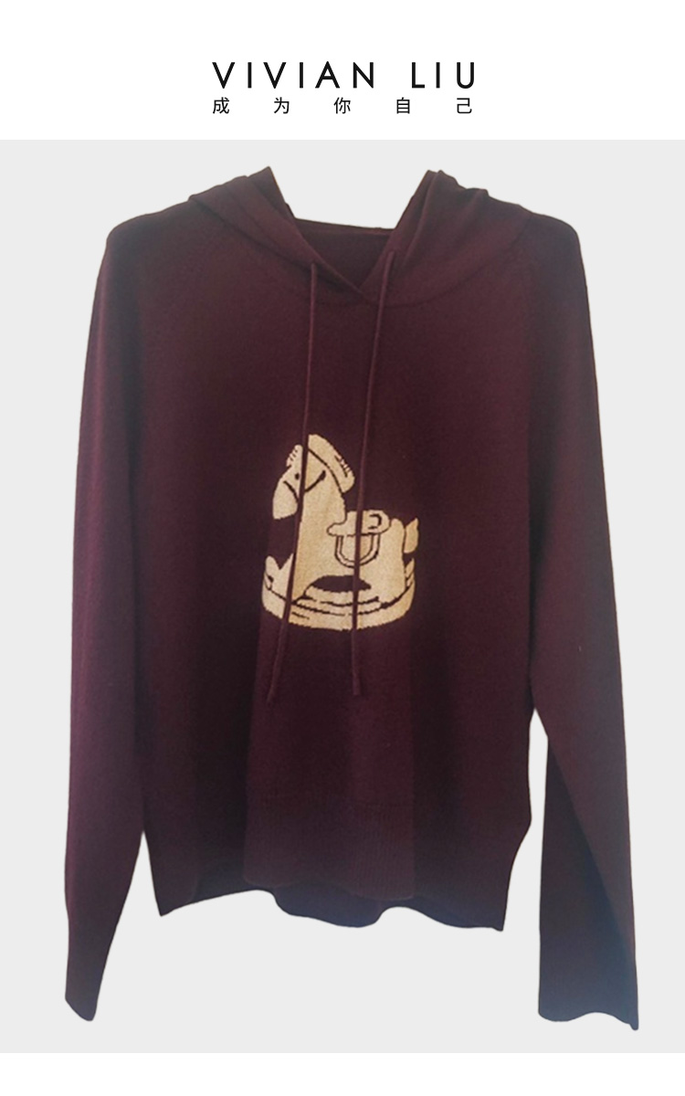VIVIAN LIU薇薇安刘D2566303冬女装新款连帽提花小马套头毛衫
