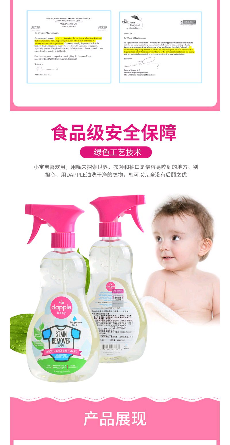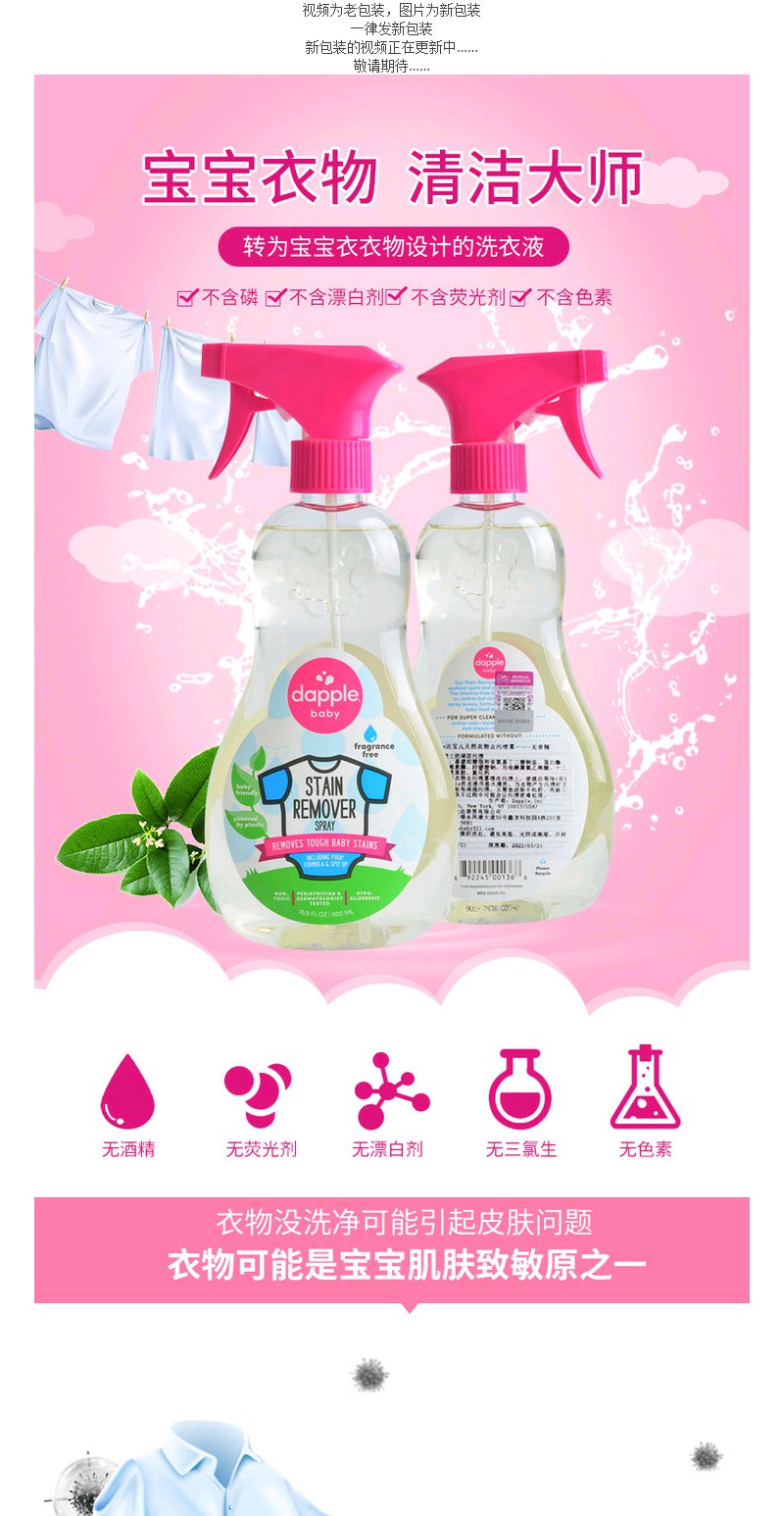 美国原装Dapple/达宝儿 天然衣物去污喷雾 无香500ML单品