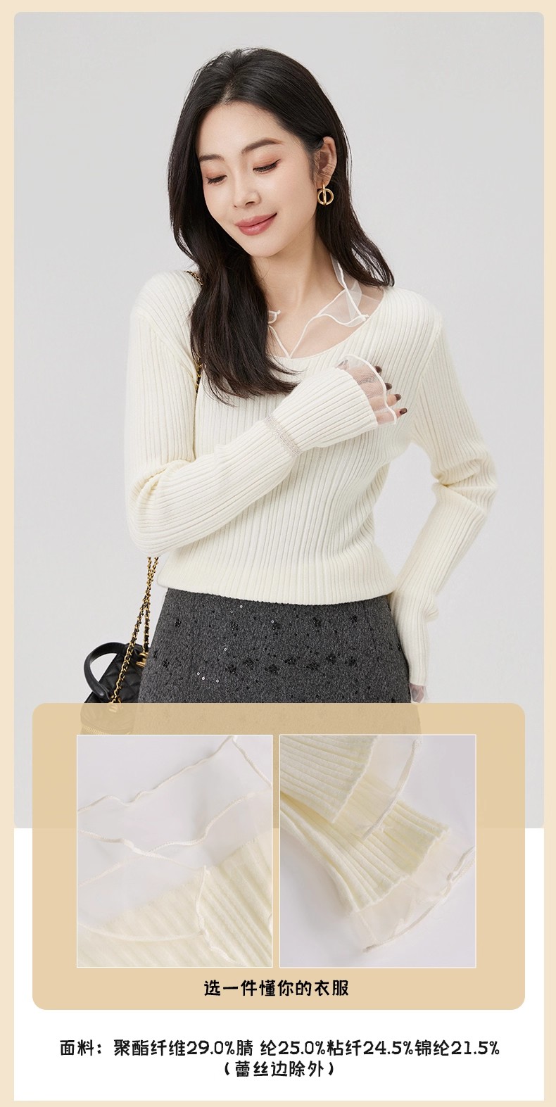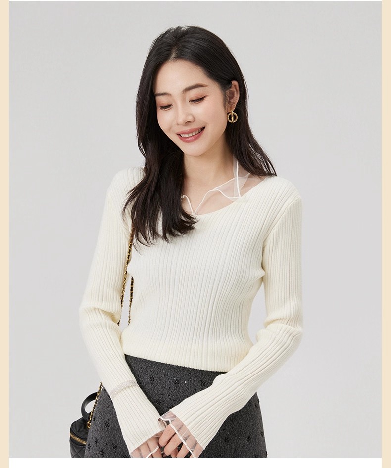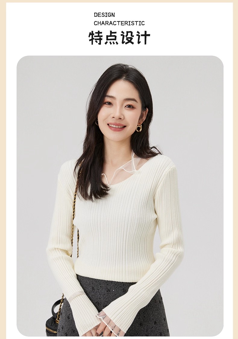 【门店同款】ENJOY冬季“暖冬软糖”法式拼纱针织上衣 168093132