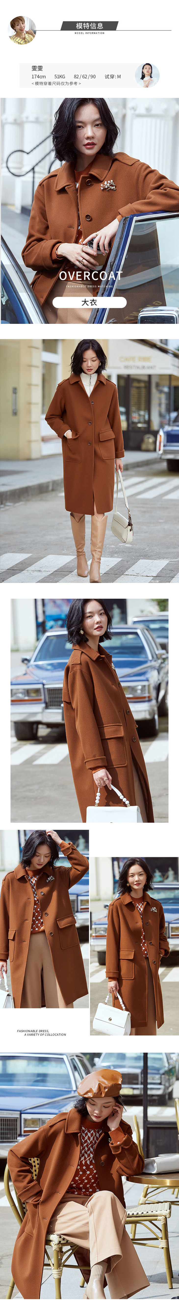 【商场同款】CJCE022 高级感低彩橘色 小翻领羊毛大衣(胸针为搭配拍摄,非本大衣携带)