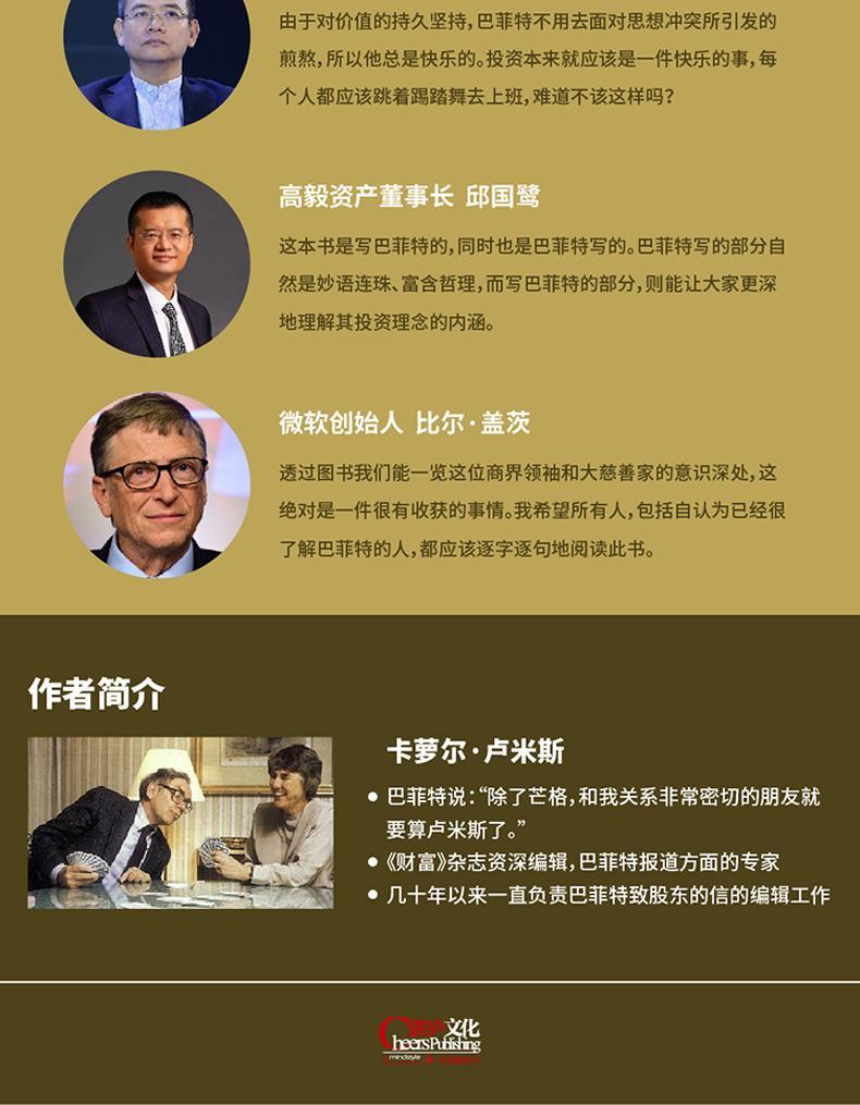 在《财富》杂志供职期间,我一直是“巴菲特”系列的主要撰稿人,这使得几十年来,相较于其他出版商,我对巴菲特有着更近距离的观察。很多人因此经常向我表达他们的意愿,希望我能写一部巴菲特的传记。我的答复总是“不”,因为我坚信对某一话题的熟稔并不一定能成就一部精彩的传记。事实上,我与巴菲特是超过40 年的老朋友,而且刚认识他没多久,我就买入了伯克希尔哈撒韦公司的股票。这35 年来,我每年还无偿地编订了巴菲特致股东的信。在为《财富》杂志撰写文章时,只要告诉读者这些事情,就能使我的文章受到欢迎。然而,以此为基础,去创作一部内容更为广泛的、关乎个人和专业领域的全新传记,我觉得并不妥。一般而言,传记的作者优选与当事人之间保持一定的距离。如果我和巴菲特没有这么熟,那么这个问题就不存在了。 想到这一点,我恍然大悟,过去在《财富》杂志发表的文章,本身就是货真价实的商业传记。只要稍加编辑,就能变成一本好书。您手中的......
