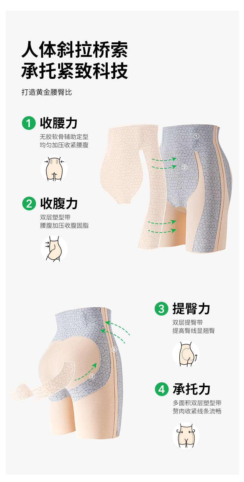 秒变3D立体蜜桃臀!完型收腹提臀超感裸感塑身高腰无痕美体裤女 一裤多穿(收腹+束腰+提跨+打底+内裤)