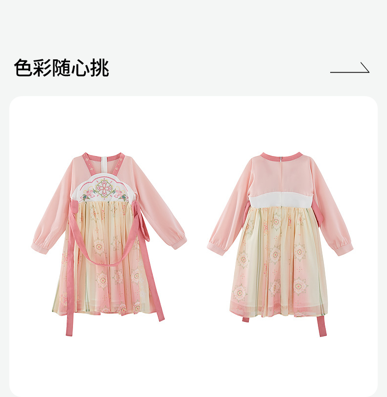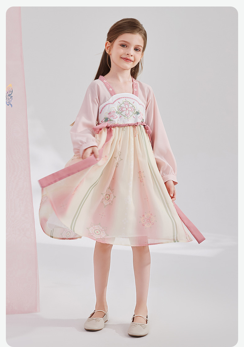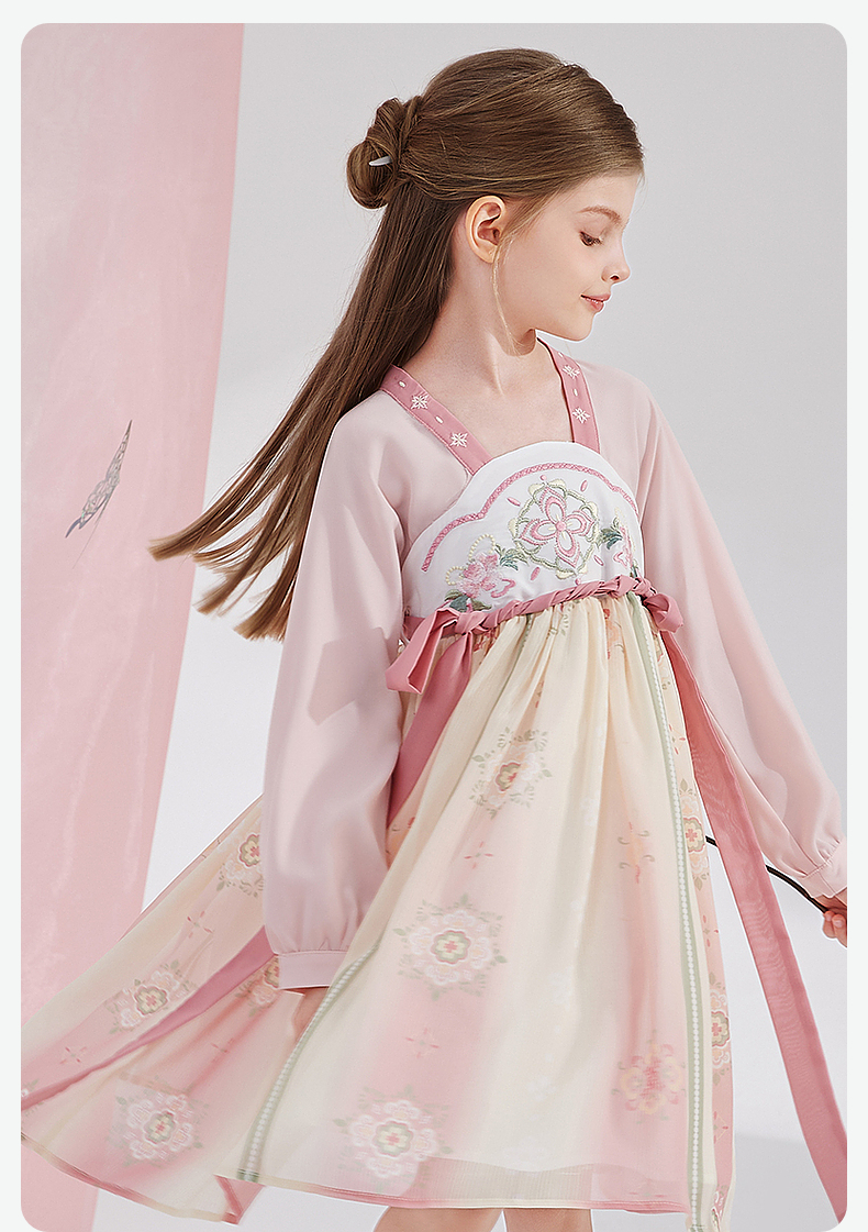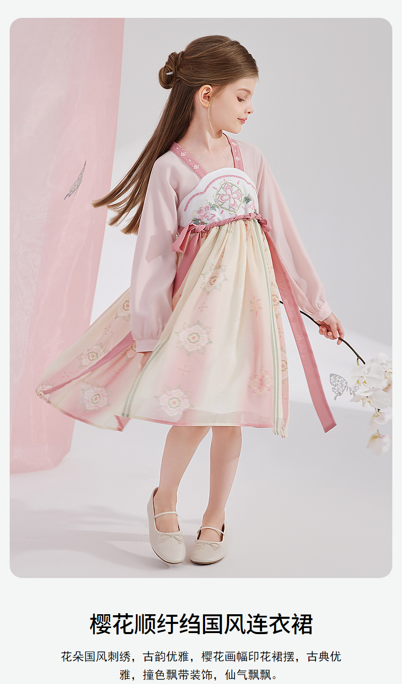 笛莎Deesha 女童2024秋季新款樱花顺纡绉国风连衣裙