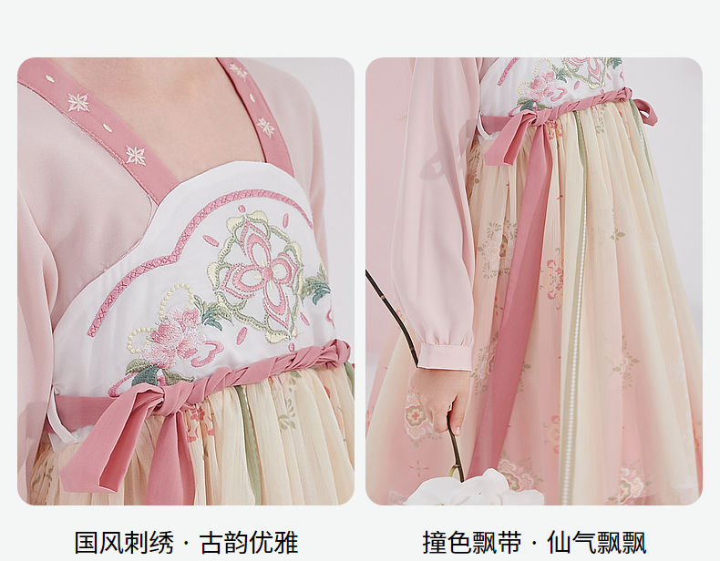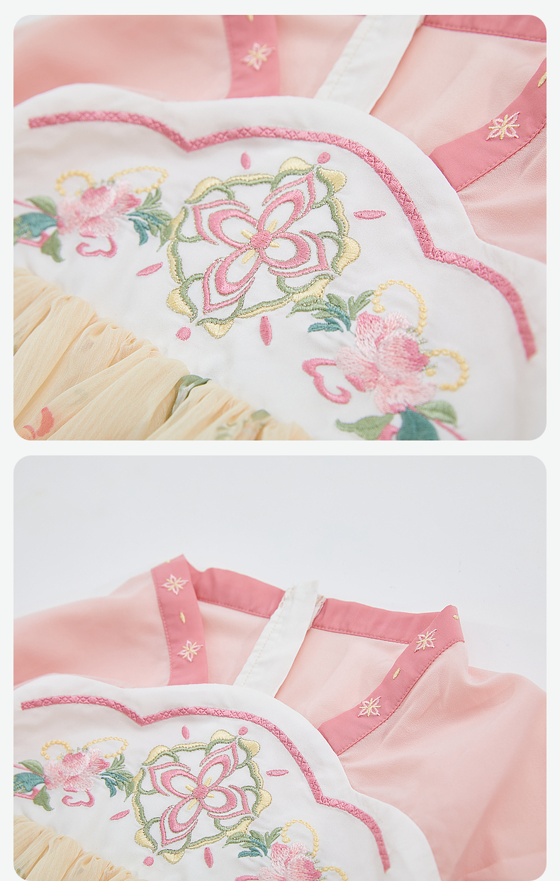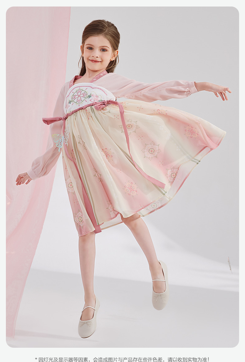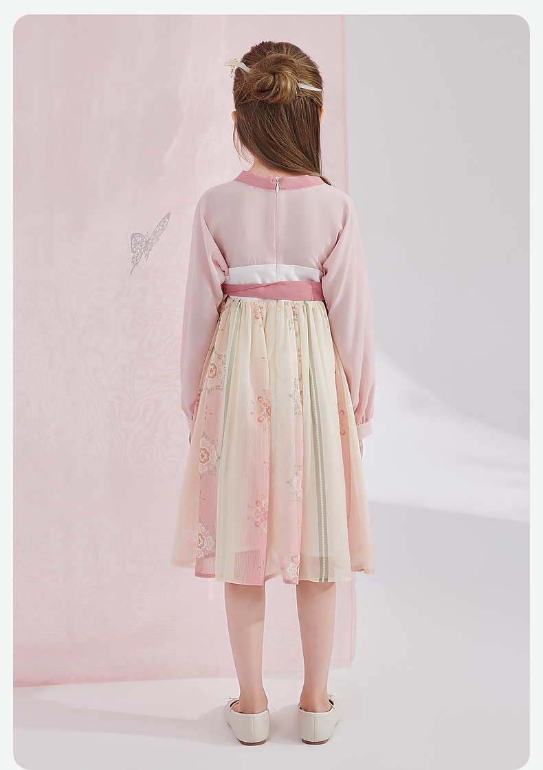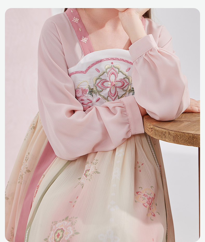 笛莎Deesha 女童2024秋季新款樱花顺纡绉国风连衣裙