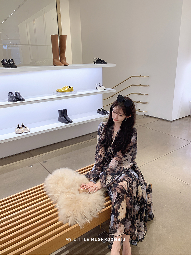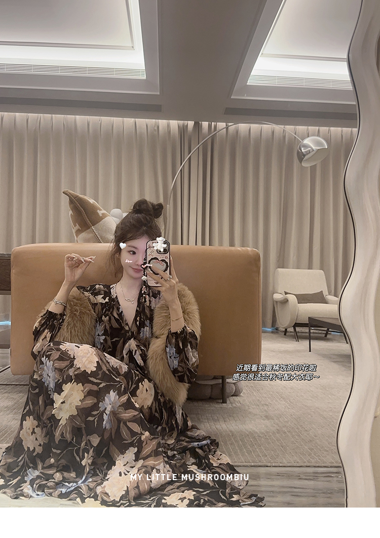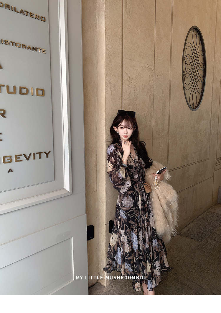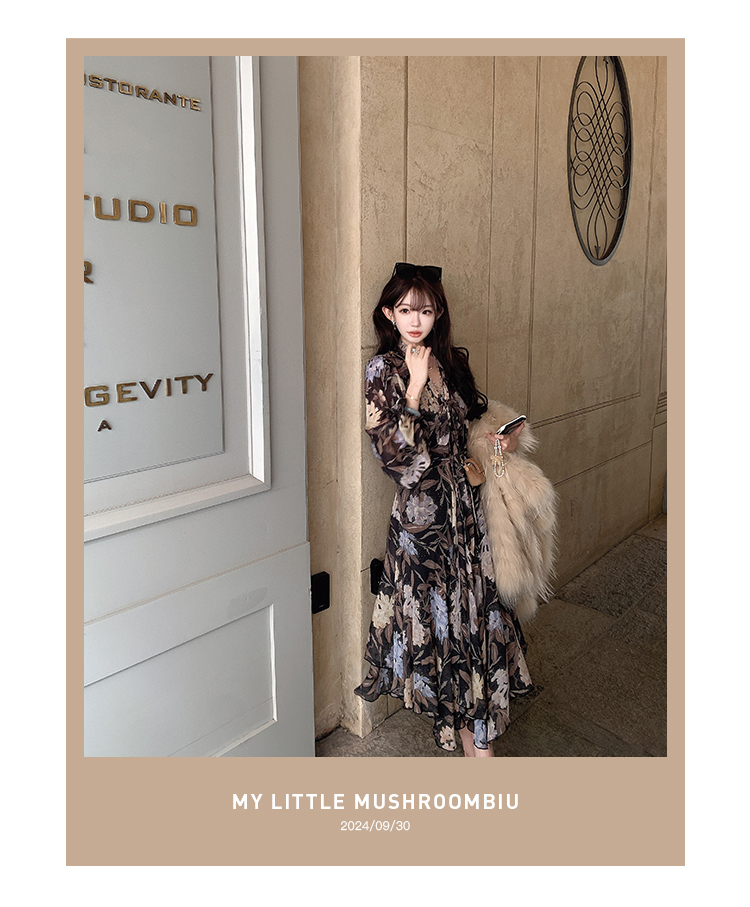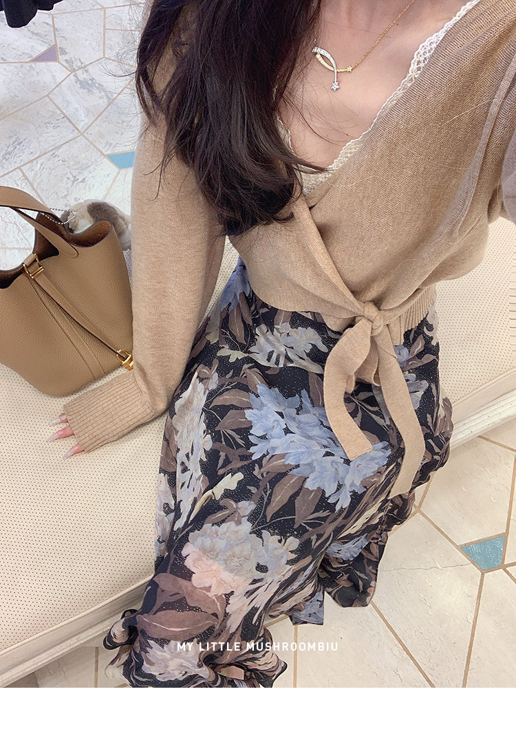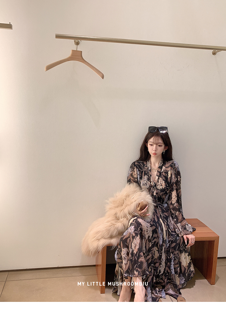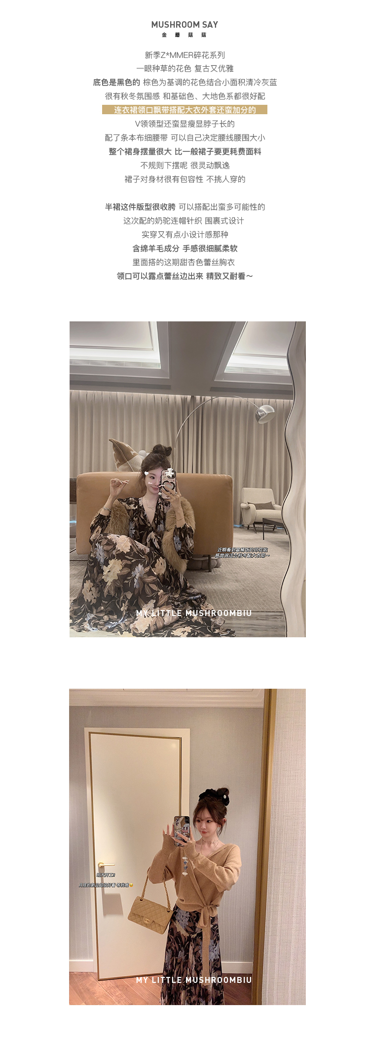 金蘑菇菇 秋季の恋歌 / 复古优雅碎花系 私服碎花裙针织连帽