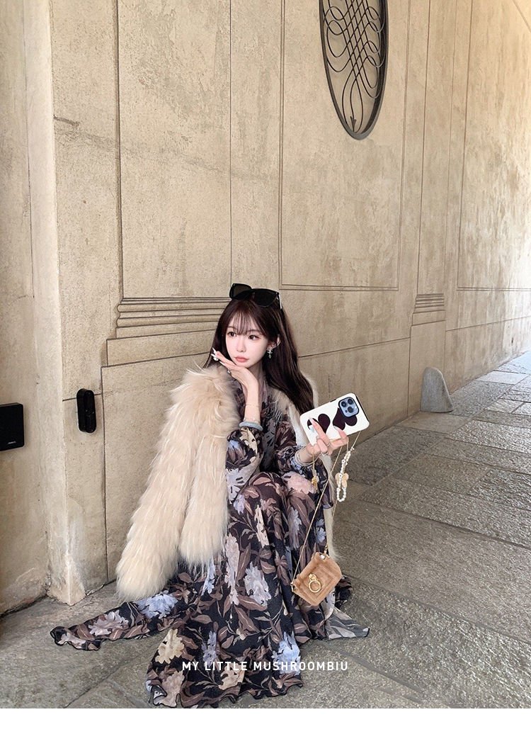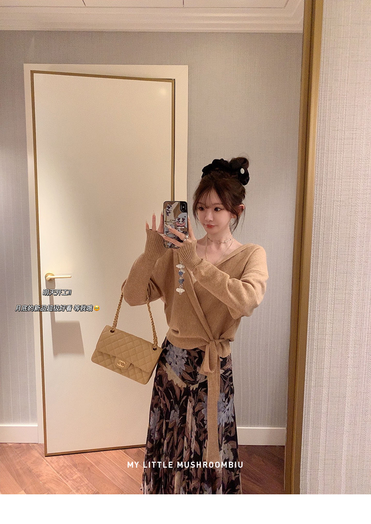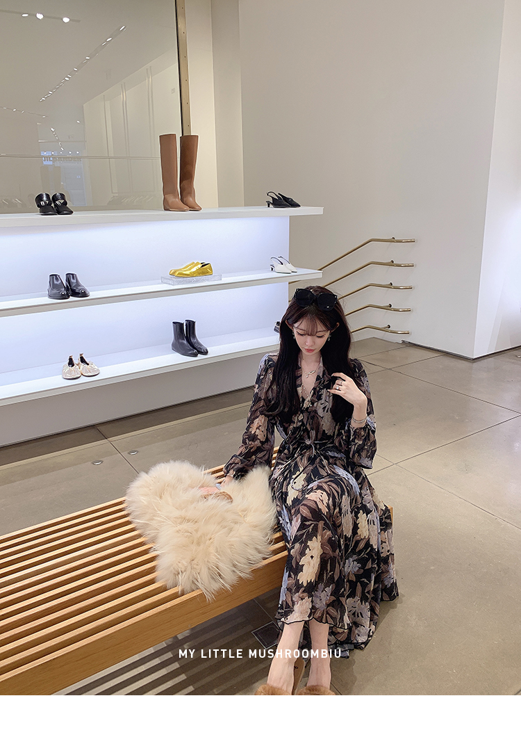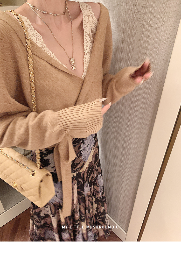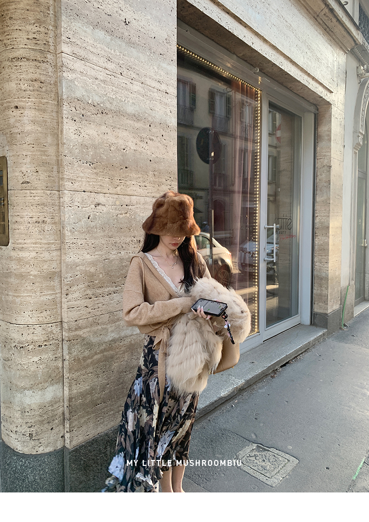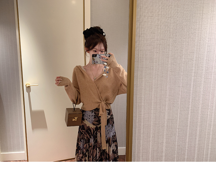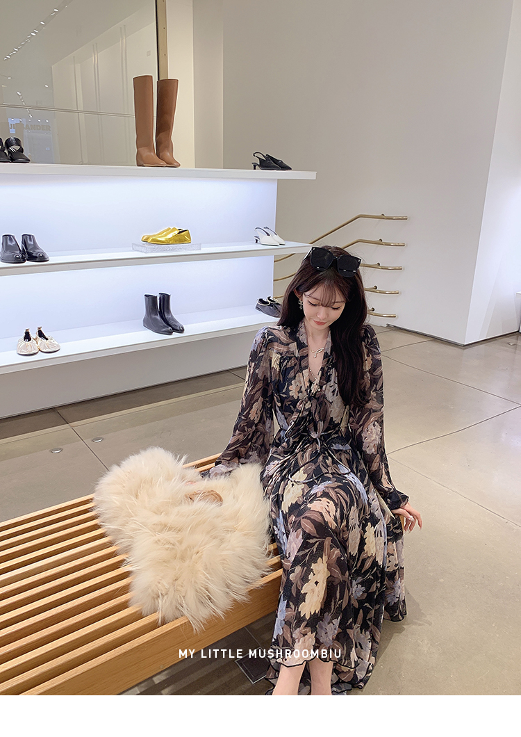 金蘑菇菇 秋季の恋歌 / 复古优雅碎花系 私服碎花裙针织连帽